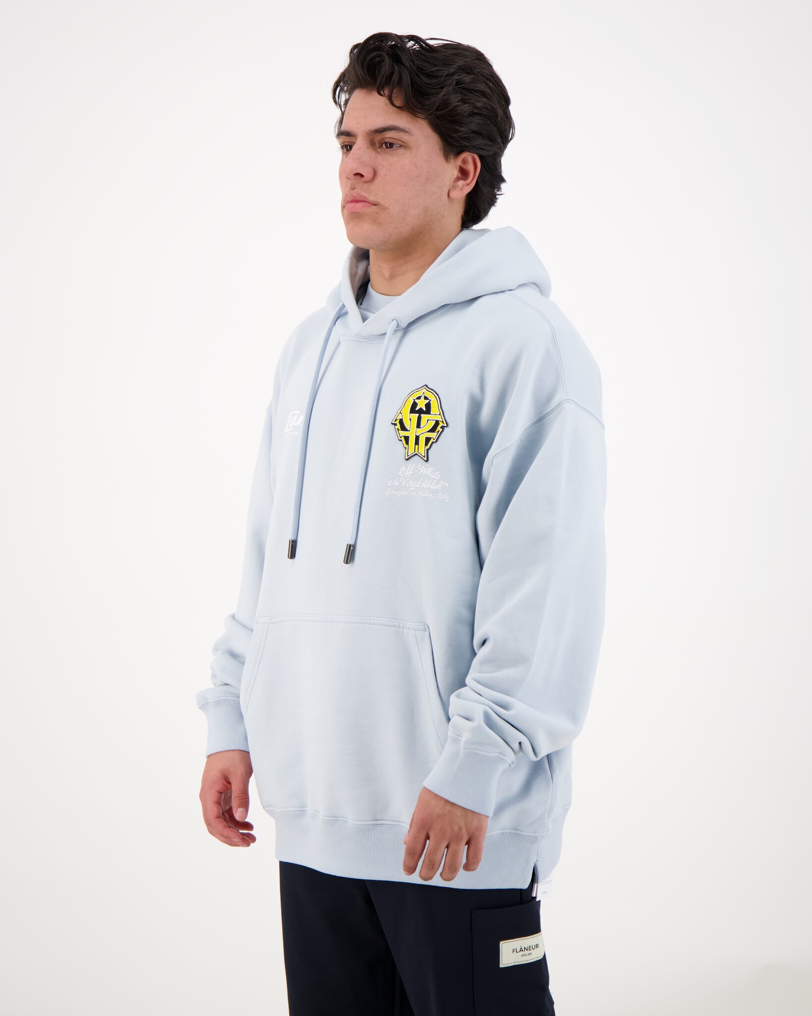 Sporty 1 Skate Hoodie van het merk Off-White. Deze Hoodie heeft een opvallende print voor op het t-shirtje. Dit is een van de meest kenmerkende graphics die het bedrijf gemaakt en is dus echt een eyecatcher. Deze hoodie is gemaakt van 100% katoen wat het dus erg comfortable maakt om het te dragen.