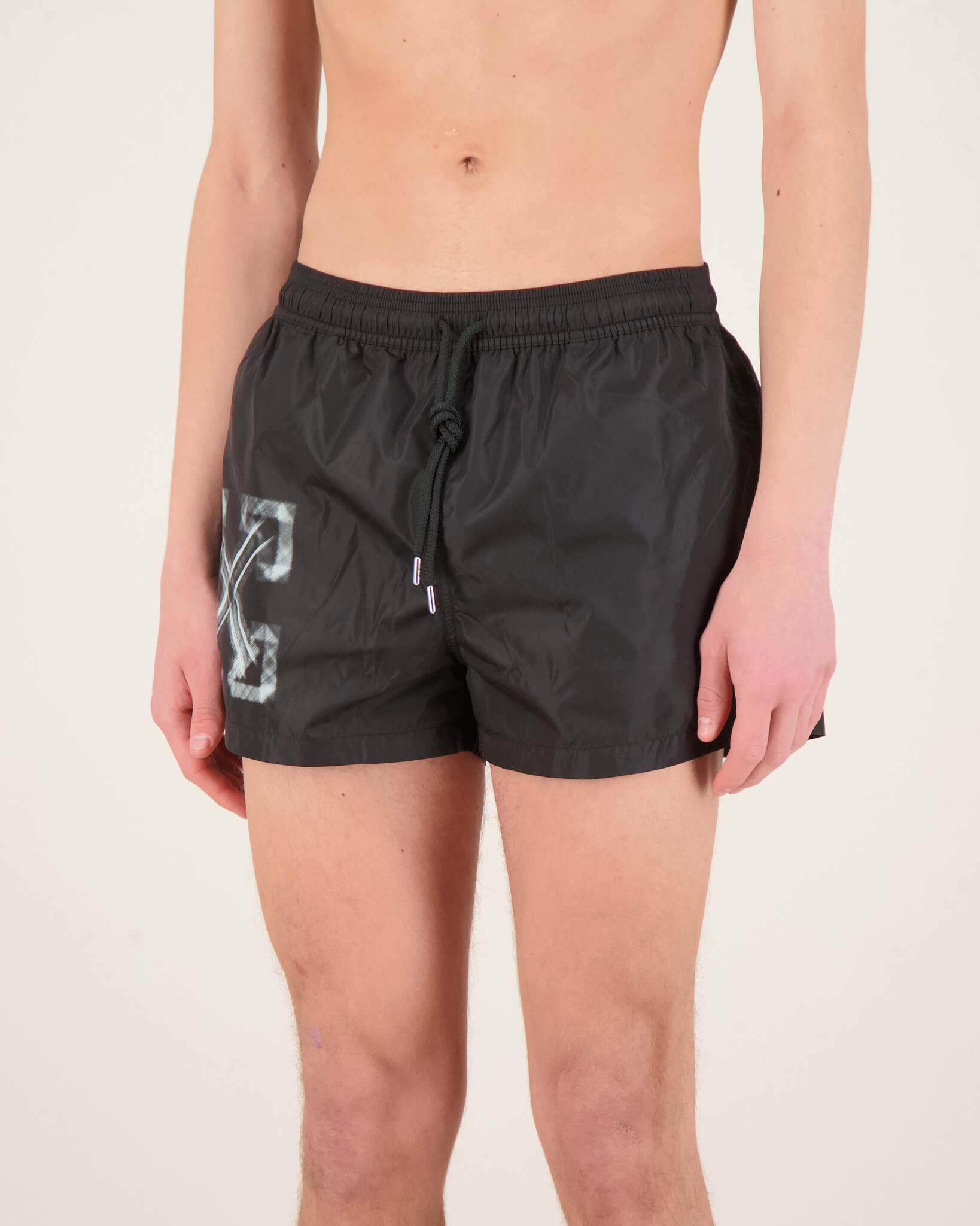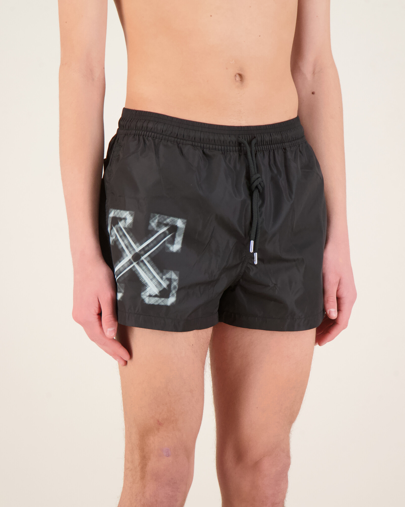 Zwarte Vibe Arrow Swim short van het merk Off-White. De swim short heeft een aantrekkoort en twee steekzakken. Met het logo op de linker pijp.
