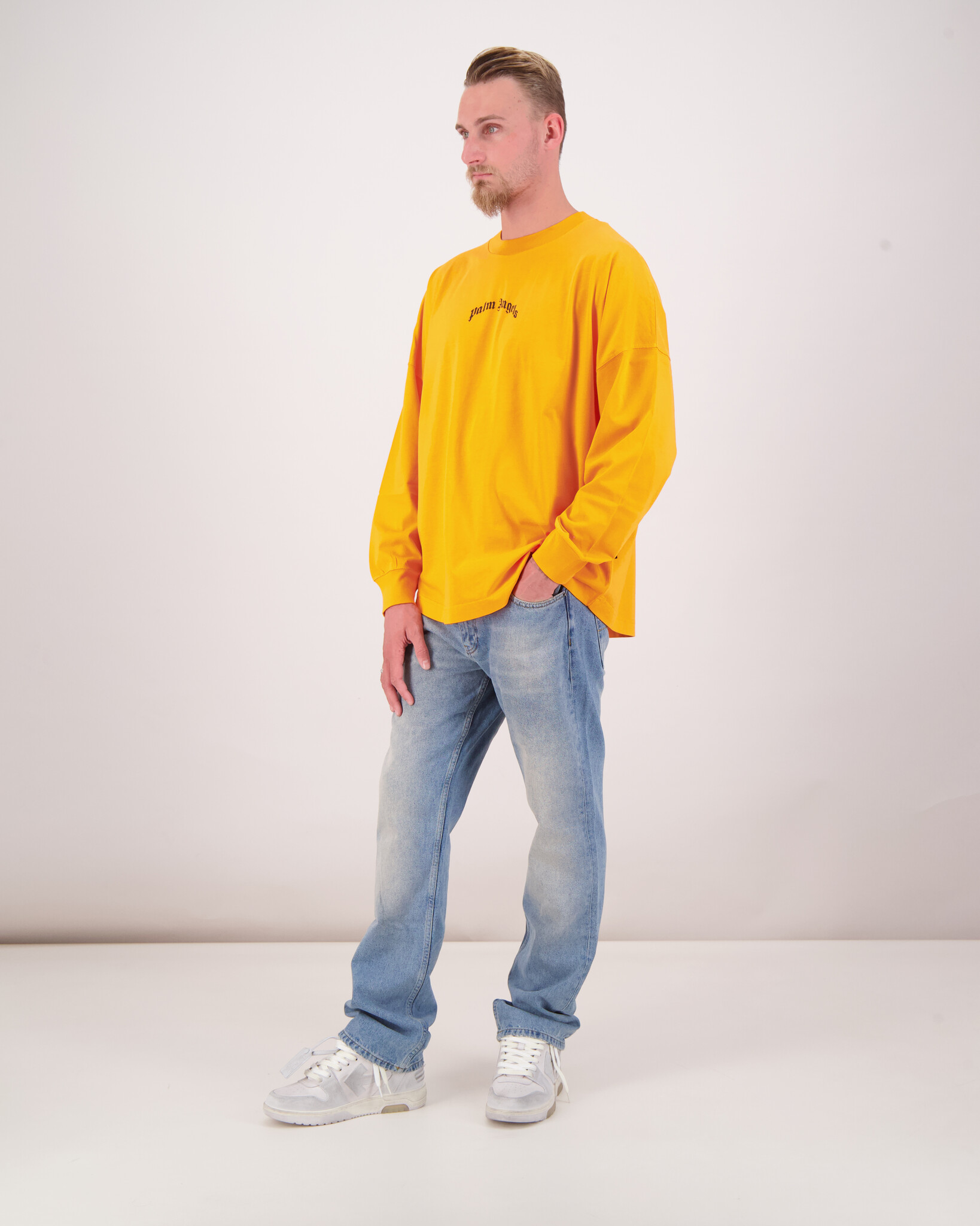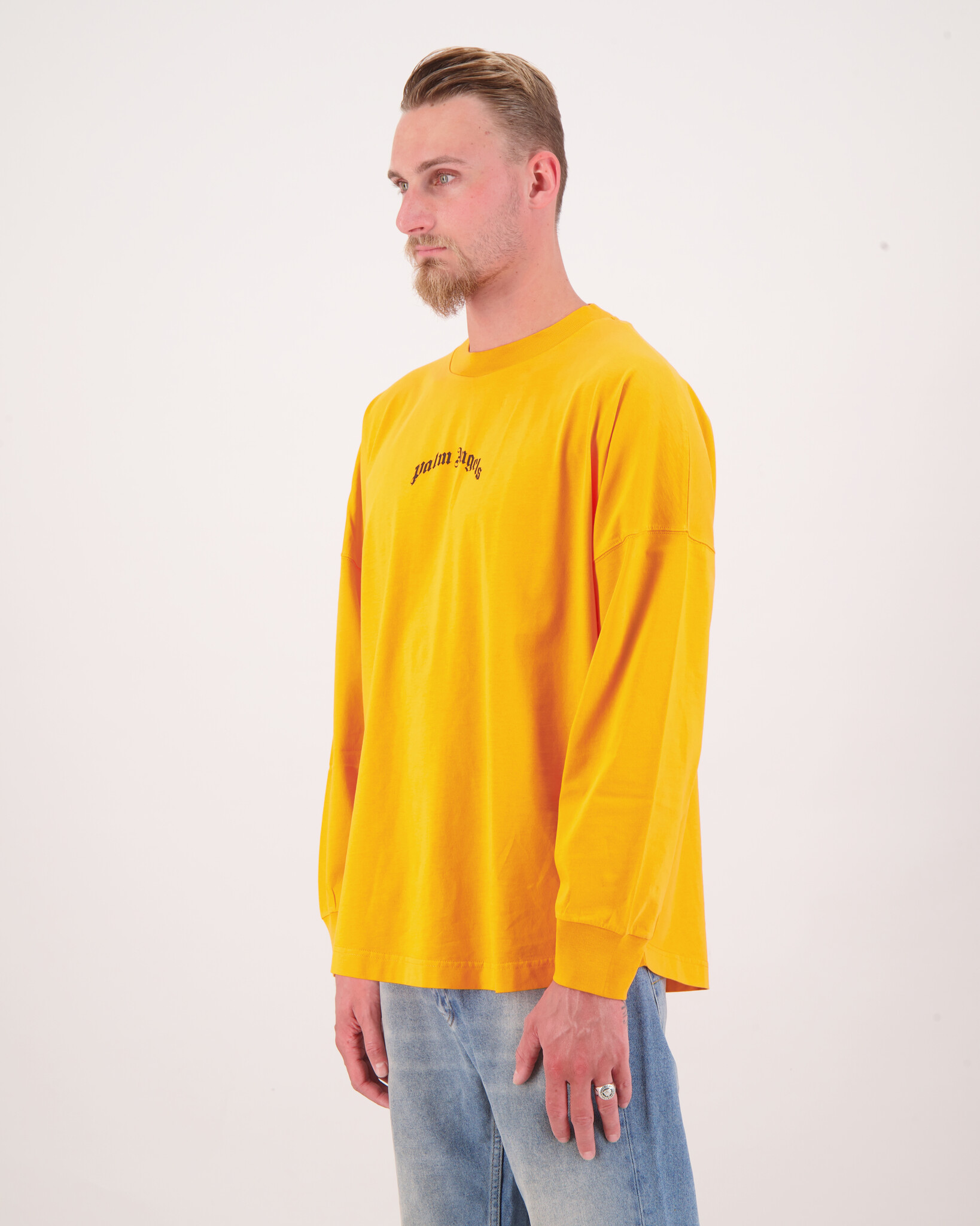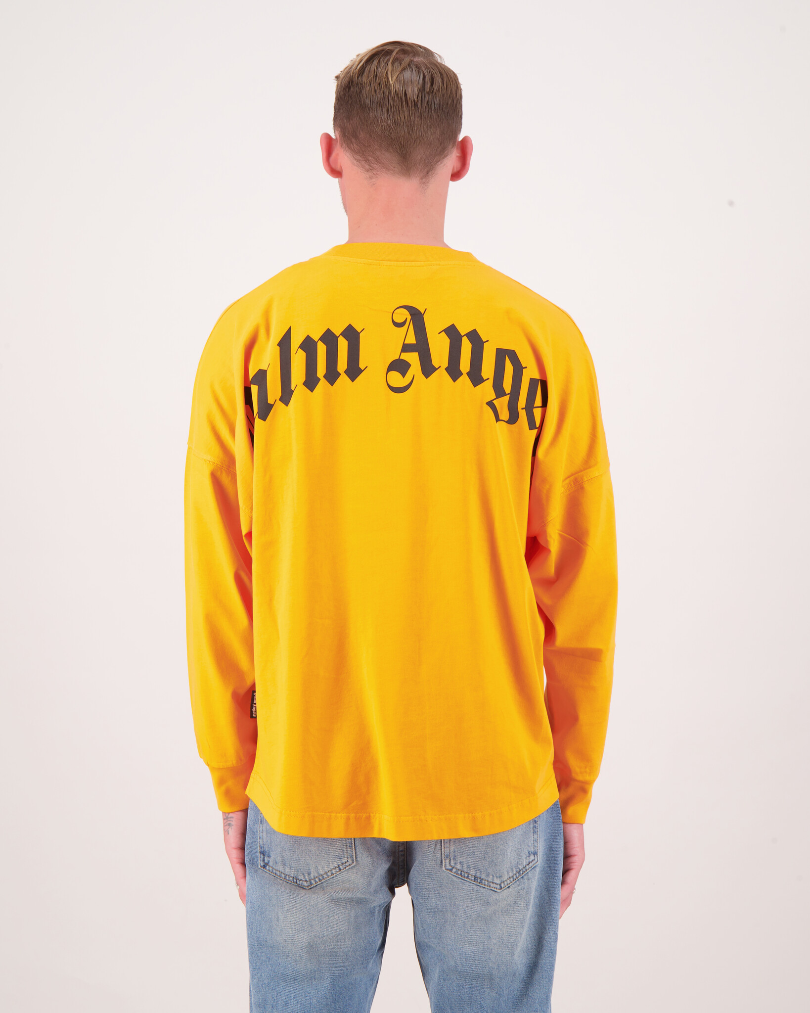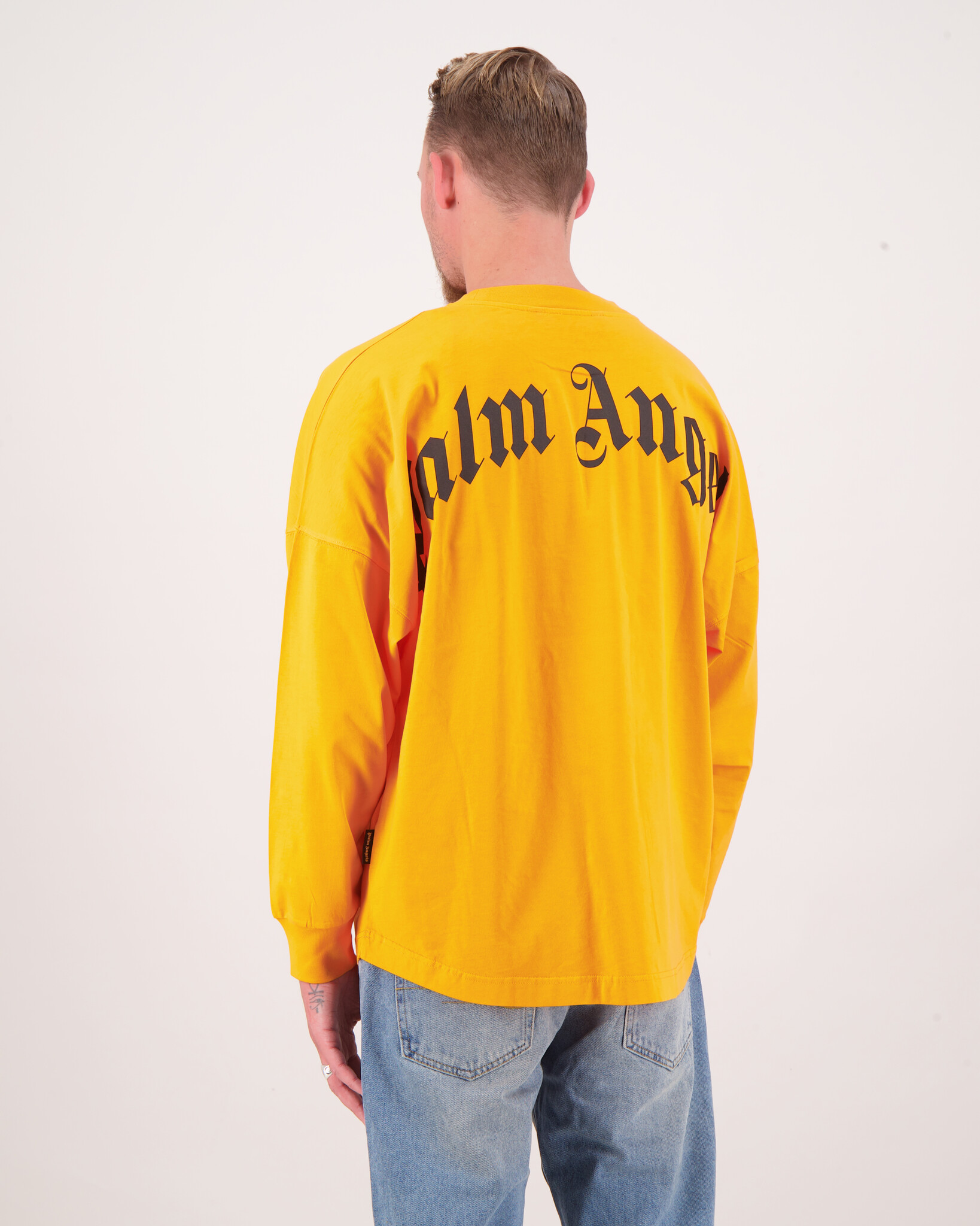Oranje Curved Logo Over Tee Long Sleeve van het merk Palm Angels. De Palm Angels Curved Logo Over Tee Long Sleeve in oranje is een opvallend en modern streetwear-item met oversized fit, minimalistische branding en technisch comfort. Ideaal voor wie durft op te vallen met kleur en grafische impact in een comfortabele, hoogwaardige uitvoering.