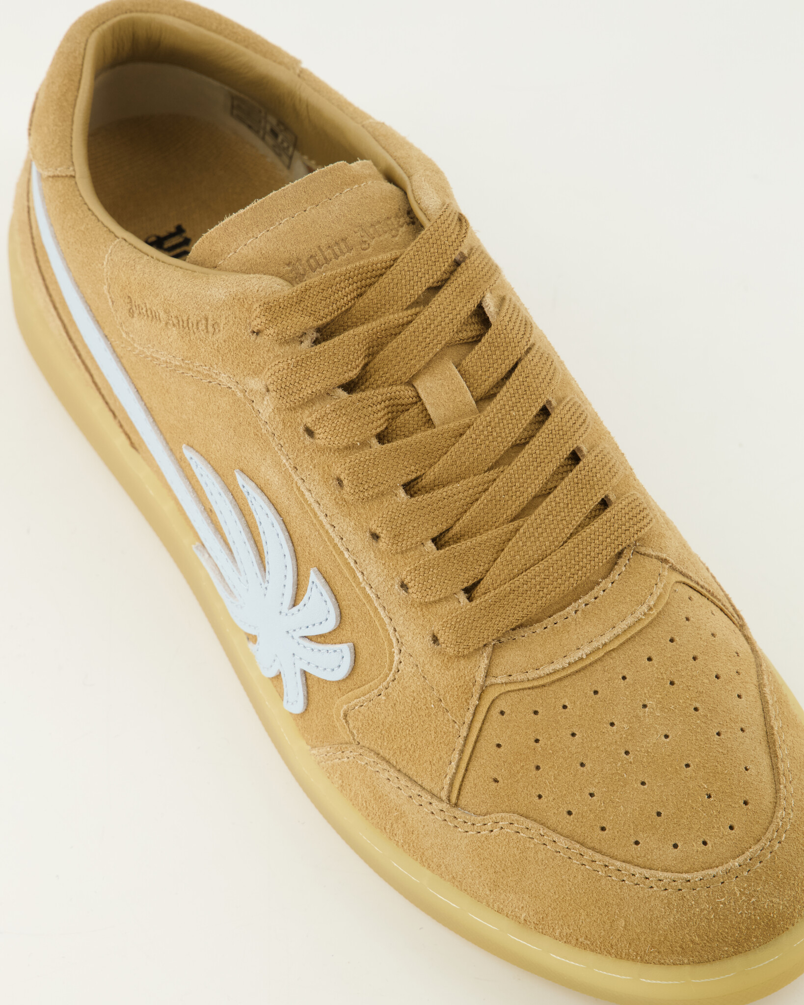 Luxe lage sneakers met karamelkleurige rubberzool en lichtblauwe palmboom-logo’s. Retro look met moderne details. Comfortabel, stijlvol en herkenbaar Palm Angels.