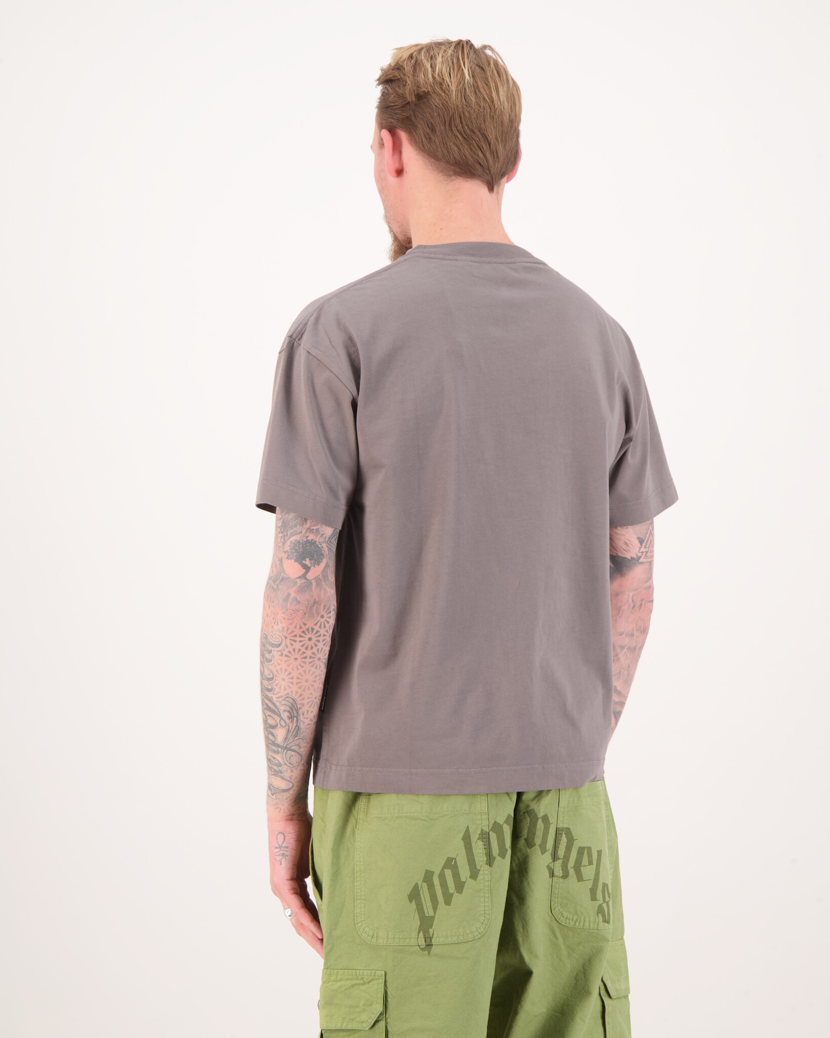 Dit stijlvolle T-shirt van Palm Angels is uitgevoerd in donkergrijs katoen en heeft een opvallend box-logo met slang-print op de borst. De regular fit zorgt voor een comfortabele pasvorm, terwijl het luxe materiaal en de kenmerkende streetwear-stijl het een echte eyecatcher maken. Perfect te combineren met jeans of joggers voor een moderne, urban look.