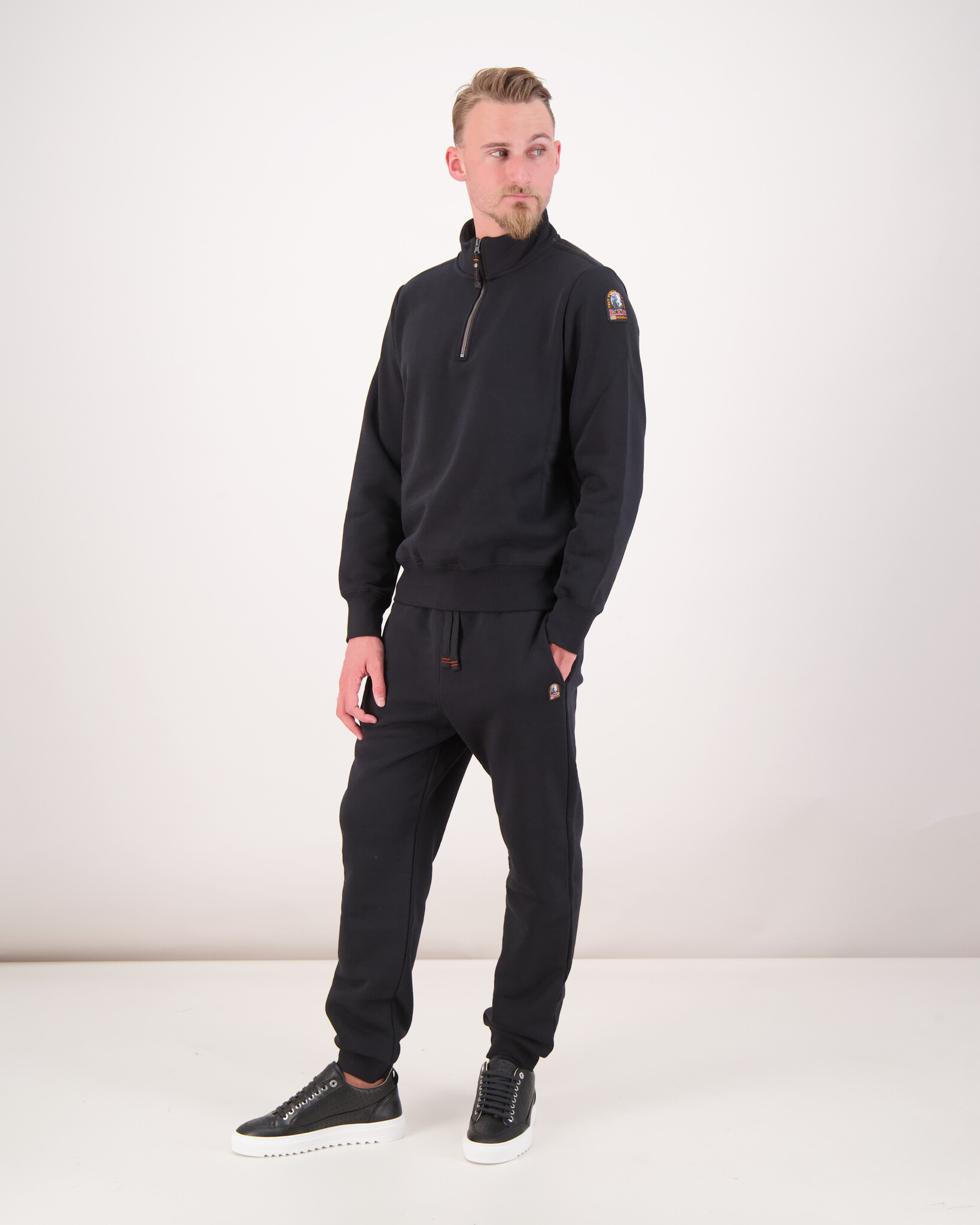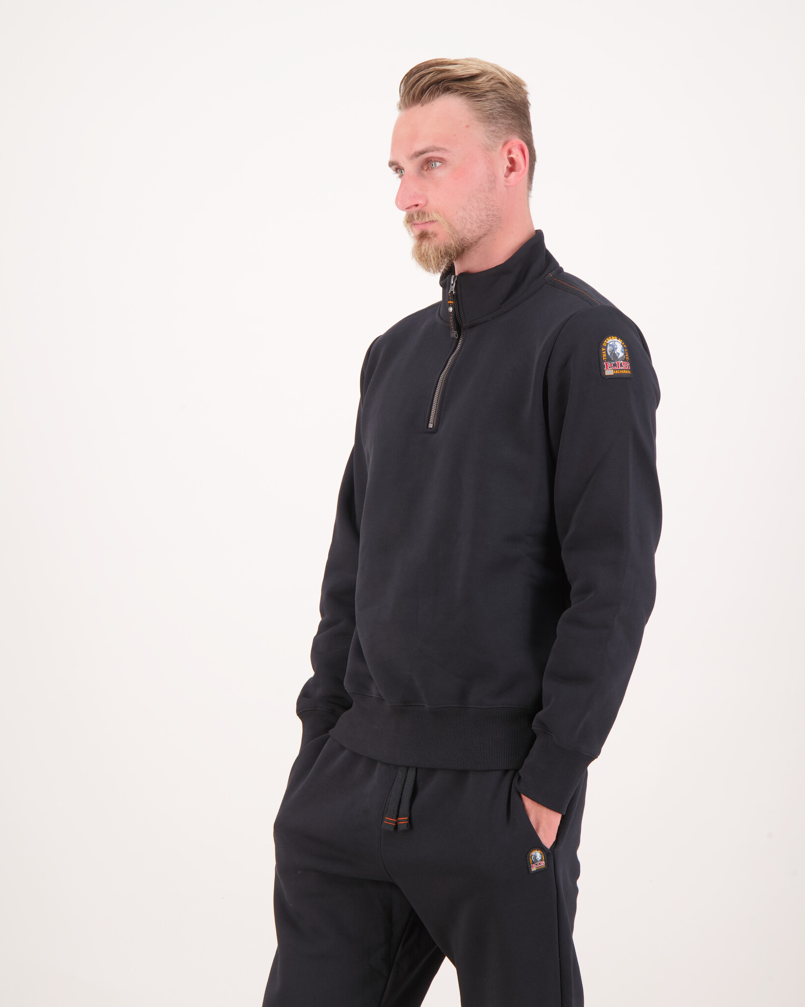 Zwarte Broad Peak Half Zip van het merk Parajumpers. Broad Peak is een sweater, korte rits gemaakt van een katoen-polyester, afkomstig uit de Super Easy Fleece-collectie. Het heeft een eenvoudig ontwerp.