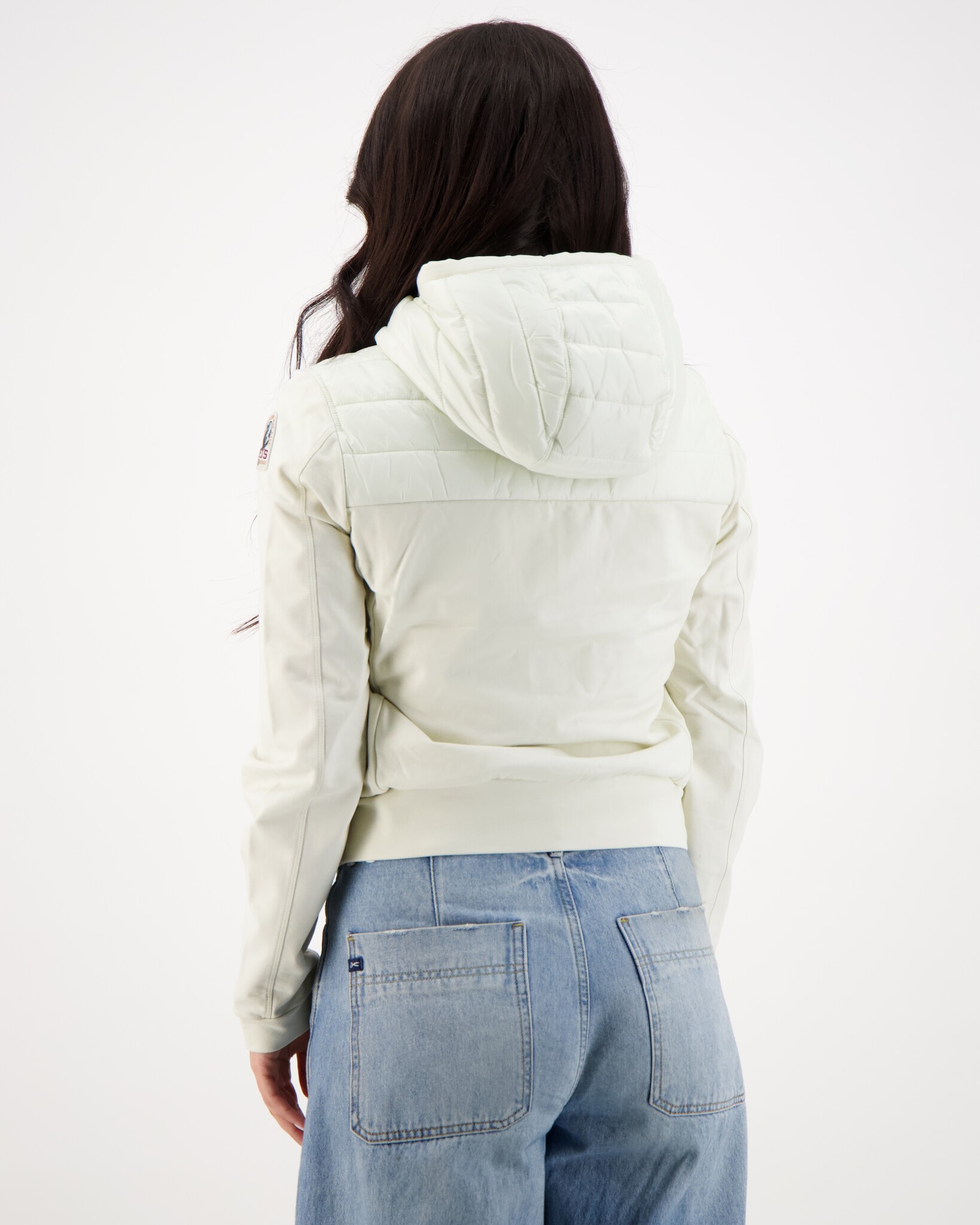 De Caelie Hybride Sweatshirt is een hybride dames-sweatshirt/jack van het merk Parajumpers, ontworpen voor stijl én functionaliteit. Het combineert verschillende materialen en ontwerpen om comfort, warmte en een sportieve uitstraling te bieden. De iconische patch op de mouw en vaak een geel accentlint bij de hals.