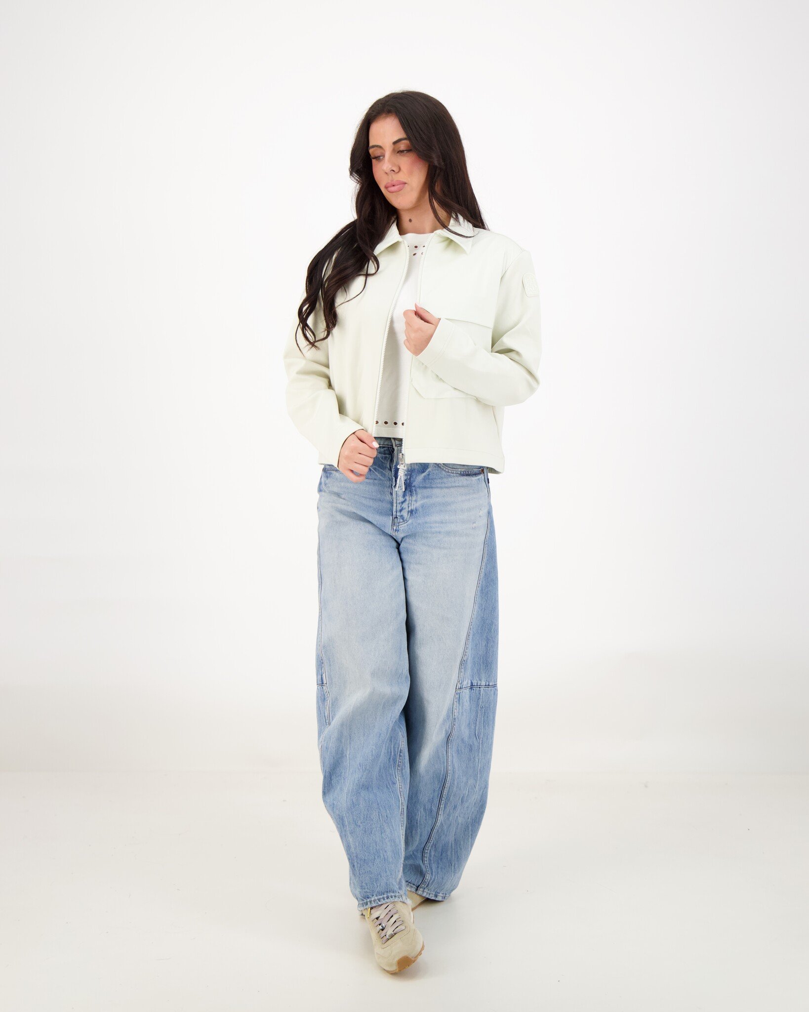 Offwhite Jelka jas van het merk Parajumpers. De bekende patch op de mouw en de gele elastische band bij de kraag. Het is een praktische jas voor dagelijks gebruik – ideaal voor stedelijke mode of casual outfits wanneer je iets nodig hebt dat licht beschermt tegen wind en schommelingen in temperatuur.