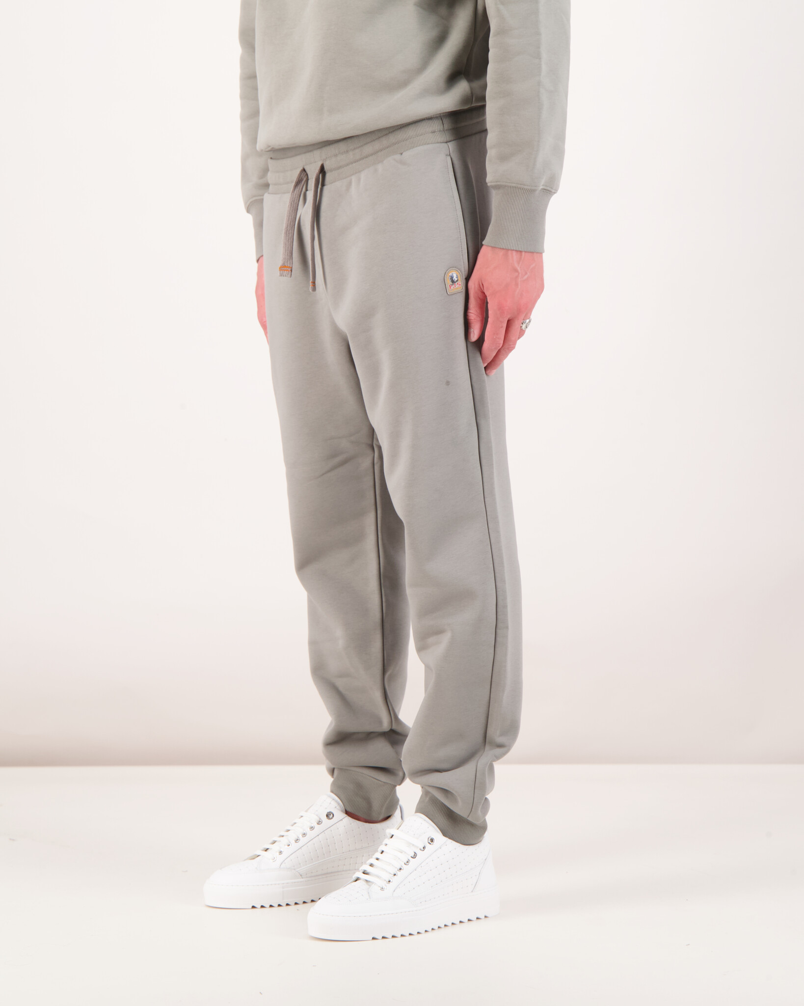 Donkergrijze Makalu Fleece Jogger van het merk Parajumpers. Makalu is een lange broek gemaakt van katoen-polyester fleece, afkomstig uit de Super Easy Fleece-collectie.