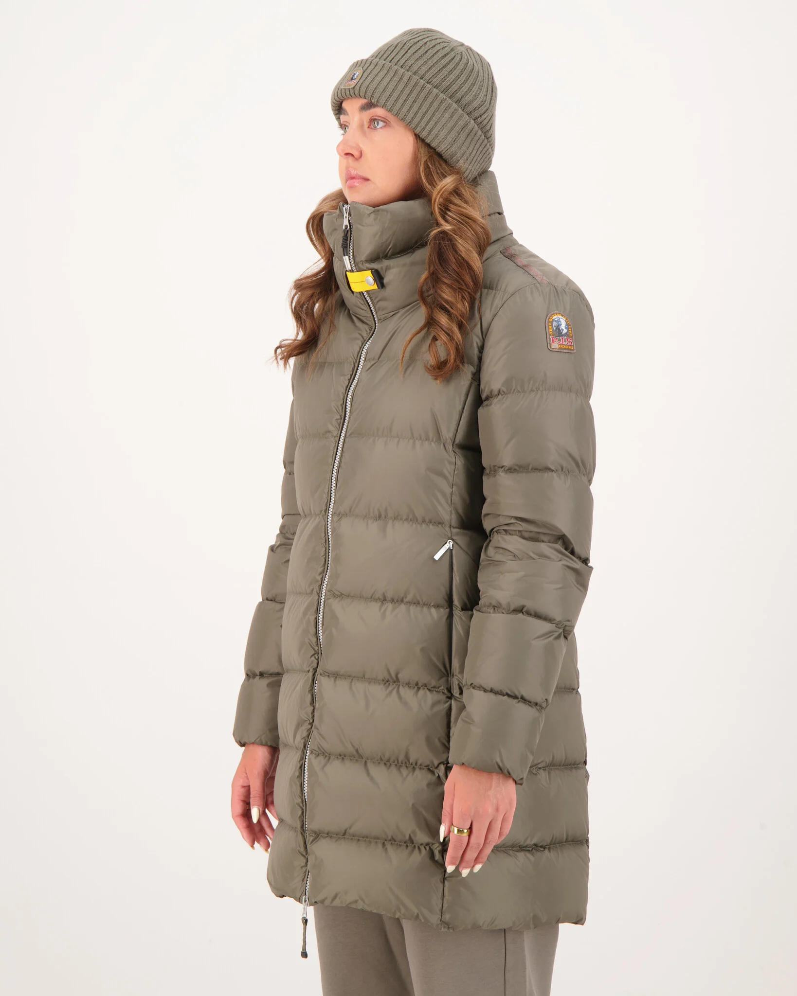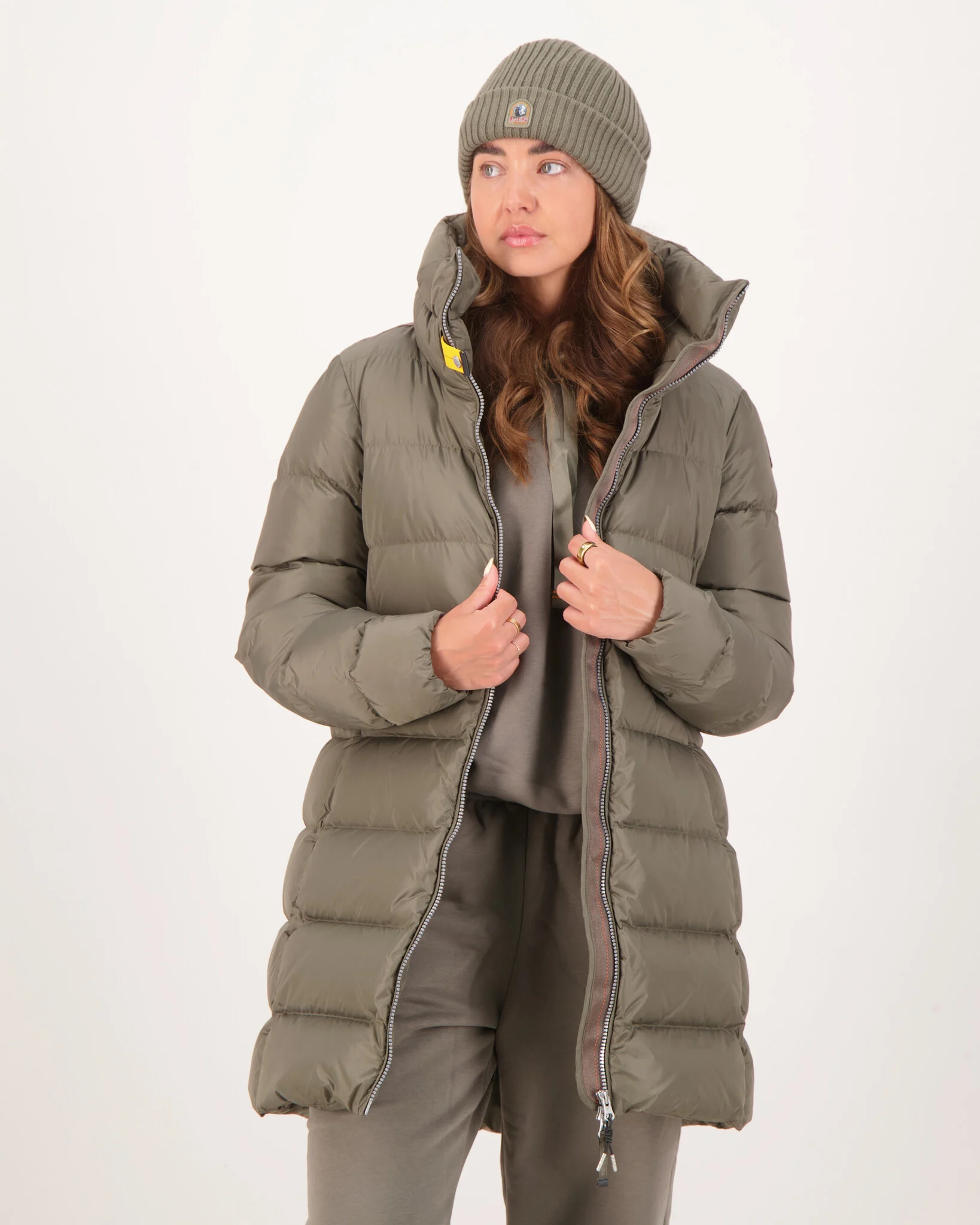 Stijlvol, warm en functioneel, de Malandra is een lange dames winterjas met hoogwaardige donsvoering. De matte afwerking en minimalistische look geven de jas een luxe uitstraling, terwijl details zoals ventilatie onder de armen, meerdere zakken en het iconische Parajumpers-gele bandje zorgen voor comfort en karakter. Ideaal voor koude dagen zonder concessies te doen aan stijl.