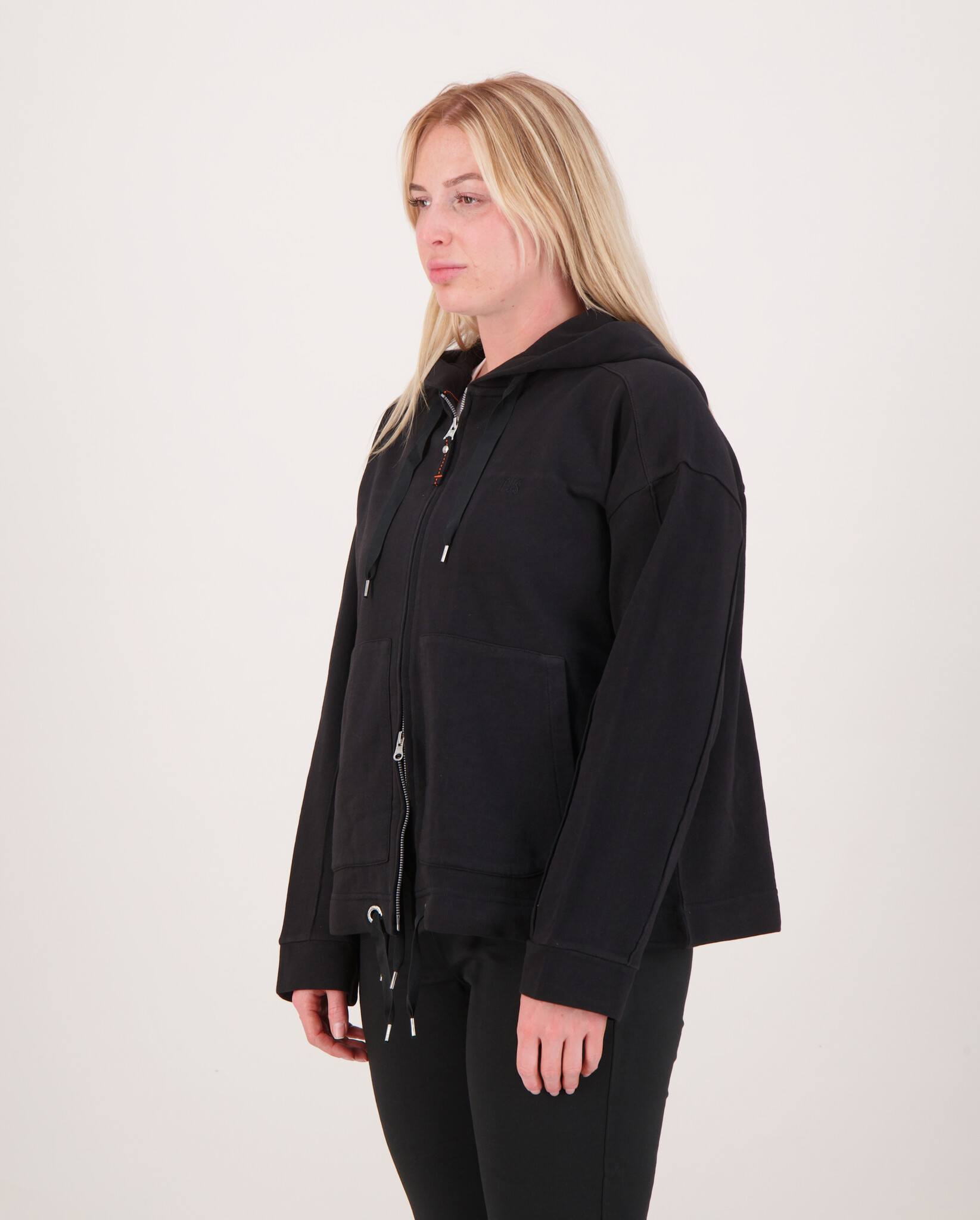 Het May Vest van het merk Parajumpers Dames. May is een sweater met capuchon gemaakt van bamboe-katoen French terry, afkomstig uit de Leisure Fleece-familie. Er zit een monochroom geborduurd PJS-logo op en het heeft een relaxed pasvorm.