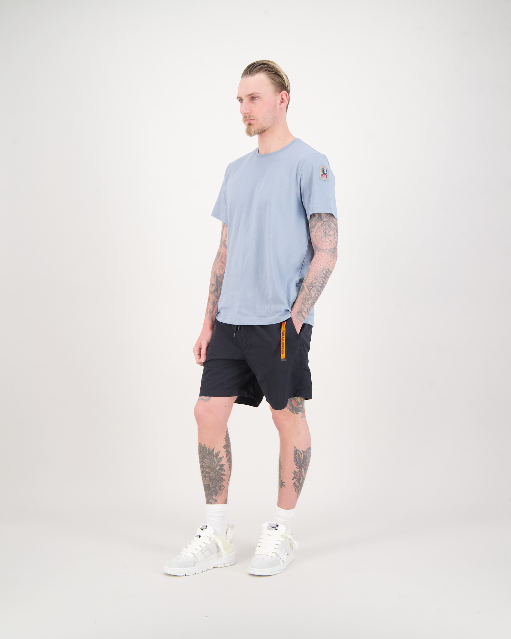 Zwarte Mitch Swim Short van het merk Parajumpers. De zwembroek heeft een aantrekkoord, twee steekzakken en een achterzak met klittenband. Op de voorzijde is de bekende Parajumpers Patch toegevoegd.