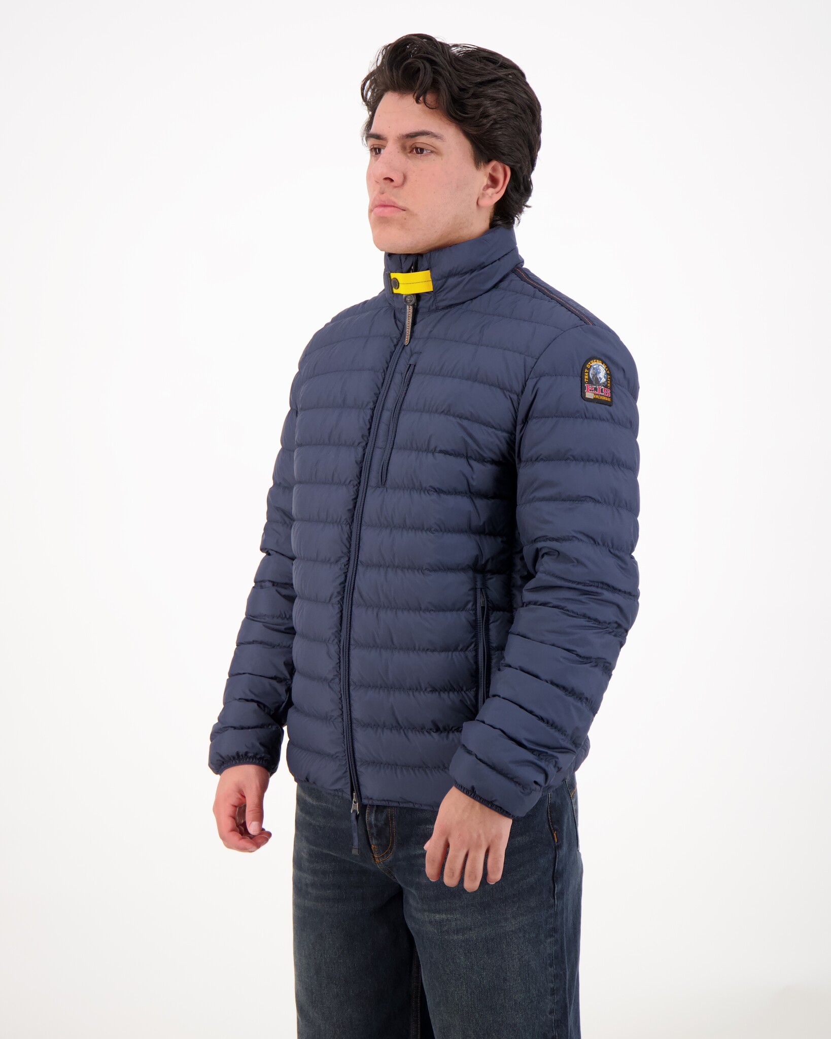 De Parajumpers Ugo korte donsjas combineert een sportieve uitstraling met functionele warmte. Deze lichtgewicht jas is gevuld met hoogwaardige donsisolatie en biedt optimale bescherming tegen kou zonder zwaar aan te voelen. Het minimalistische ontwerp wordt versterkt door kenmerkende Parajumpers-details, waaronder de iconische gele halsband-sluiting en het logopatch op de mouw. Ideaal als comfortabele tussenjas of als warme laag tijdens koudere dagen.