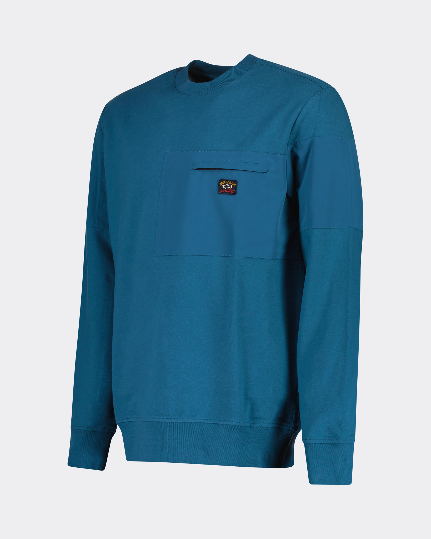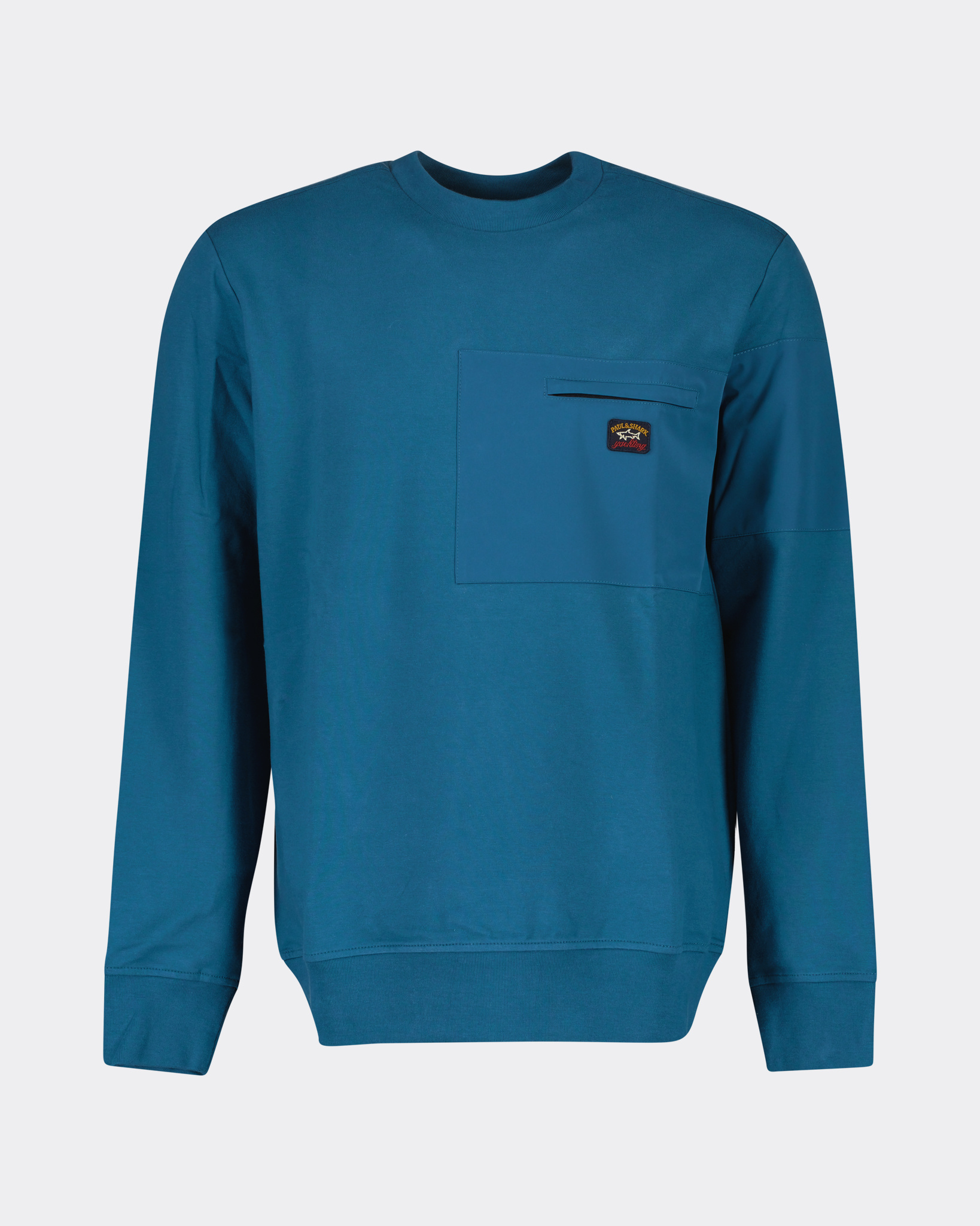 M.blauwe Men's Knitted Sweatshirt van het merk Paul & Shark. De Sweater heeft een ronde hals, lange mouwen en op de borst een zakje met rits met daarop het bekende logo.