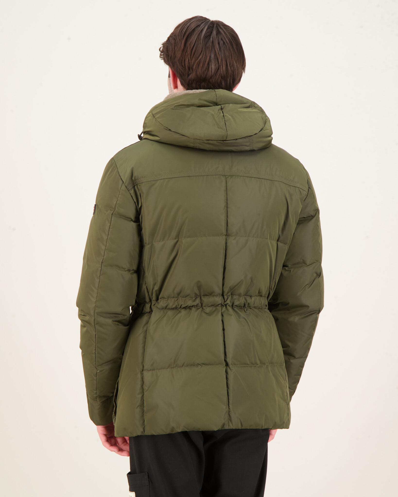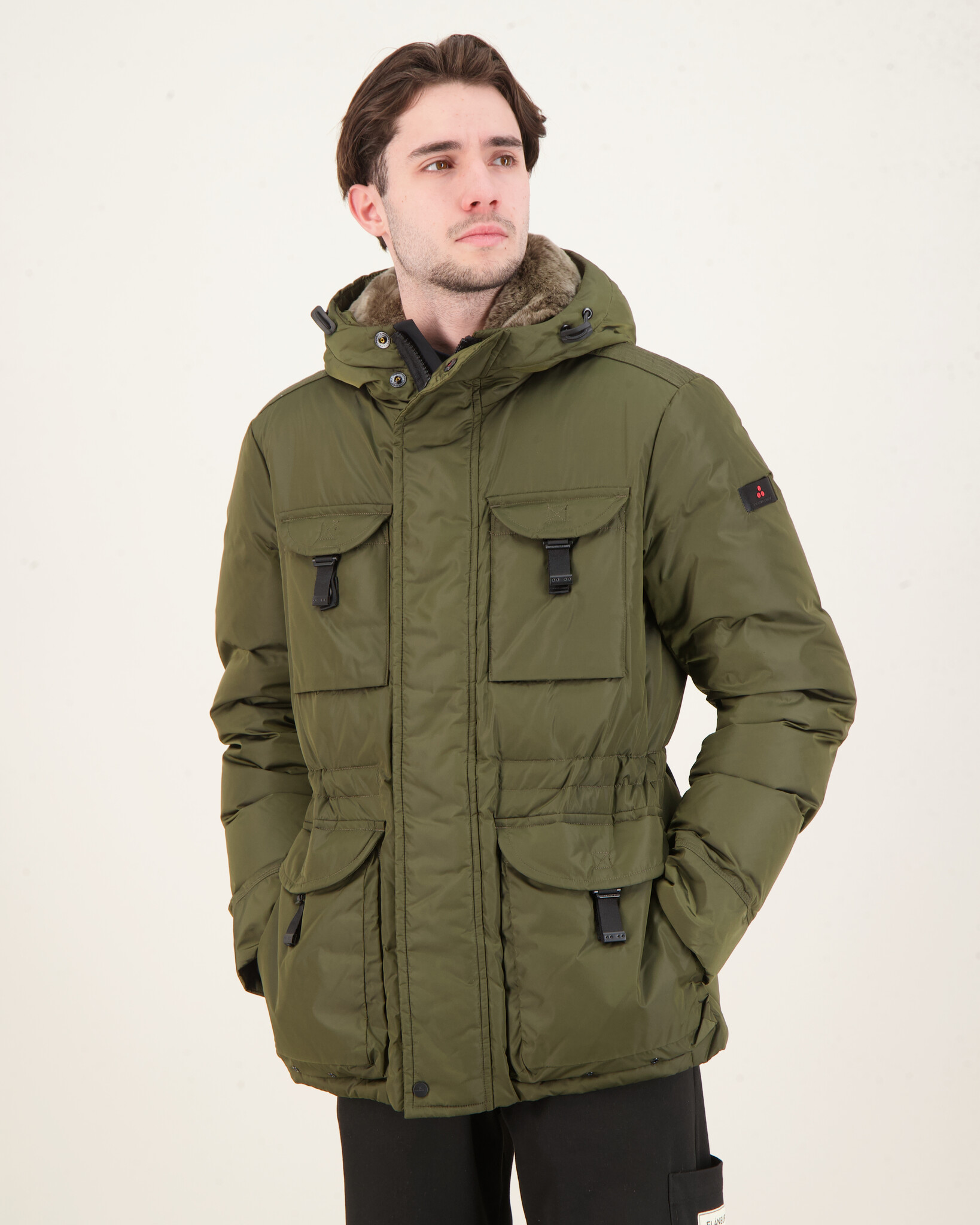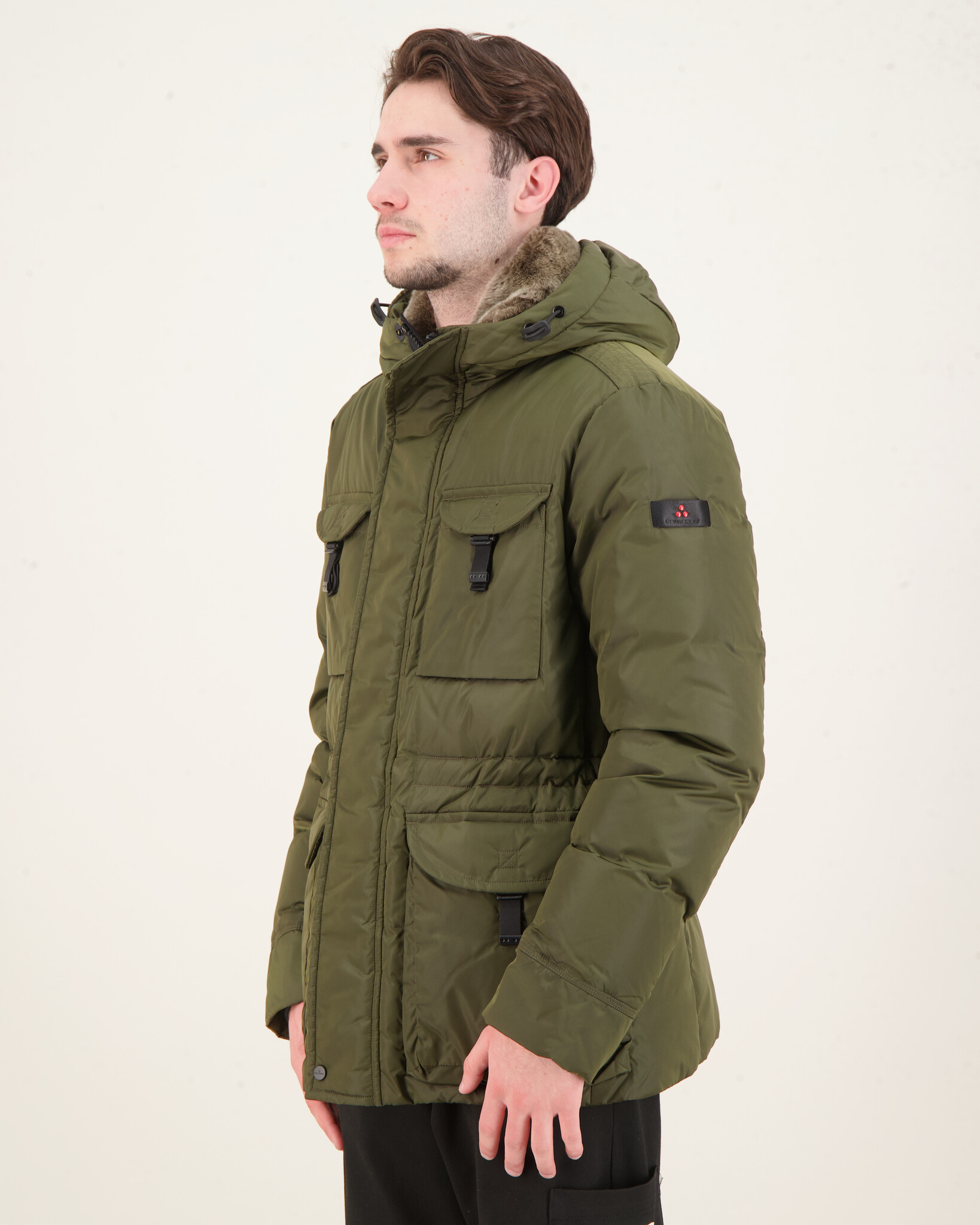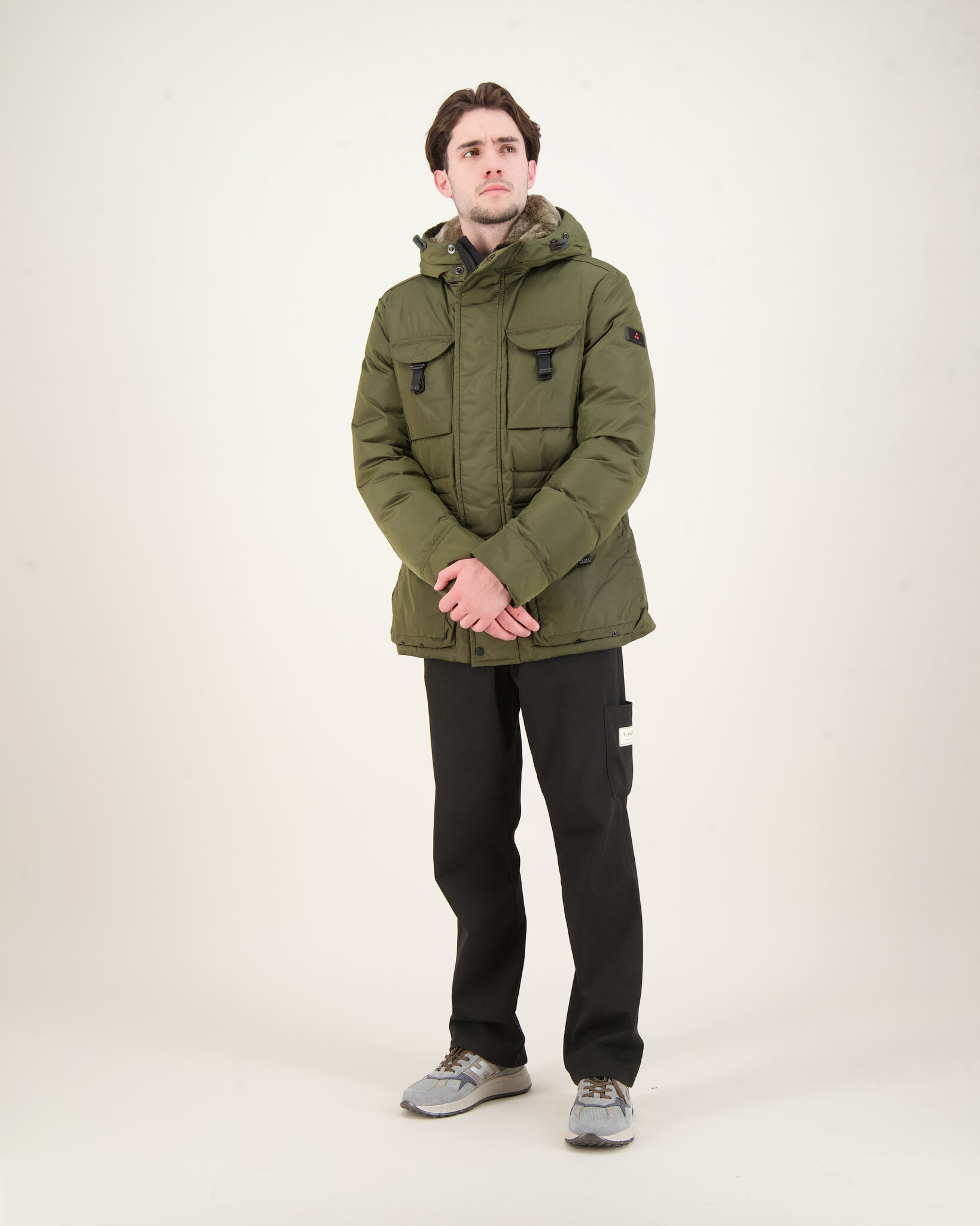 Groene Aiptek NBE Fur Jacket van het merk Peuterey. De jas is voorzien van een dons voering waardoor de lichaamswarmte goed wordt vastgehouden en je zelfs in de koudste omstandigheden heerlijk warm blijft. De jas heeft een capuchon met heerlijk warme afneembare bontkraag, meerdere afsluitbare zakken en het bekende logo op de linkerarm.