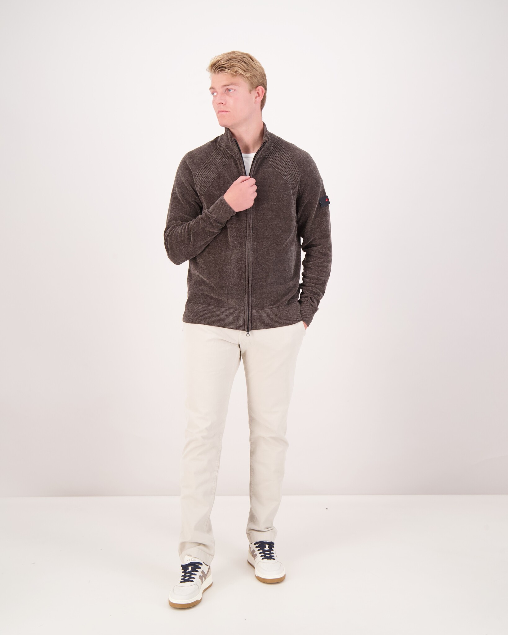 Stijlvolle en comfortabele zip-up sweater van Peuterey in diepblauw chenille. Voorzien van een volledige ritssluiting en een moderne pasvorm – perfect als licht vest voor elke dag.