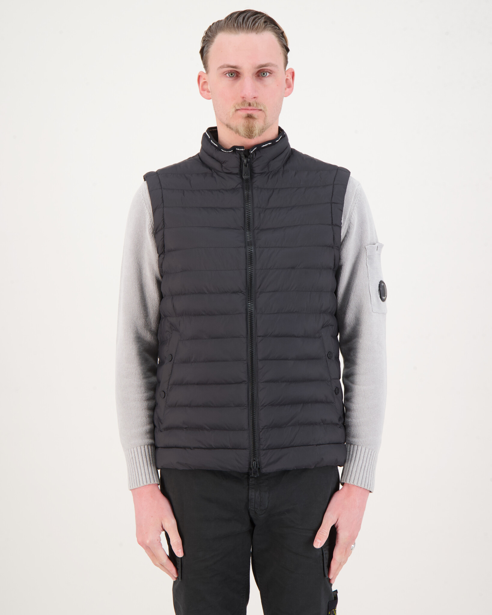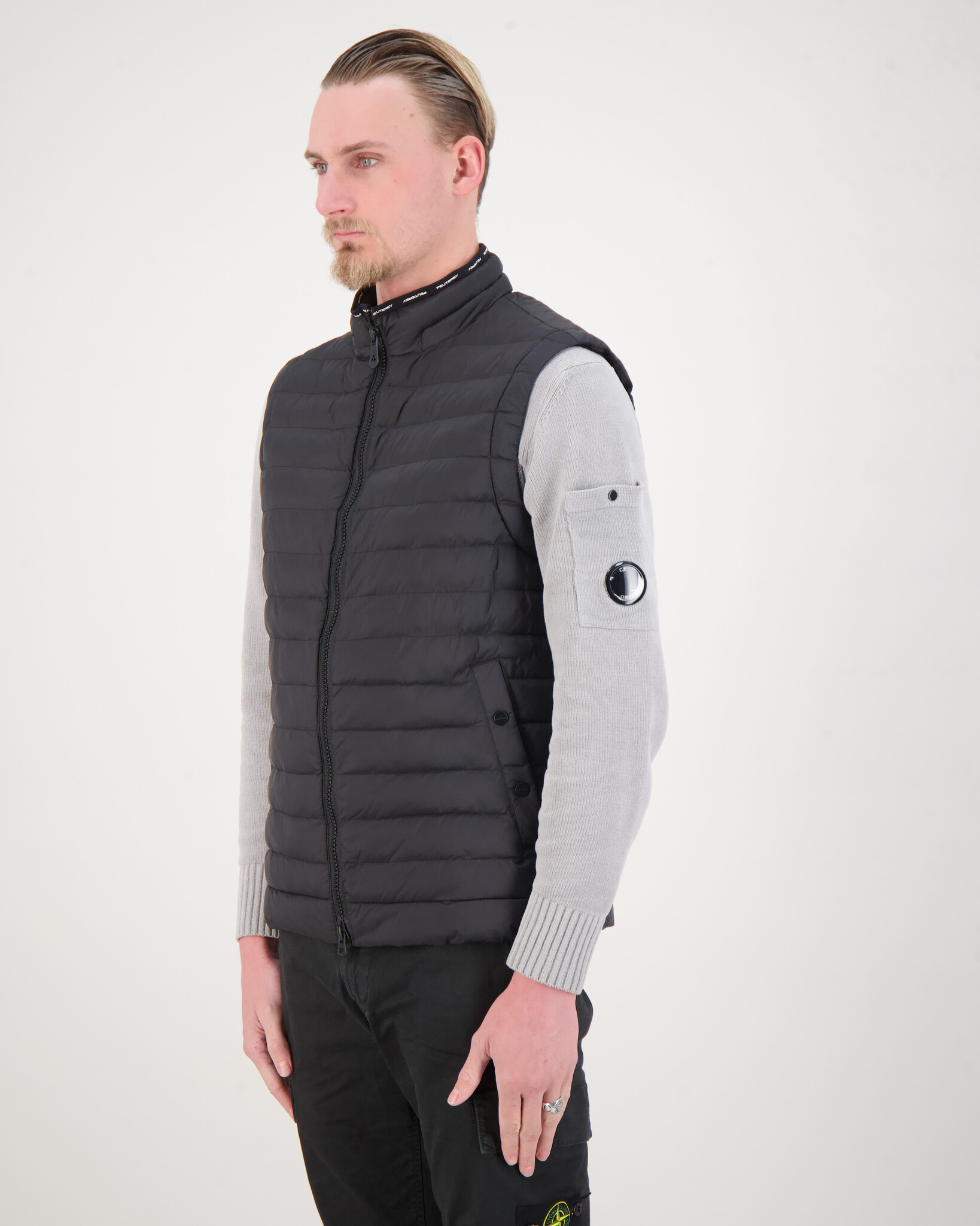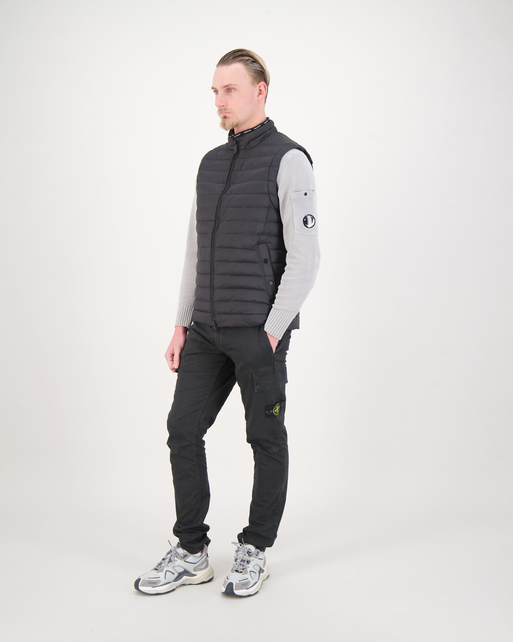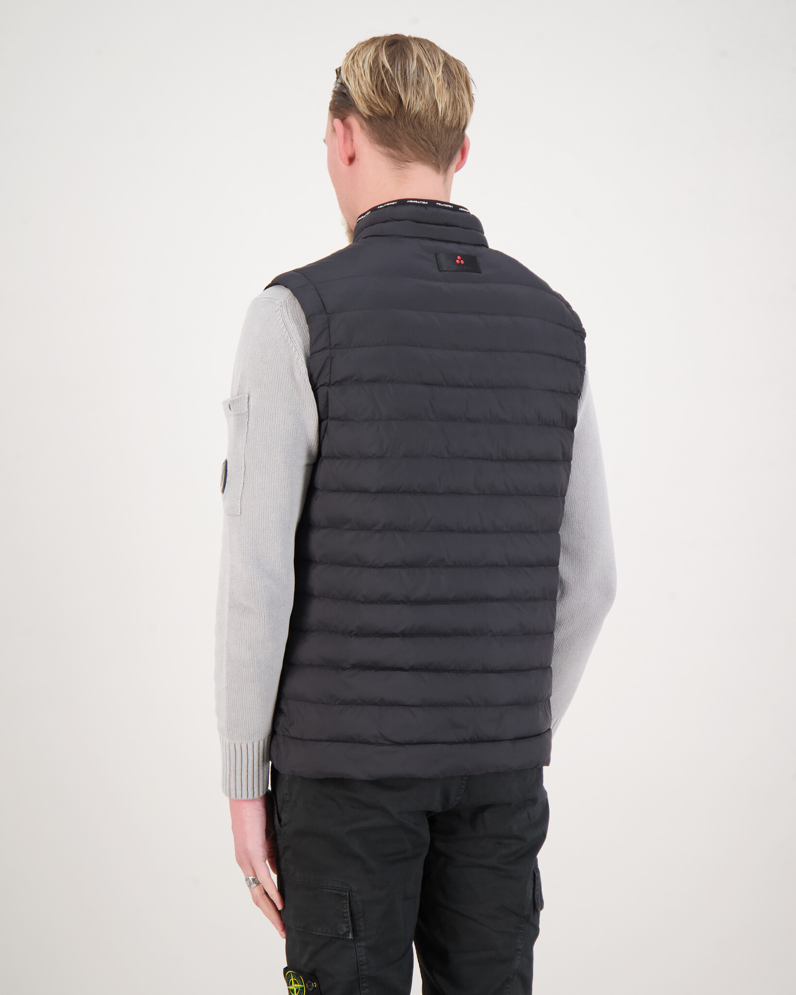 Zwarte Moise KNC 01 Vest van het merk Peuterey. De Bodywarmer heeft twee zakken en sluit door middel van een rits. Bovenaan de kraag staat de merknaam Peuterey.
