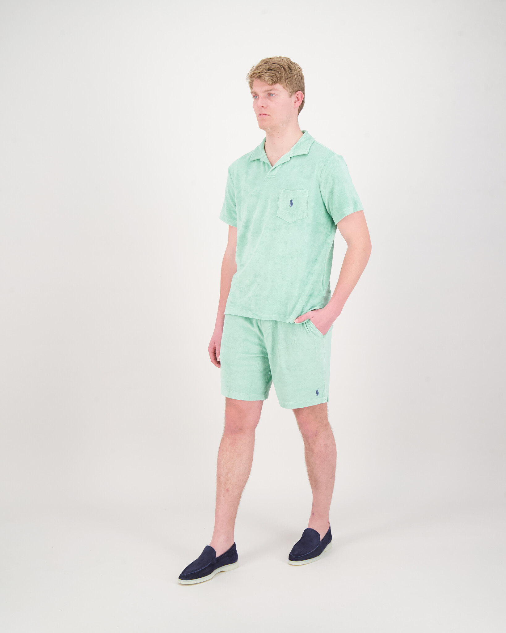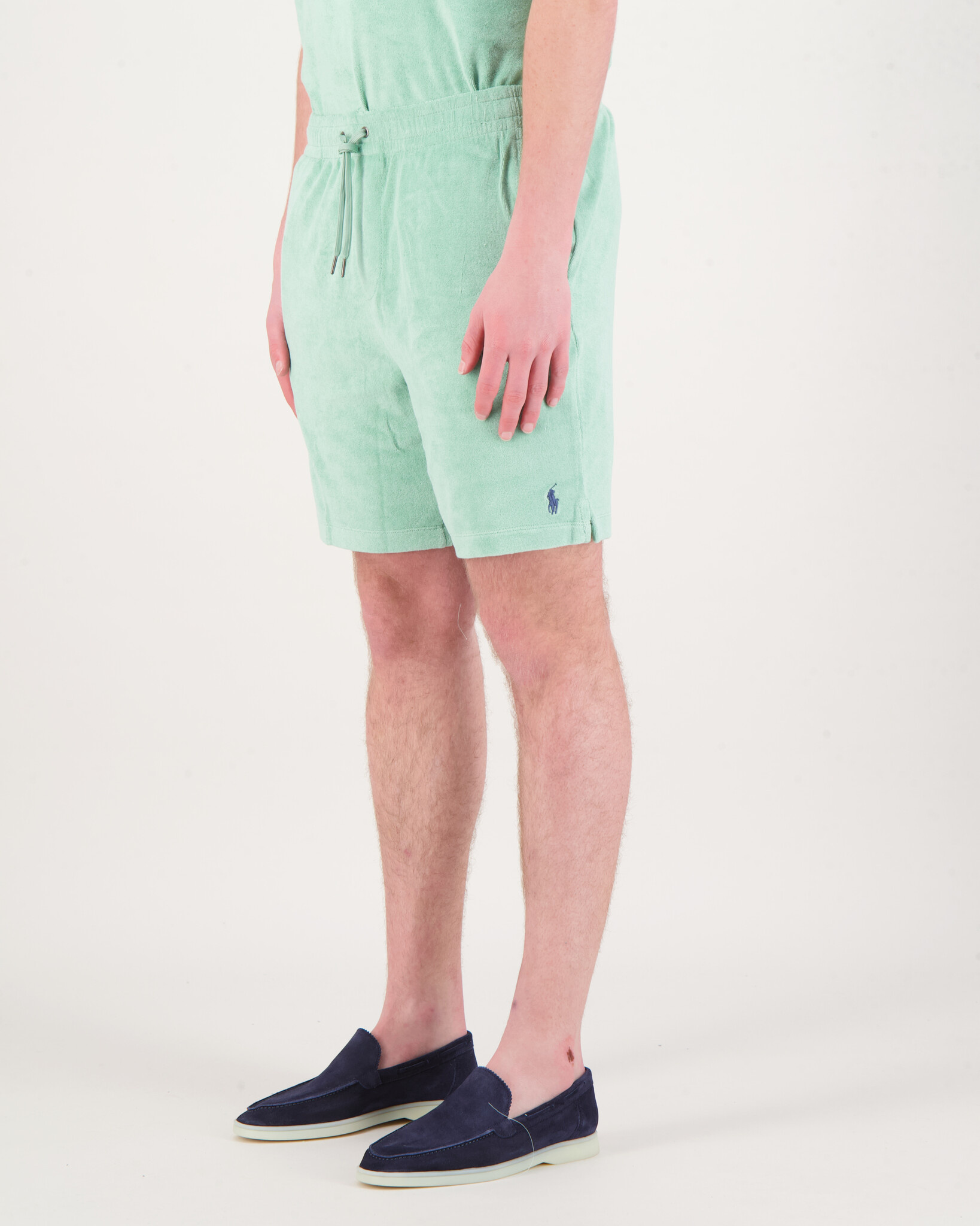 Groene Athletic Badstof short van het merk Polo Ralph Lauren. De short heeft twee steekzakken en aantrekkoort met het bekende logo op de voorkant.