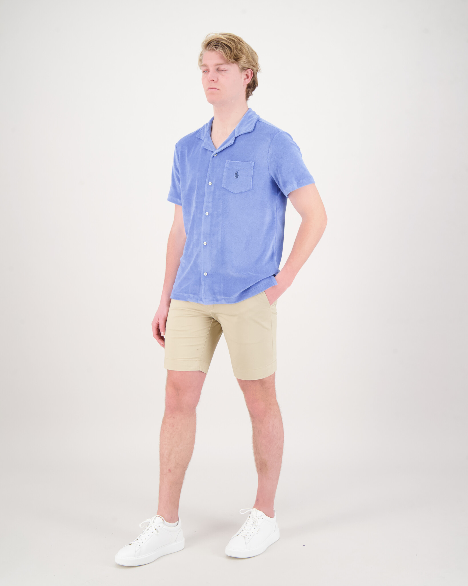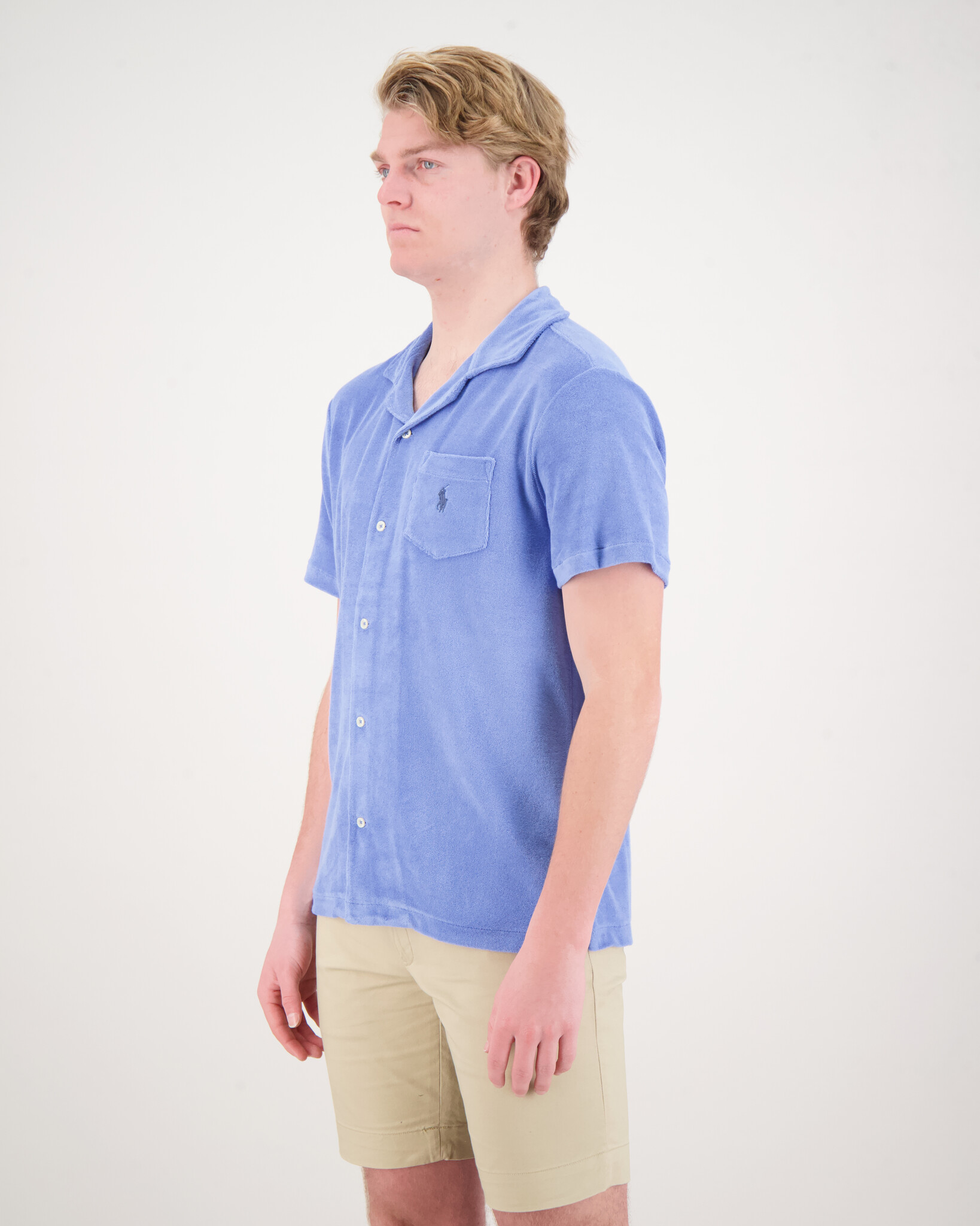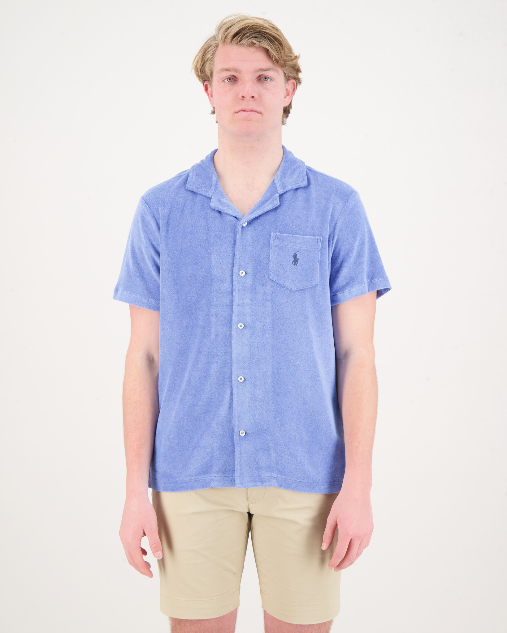 Blauw Badstof Shirt van het merk Polo Ralph Lauren. Het Shirt heeft korte mouwen en is aan de voorzijde voorzien van knopen. Op de borst zit een vakje met het bekende Polo Ralph Lauren logo.
