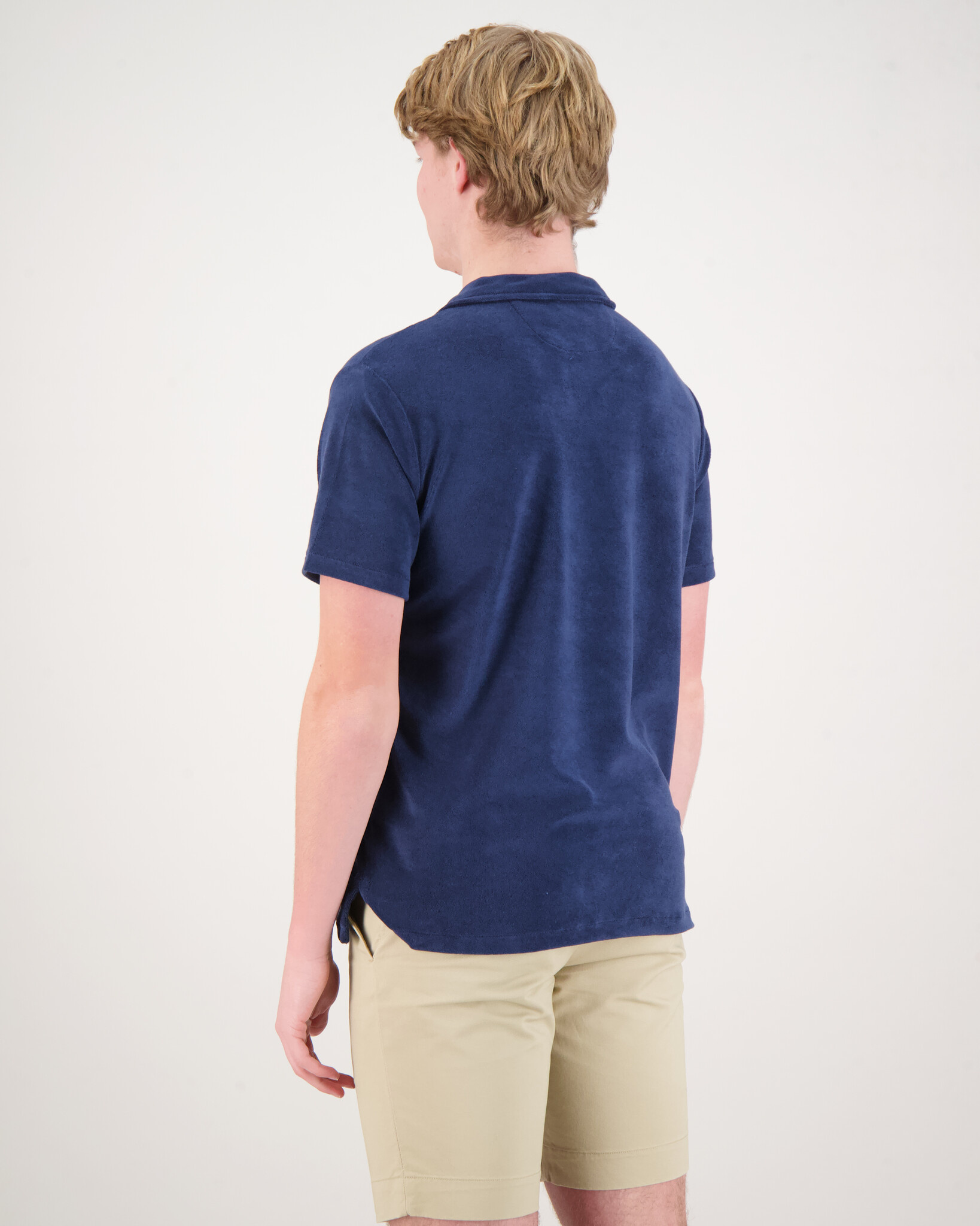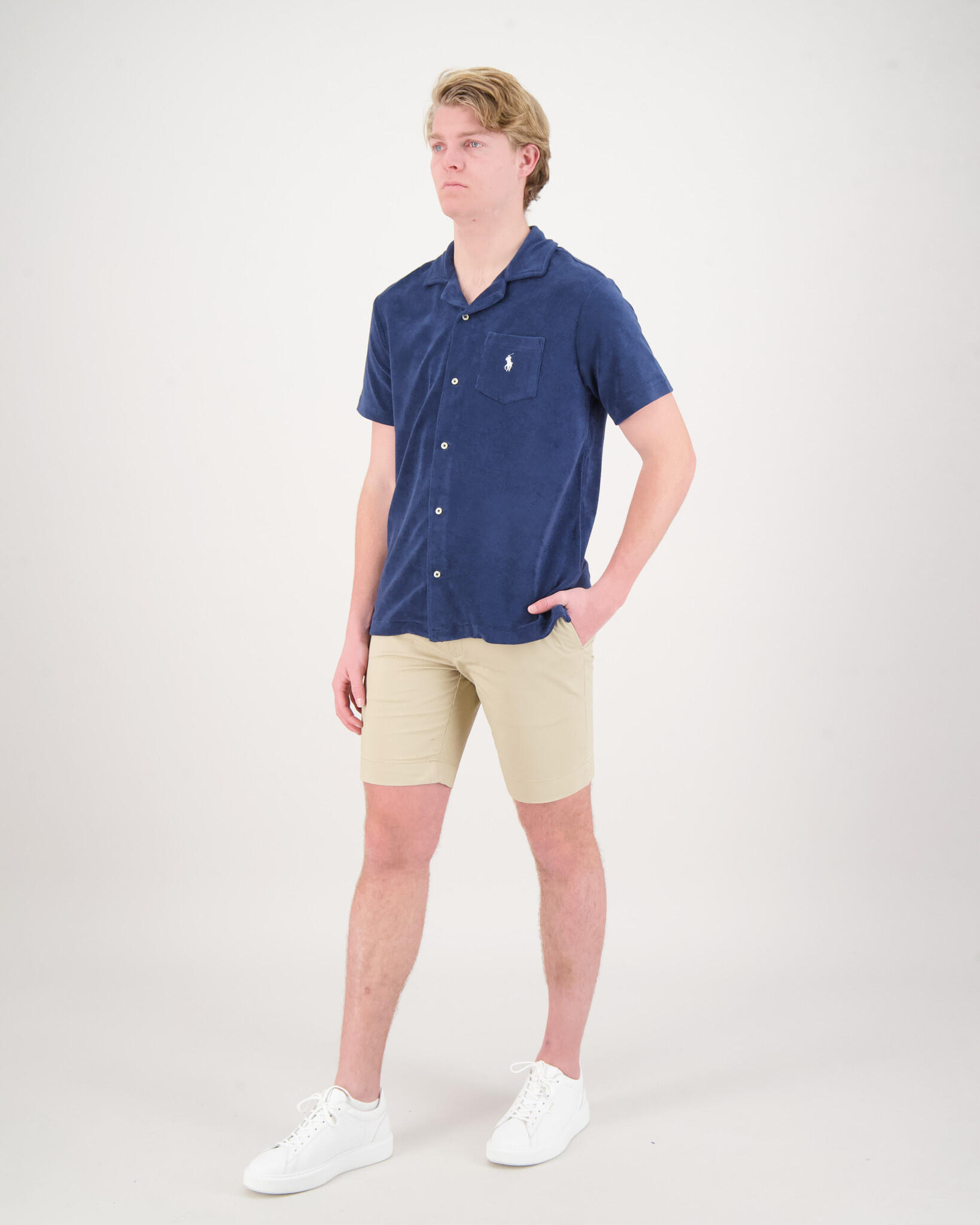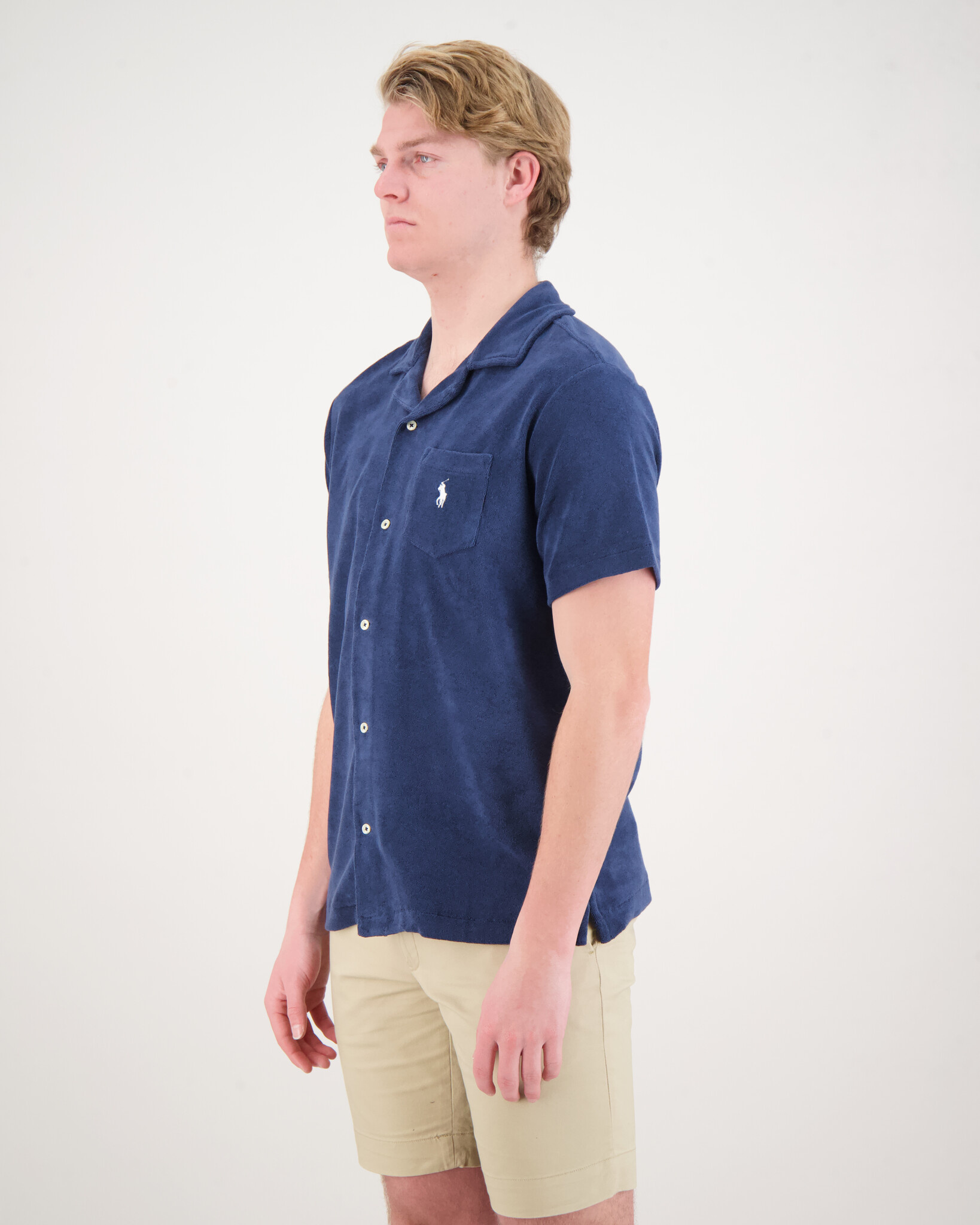 Marine Badstof Shirt van het merk Polo Ralph Lauren. Het Shirt heeft korte mouwen en is aan de voorzijde voorzien van knopen. Op de borst zit een vakje met het bekende Polo Ralph Lauren logo.