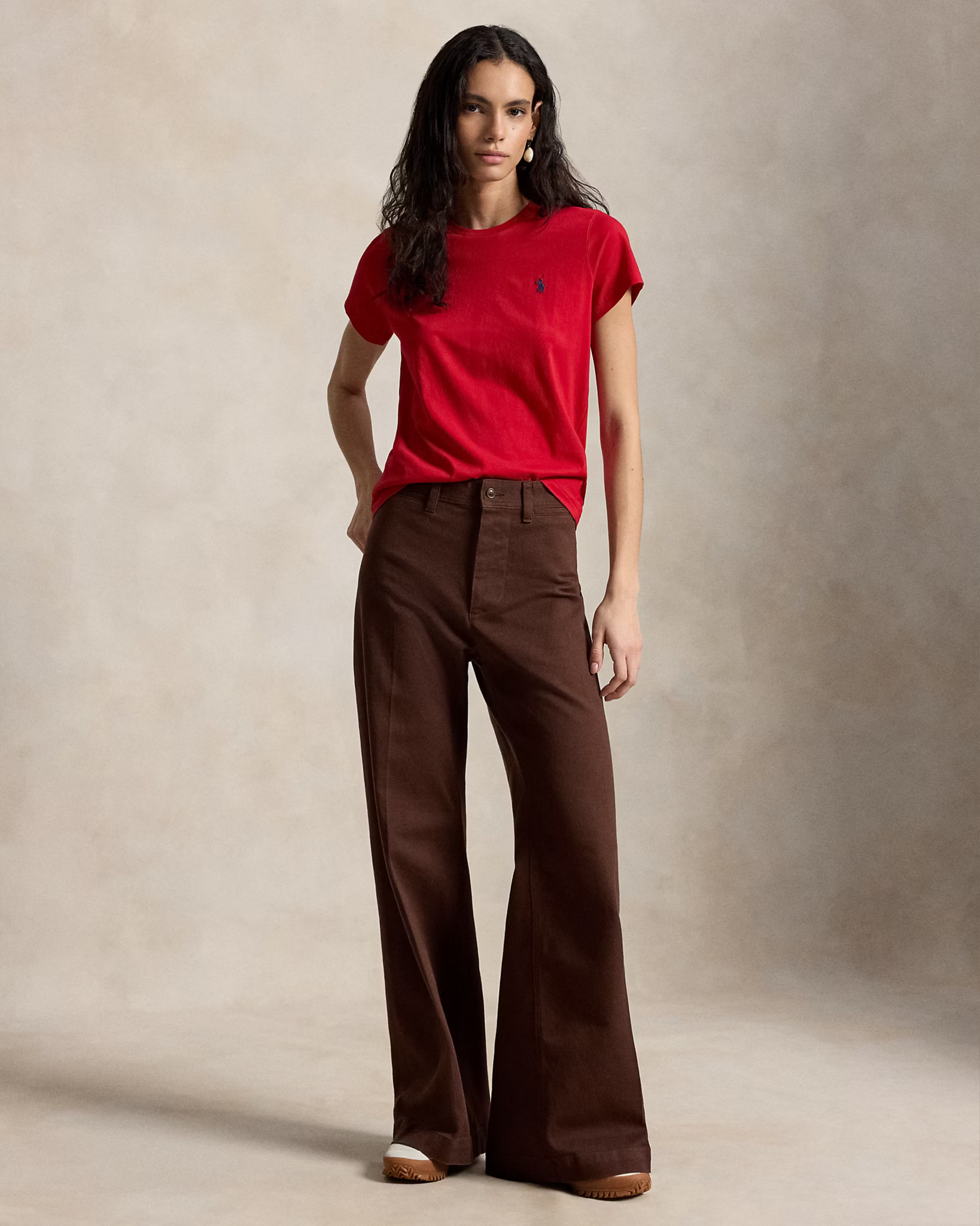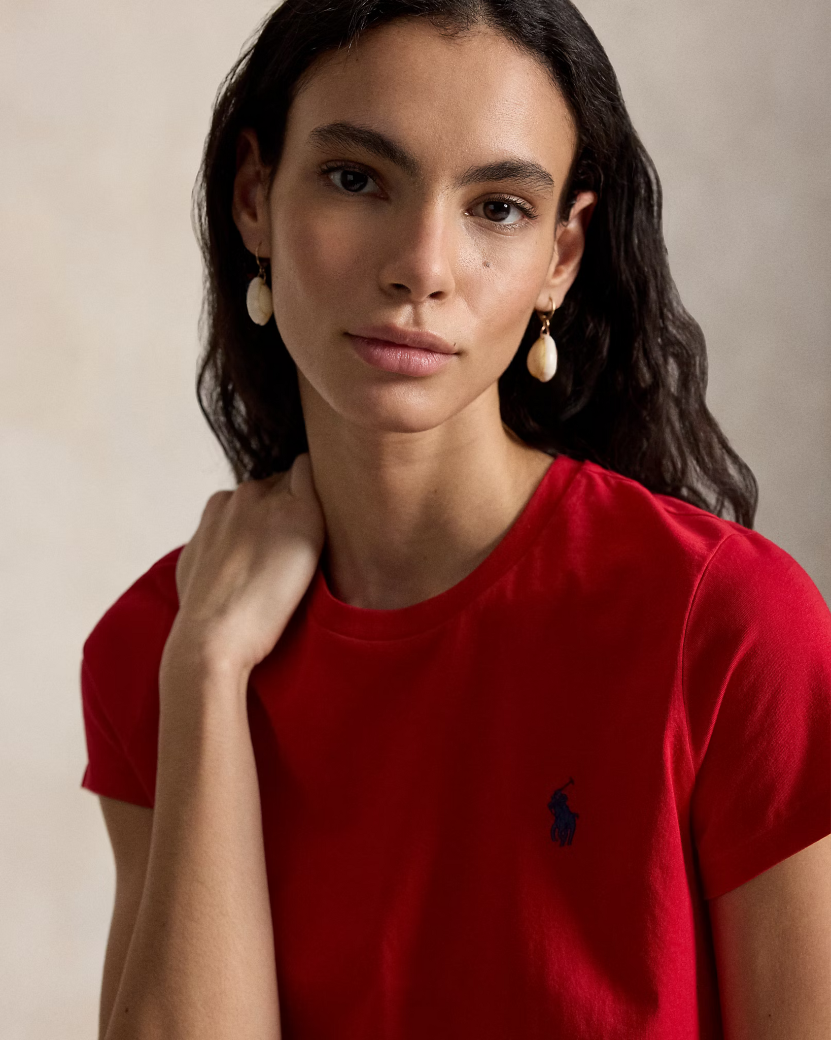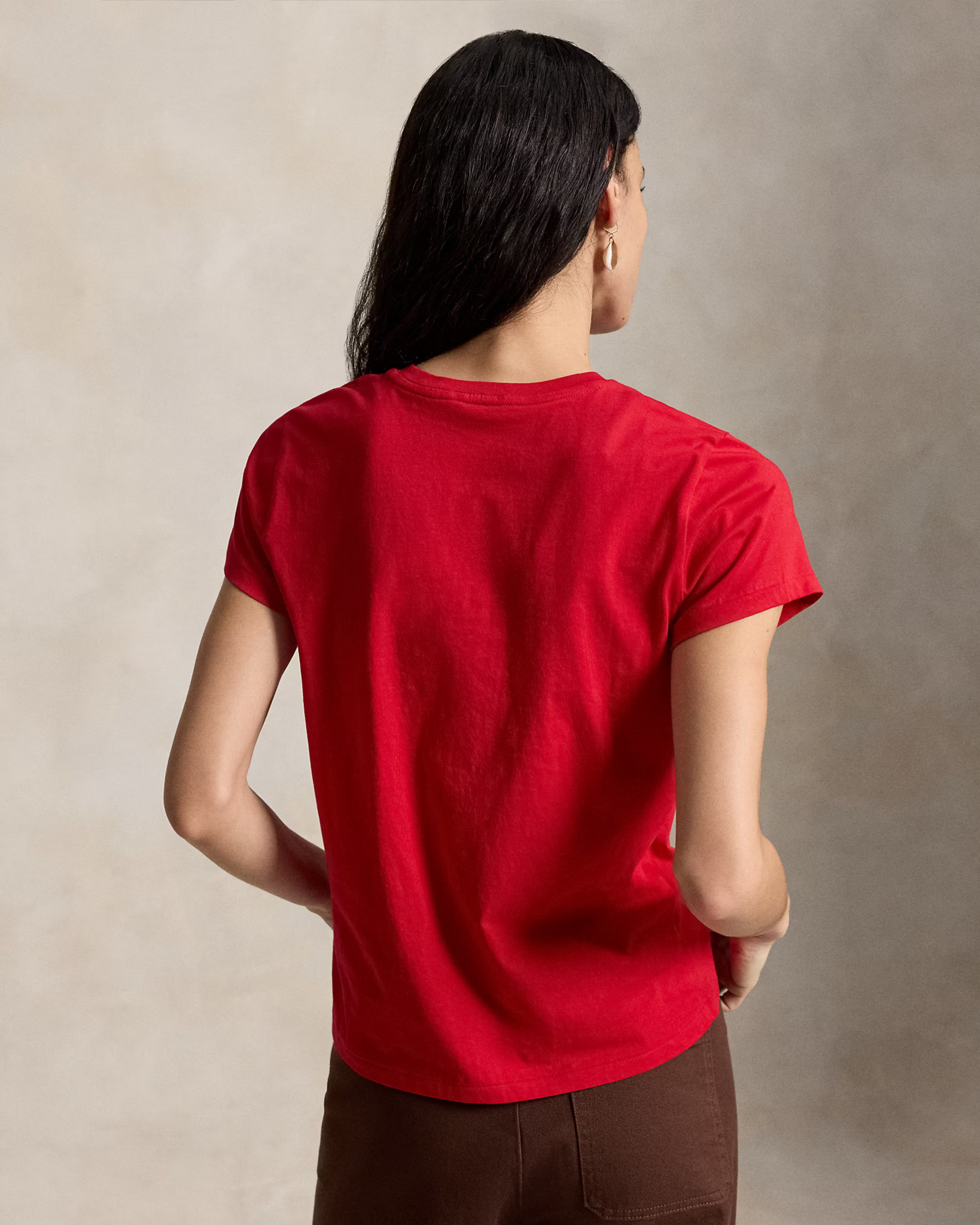 Rode Classic Fit T-Shirt van het merk Polo Ralph Lauren. Het T-shirt heeft een ronde hals, korte mouwen en links op de voorkant het bekende logo.