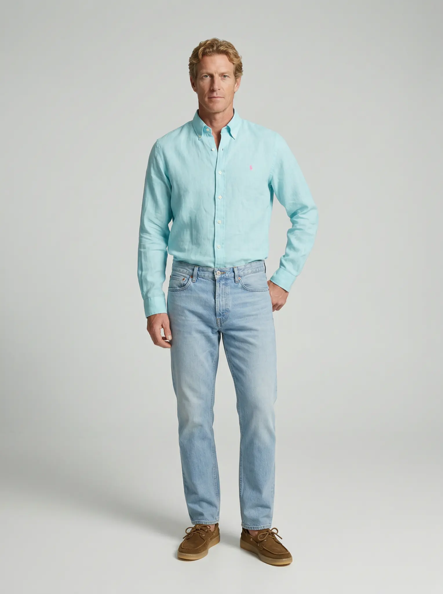 Het Custom Fit Linnen Overhemd van Ralph Lauren, uitgevoerd in een stijlvolle marinekleur, combineert een tijdloze uitstraling met een zomerse, verfijnde look. De diepe kleur geeft het overhemd een elegante en veelzijdige uitstraling, perfect voor zowel casual als smart-casual outfits.