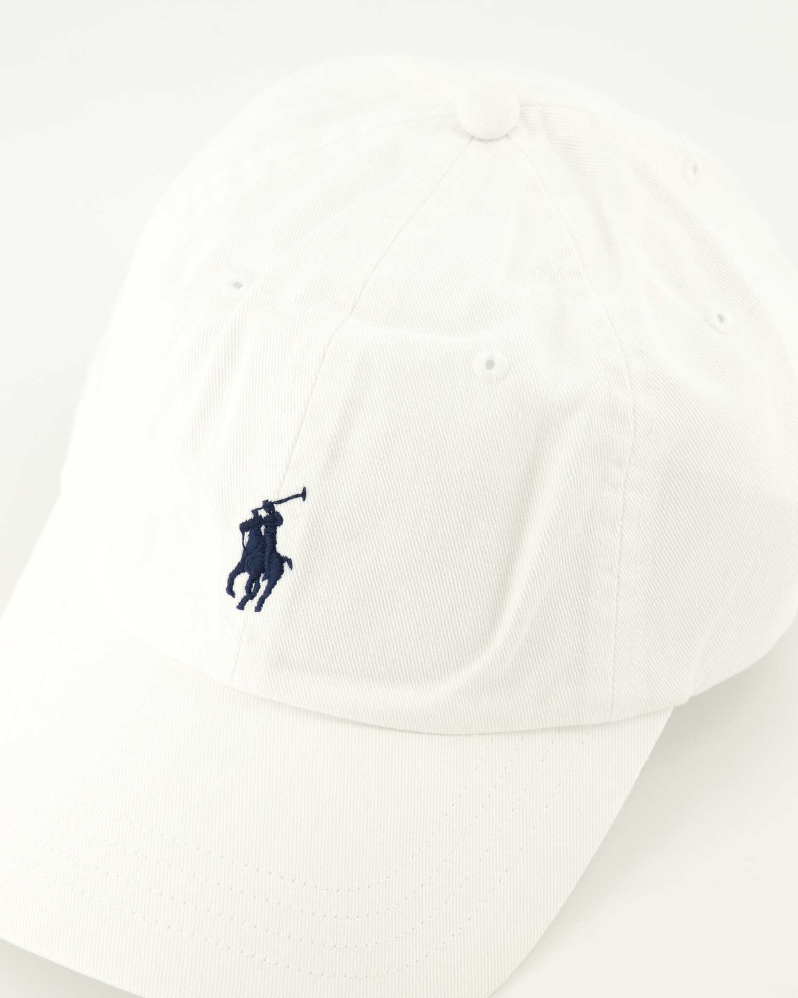 Witte Iconische Katoenen Chino Baseballpet van het merk Polo Ralph Lauren. 100% katoen, ademend en comfortabel. Zes panelen constructie met gebogen klep en ventilatiegaatjes. Bekende Polo Ralph Lauren logo geborduurd op de voorkant. One-size met verstelbare sluiting achteraan — hierdoor geschikt voor alle hoofdomtrekken. Casual en tijdloos en past daarom bij sportieve outfits of een relaxte streetwear-look.