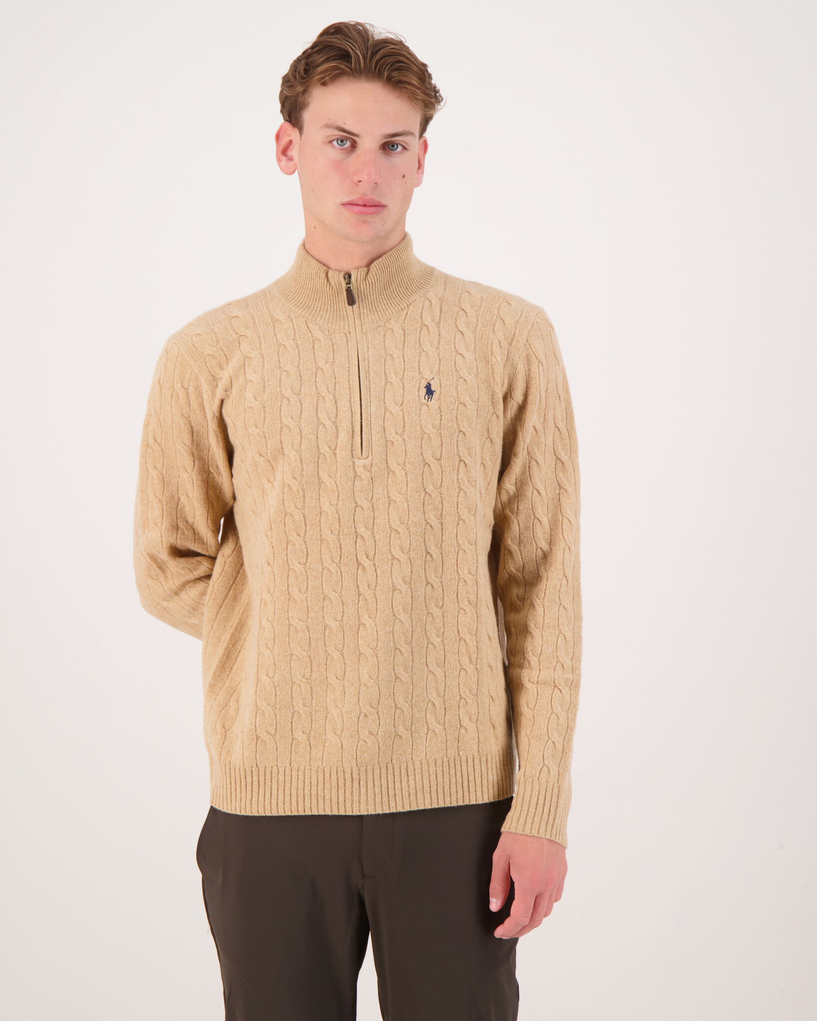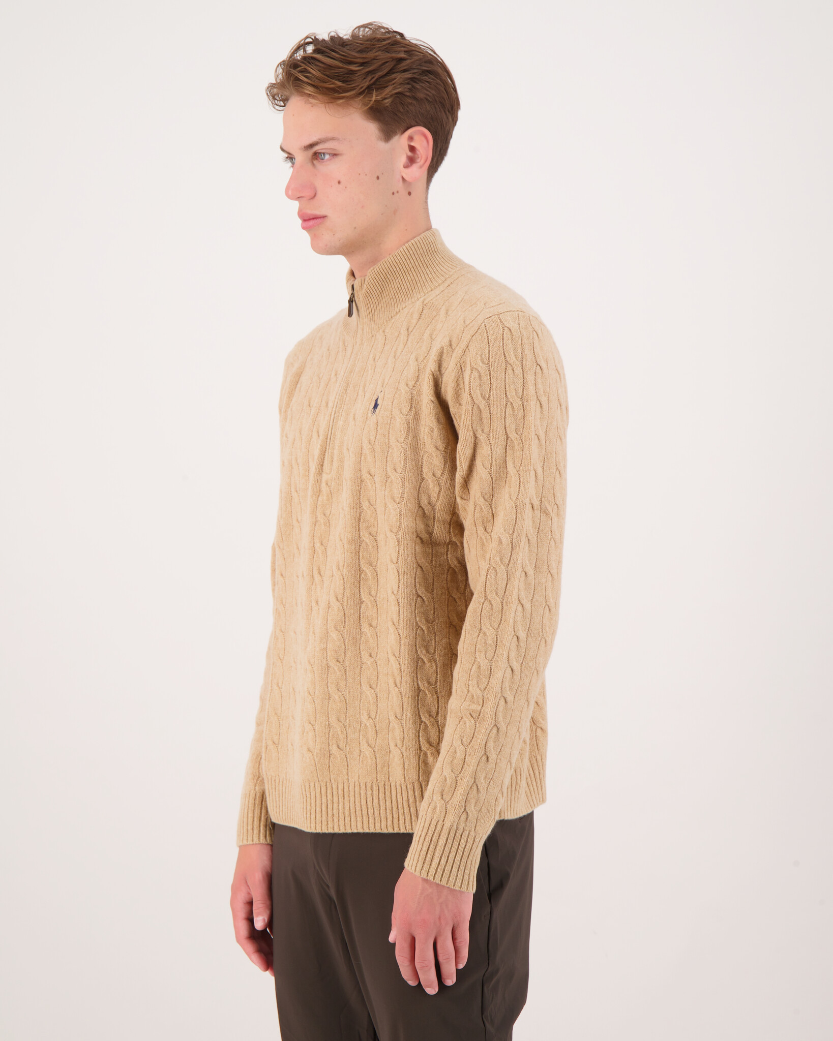 Camel Long Sleeve Half zip Knitwear Pullover van het merk Polo Ralph Lauren. Op de linkerborst staat het bekende Polo Ralph Lauren logo. Knitwear met halve zip up.