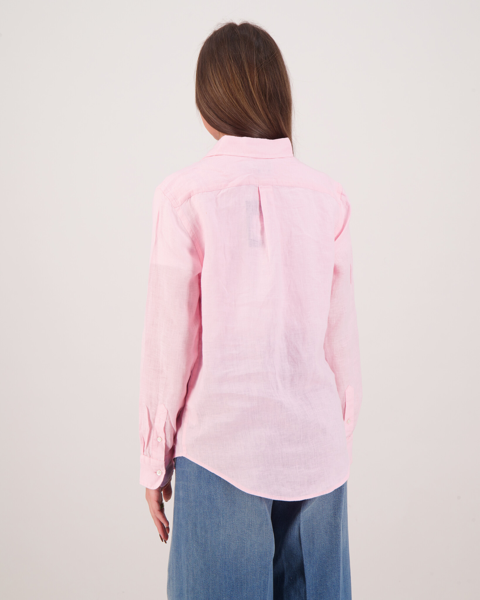 Deze blouse heeft een subtiele roze kleur, een klassieke kraag en een knoopsluiting aan de voorkant, alles wat hoort bij een tijdloze Ralph Lauren-basic. De blouse valt normaal qua maat en draagt comfortabel, met een nette pasvorm die zowel casual als iets formeler combineerbaar is. Dankzij de rustige kleur en klassieke snit is het een veelzijdig kledingstuk dat goed past bij jeans, chino’s of een rok — ideaal voor zowel dagelijkse outfits als wat nettere looks.