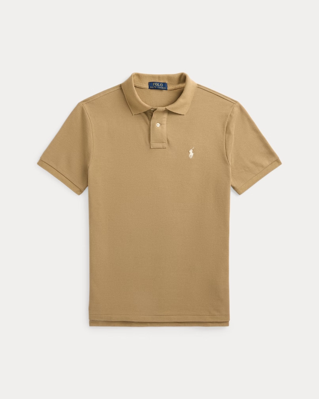 Beige Slim Fit polo van het merk Polo Ralph Lauren. De slim fit polo heeft een klassieke kraag, gaat dicht met 2 knoopjes en op de borst het iconische geborduurde logo.
