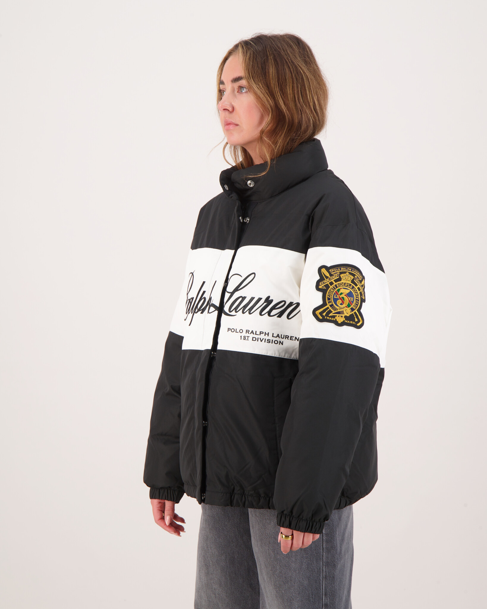 De Polo Ralph Lauren Puffer Bomber is een geweldig item wat niet kan missen in jouw garderobe. Een te gekke zwarte bomber, met witte streep door de jas heen. De jas heeft twee steekzakken en hoge kraag.