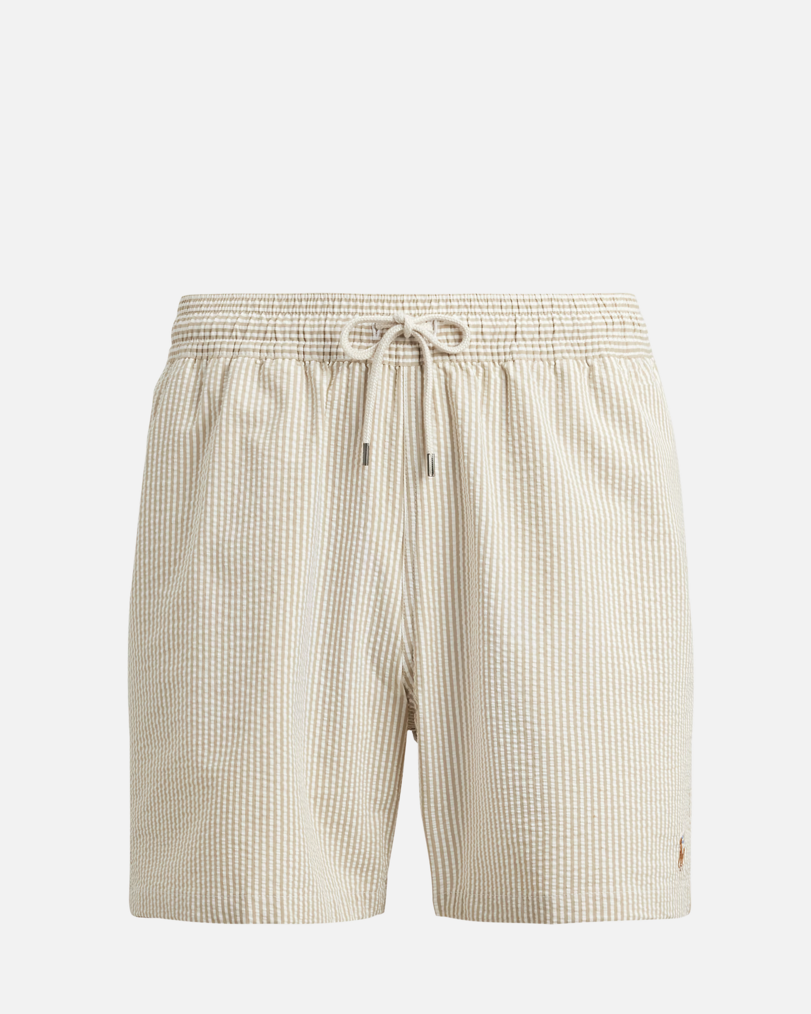 De Polo Ralph Lauren Traveller Swimming Trunk Seers (710957784) is een stijlvolle en functionele zwemshort met een klassieke uitstraling. De short is uitgevoerd in een seersucker katoenmix met stretch, wat zorgt voor een lichte, ademende en comfortabele fit – ideaal voor warme zomerdagen.