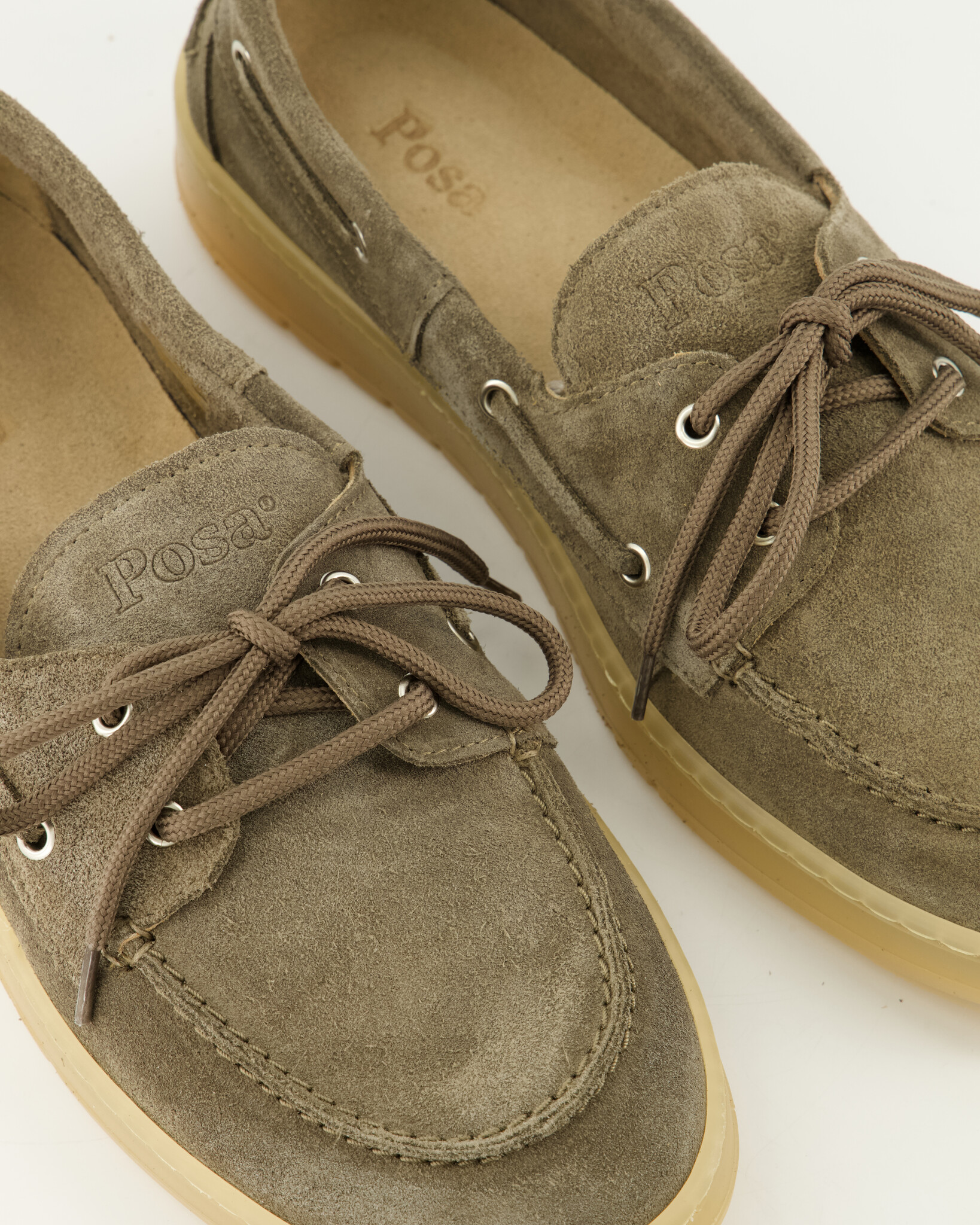 De Boat Loafer Brushed Desert Tan van Posa Studio is een stijlvolle zomerschoen met een tijdloze uitstraling. Gemaakt van zacht, geborsteld suède in een warme zandtint, combineert deze loafer moeiteloos comfort en klasse. Het subtiele veterdetail en de soepele pasvorm maken ‘m ideaal voor zowel casual als nettere outfits. Dankzij het zachte voetbed en de lichte zool loop je er de hele dag zorgeloos op rond – perfect voor zonnige dagen en ontspannen momenten.