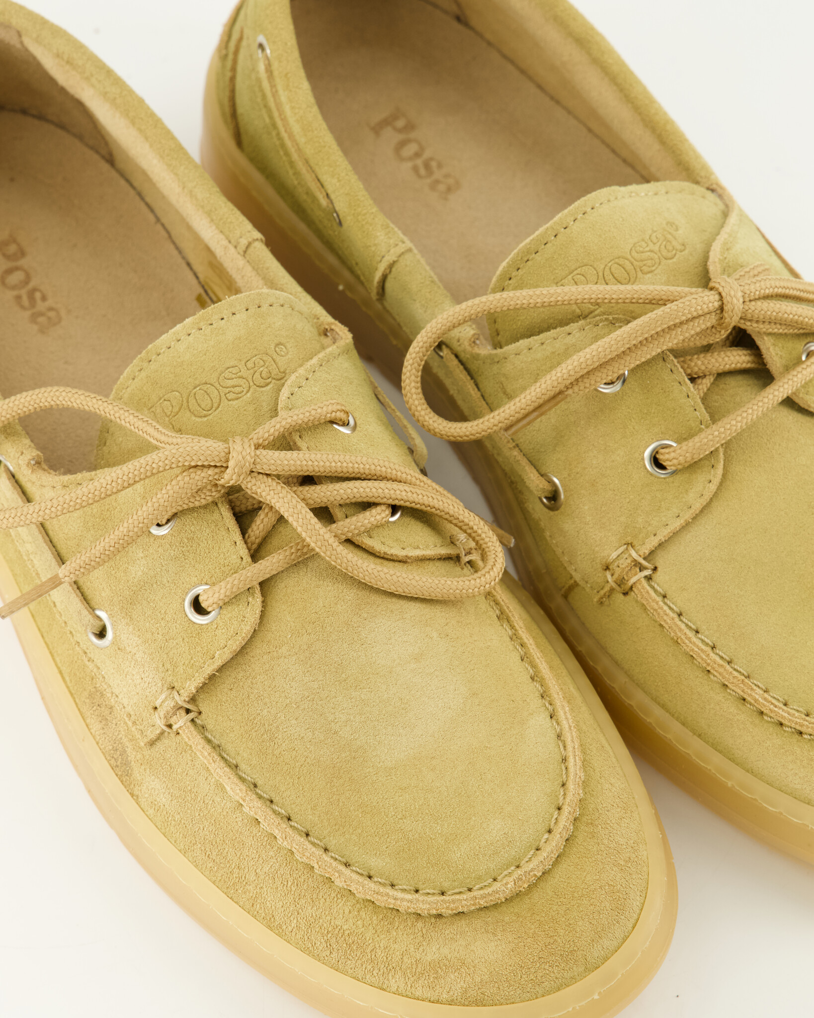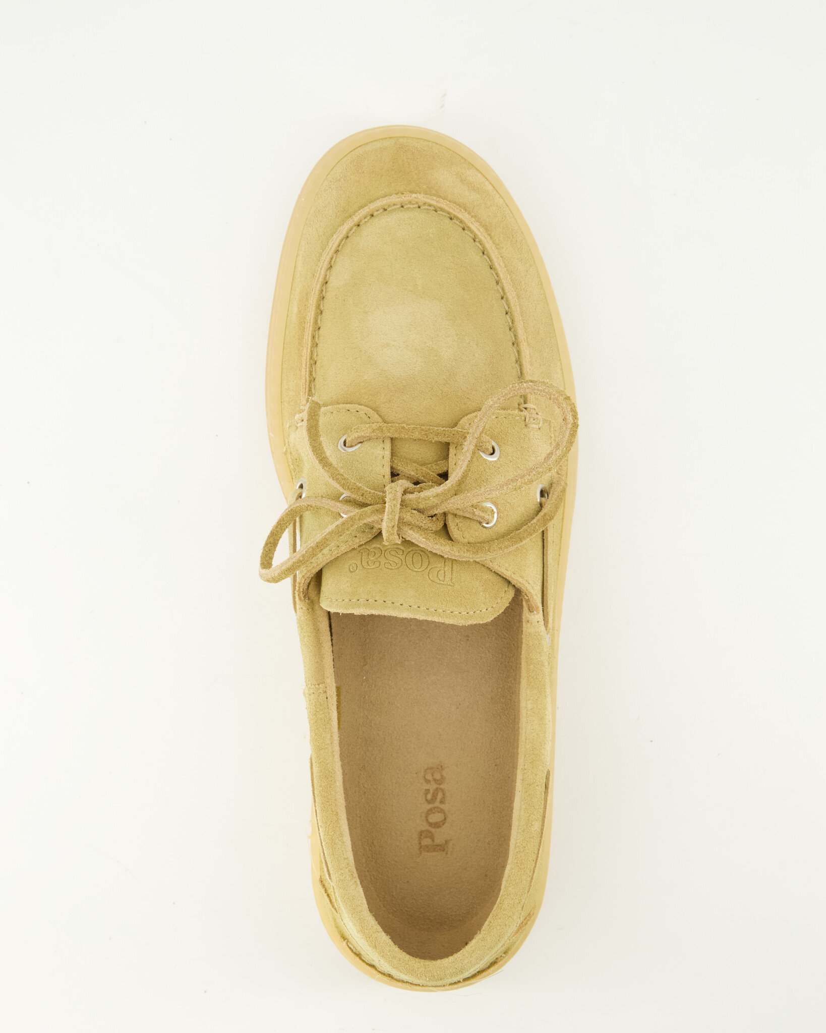 De Boat Loafer Brushed Desert Tan van Posa Studio is een stijlvolle zomerschoen met een tijdloze uitstraling. Gemaakt van zacht, geborsteld suède in een warme zandtint, combineert deze loafer moeiteloos comfort en klasse. Het subtiele veterdetail en de soepele pasvorm maken ‘m ideaal voor zowel casual als nettere outfits. Dankzij het zachte voetbed en de lichte zool loop je er de hele dag zorgeloos op rond – perfect voor zonnige dagen en ontspannen momenten.