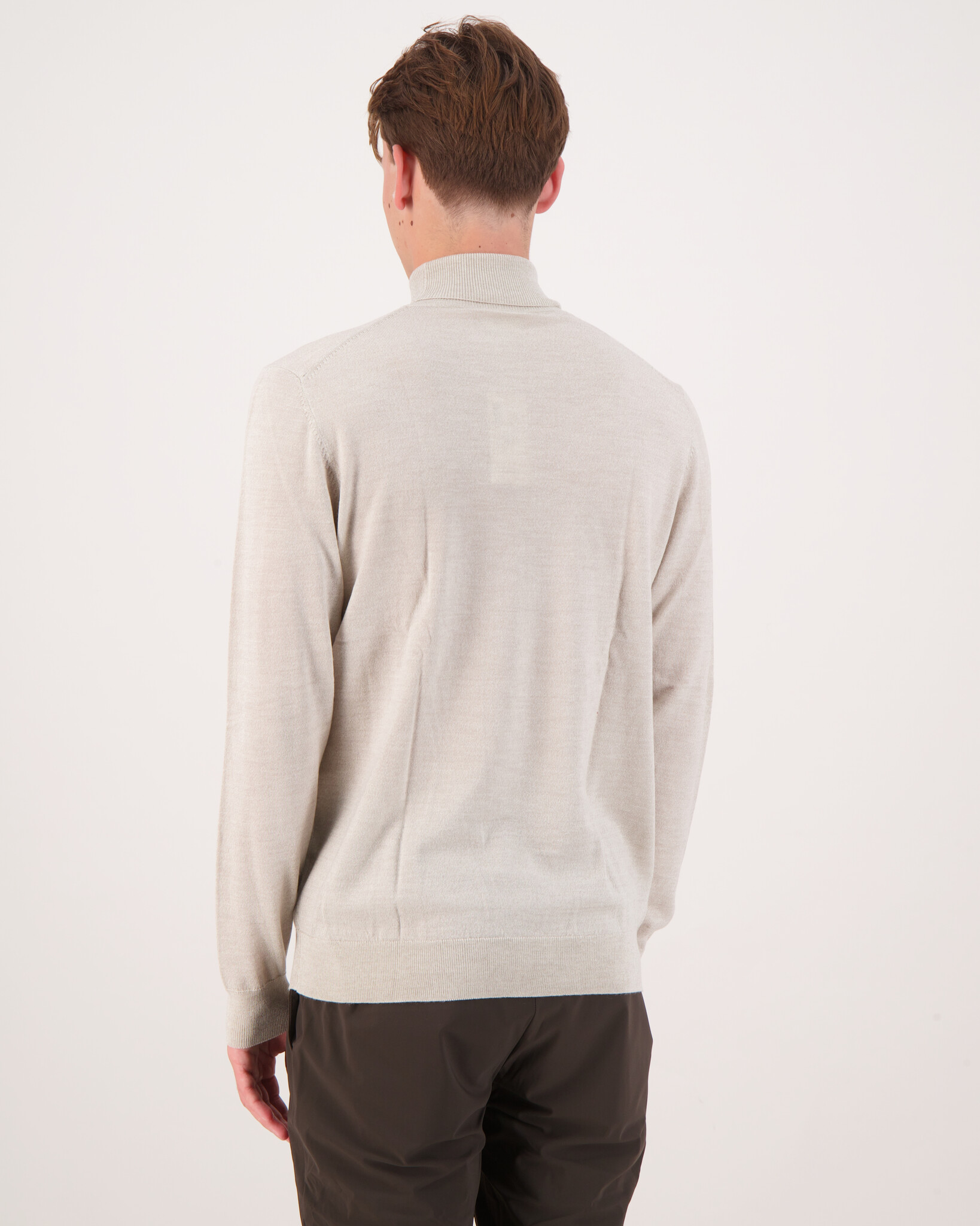 Verwen jezelf met tijdloze elegantie in onze Profuomo Coltrui in een warme beige tint. Deze coltrui is vervaardigd uit hoogwaardig merinowol, waardoor hij zacht aanvoelt op de huid en ideaal is voor zowel koude dagen als tussenseizoenen. De klassieke rolkraag (roll neck) zorgt voor extra warmte en een verfijnde uitstraling.
