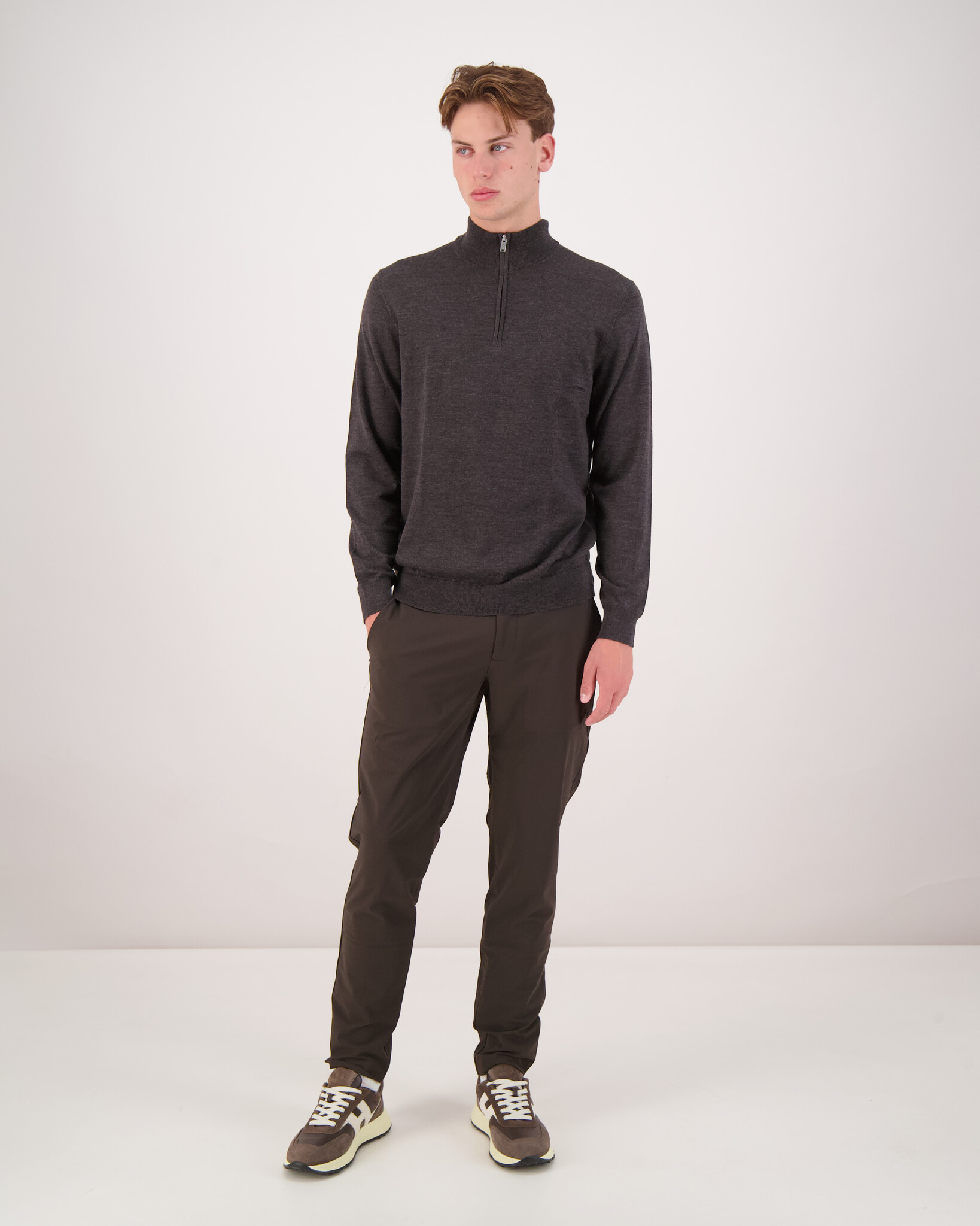 Ontsnap aan de kou zonder in te boeten op stijl met deze Profuomo Half Zip in de modieuze kleur bruin. Deze trui combineert comfort en elegantie dankzij de hoogwaardige merinowol, die zorgt voor een zachte, ademende en isolerende werking. De half‑zip sluiting voegt een modern accent toe en maakt het mogelijk om de kraag open te dragen voor extra ventilatie of gesloten voor extra warmte.