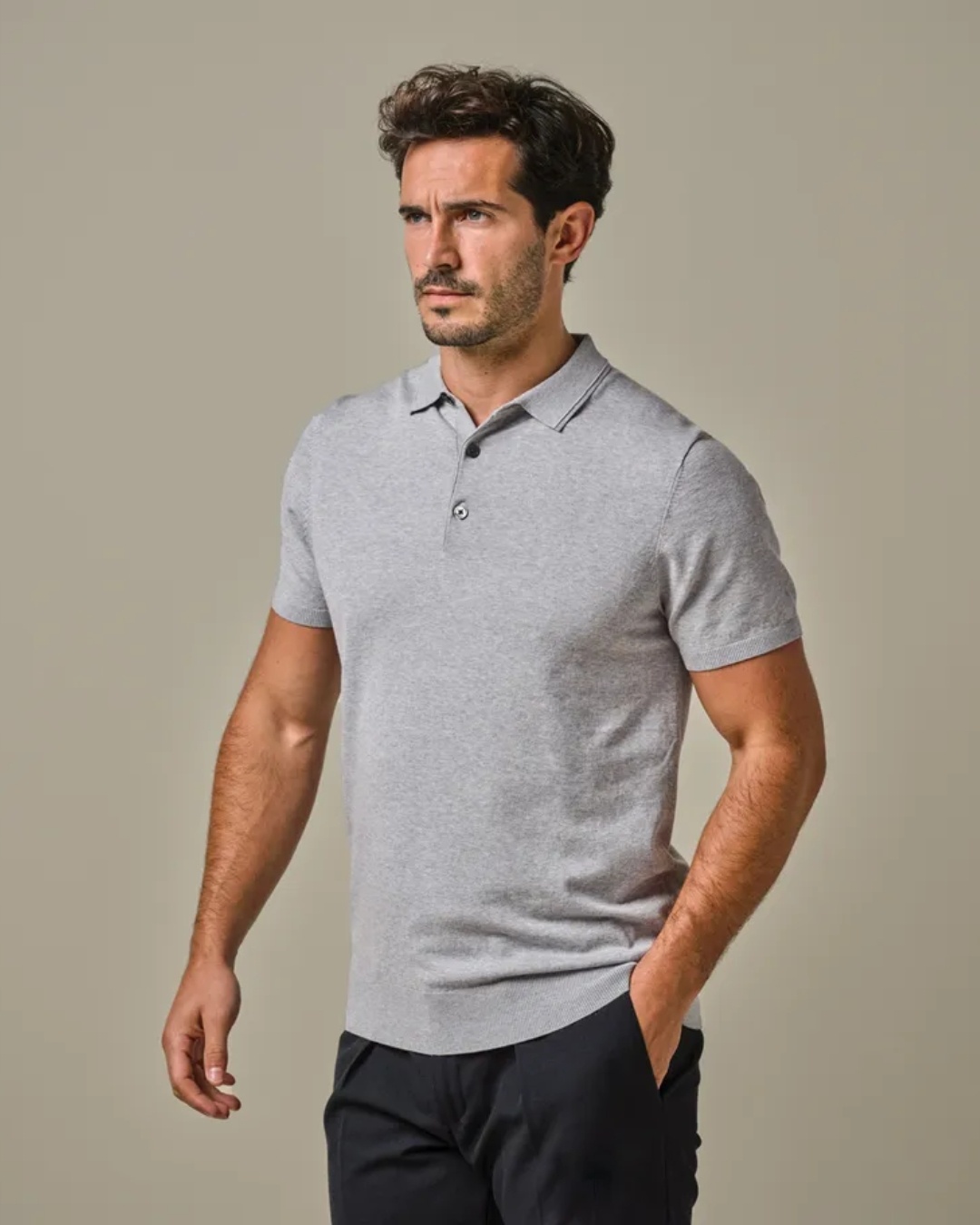 De Polo SS van Profuomo, uitgevoerd in een frisse lichtgrijze tint, combineert een moderne uitstraling met verfijnde eenvoud. Het minimalistische design zorgt voor een rustige, stijlvolle look die moeiteloos past binnen zowel casual als smart-casual outfits. De polo is vervaardigd van een hoogwaardige blend met lyocell, katoen, polyamide en zijde, wat zorgt voor een uitzonderlijk zachte touch, ademend vermogen en een luxe uitstraling. Dankzij de nette afwerking en het comfortabele draaggevoel is dit item ideaal voor dagelijks gebruik. Een veelzijdige essential die eenvoudig te combineren is met zowel een jeans als een chino.