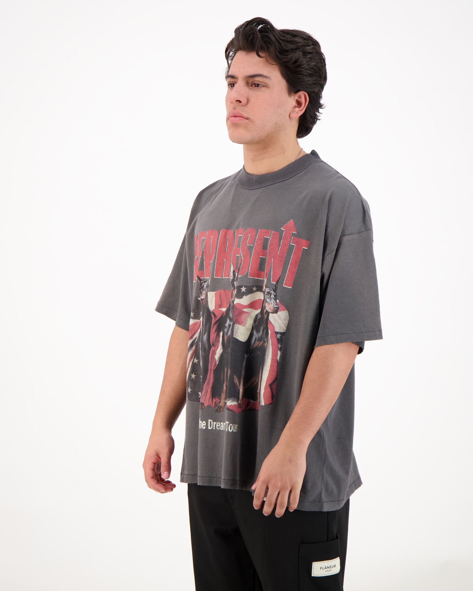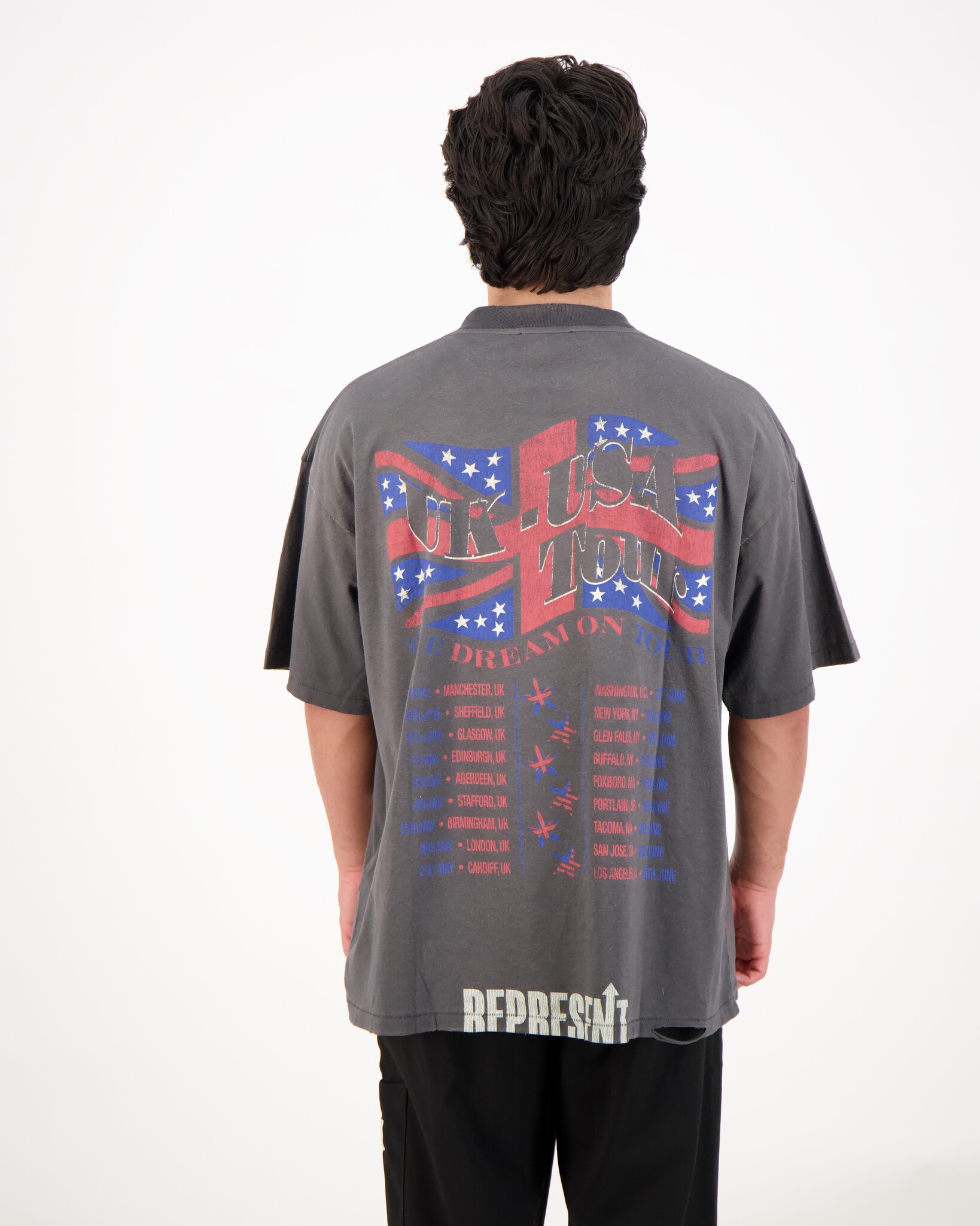 Het Grijze “Dream On Tour” T-shirt van het merk Represent is gemaakt van 100% katoen, wat zorgt voor een zachte en comfortabele draagervaring. Het heeft een ronde hals en korte mouwen, en de pasvorm is relaxed met schoudernaden die iets naar beneden vallen, wat bijdraagt aan een casual uitstraling. Dit T-Shirtje heeft een unieke print aan de voorkant waardoor dit echt een eyecatcher is. Aan de onderkant zit een klein metalen merkje dat een luxe gevoel toevoegt.