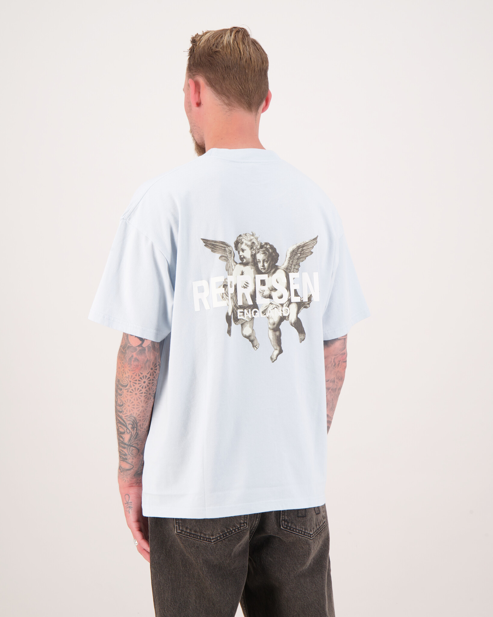 Offwhite Legacy Cherubs T-Shirt van het merk Represent. Dit T‑shirt van Represent is vervaardigd uit 100 % katoen met een comfortabele midweight jersey structuur en heeft een oversized pasvorm die zorgt voor een relaxte, moderne uitstraling. Het ontwerp is voorzien van opvallende cherub‑print op de voor- en achterkant, gecombineerd met grafische tekst en versterkt met een subtiel metalen bar‑logo aan de zoom. De ronde hals is afgewerkt met een geribde kraag voor extra comfort en afwerking