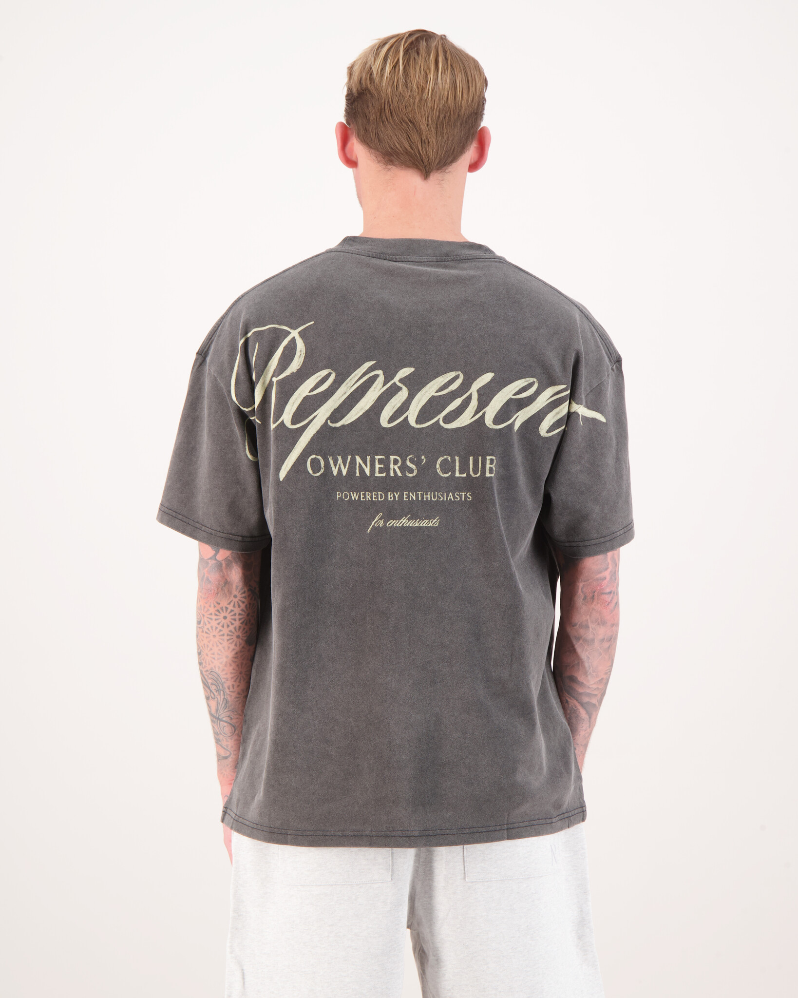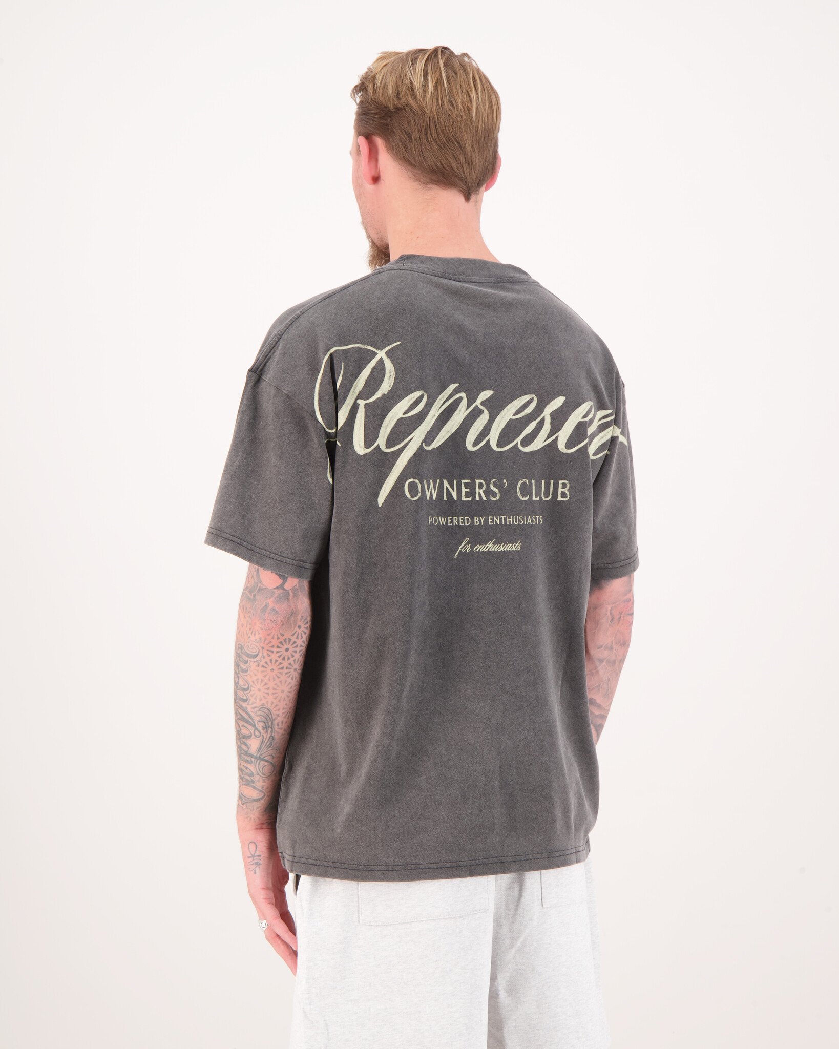 Dit T‑shirt combineert luxe met attitude. Gemaakt van medium-weight katoen (220 g/m²), heeft het een oversized fit met ribgebreide ronde hals en een subtiele metalen Represent-bar aan de zoom. Een visueel statement ontstaat via de script‑print op de achterkant, met een verfachtige ‘brushed’ finish die de handgeschilderde look vangt