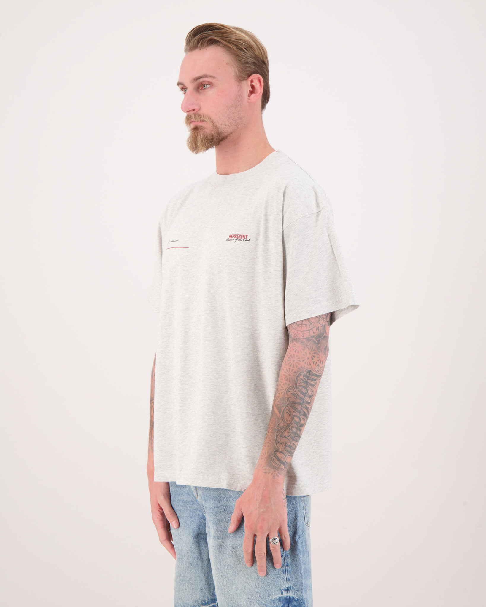De Patron of the Club T-Shirt van het merk Represent.Het t-shirt heeft een ronde hals, korte mouwen en een print op de borst en een grotere print op de achterkant.