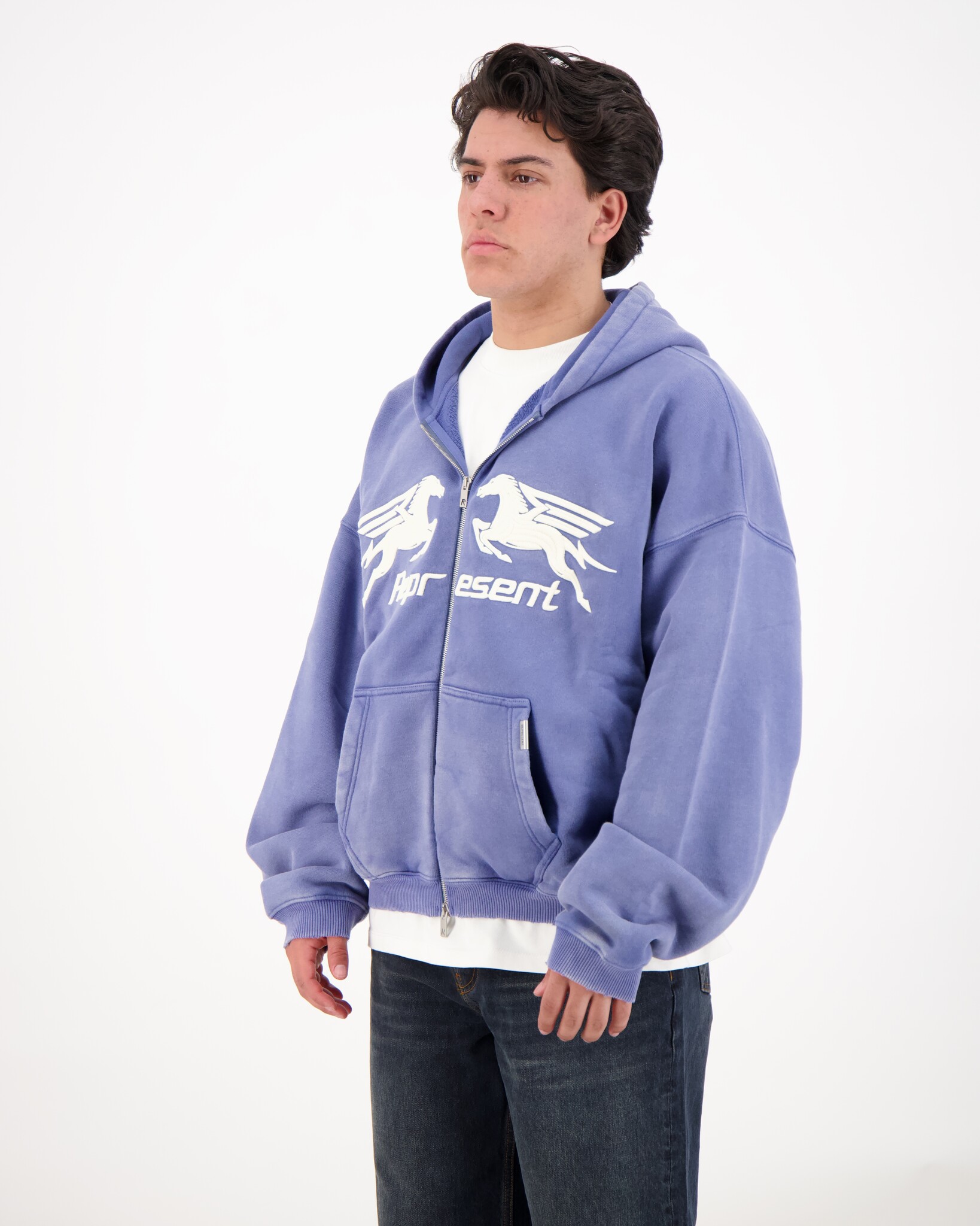 Blauwe Pegasus Zip Through Hoodie van het merk Represent is een stijlvolle streetwear-hoodie met een relaxte pasvorm en casual uitstraling. Gemaakt van zacht katoen en voorzien van een ritssluiting over de hele voorkant, biedt hij comfort én veelzijdigheid voor dagelijks gebruik. De heldere kleur en het iconische Represent-design maken deze hoodie een opvallende maar toch tijdloze toevoeging aan je garderobe ideaal om te dragen over een T-shirt of met jeans voor een nonchalante, moderne look.