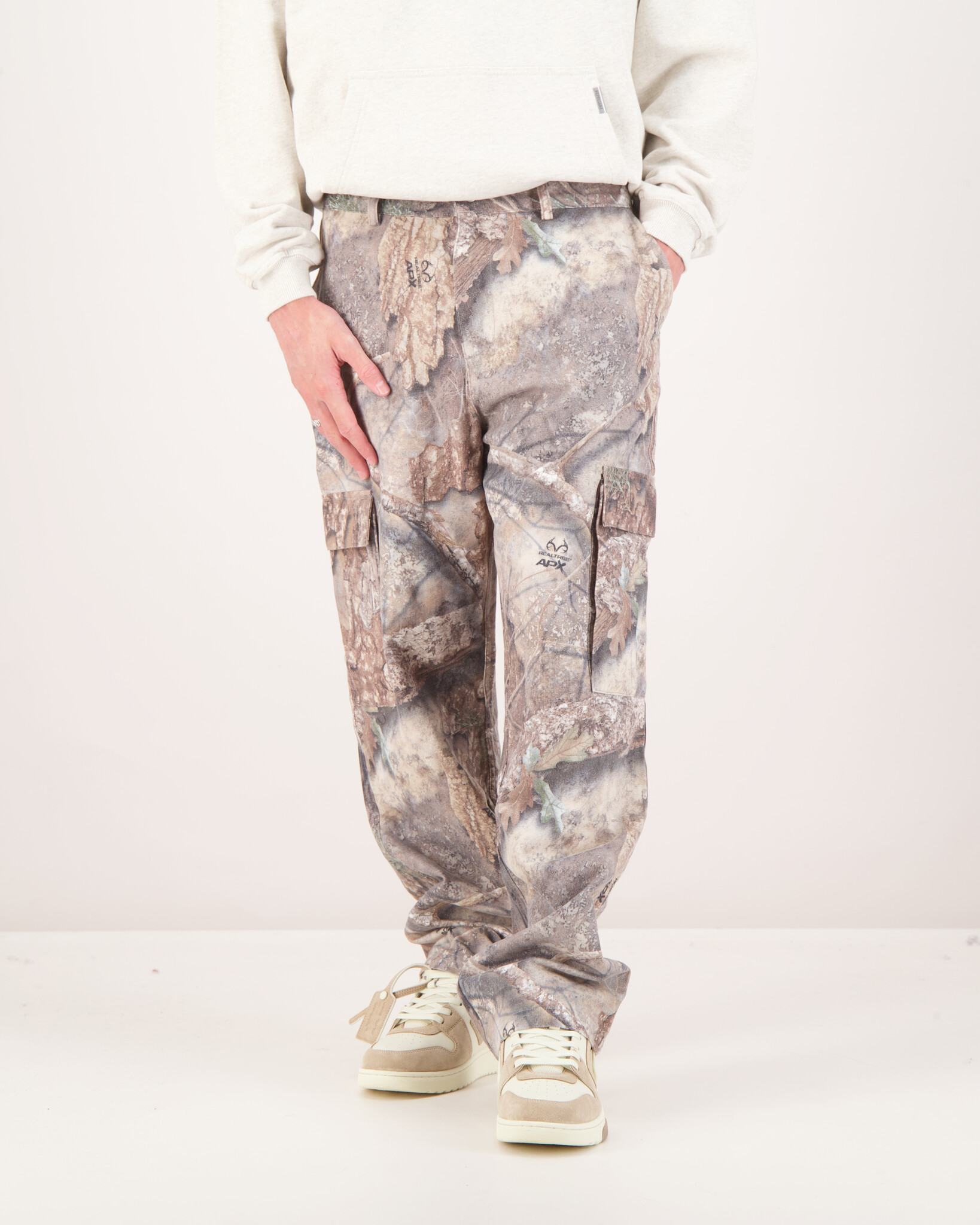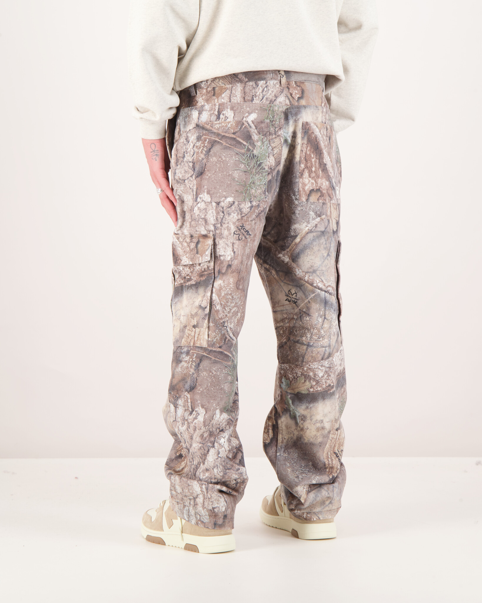 De Camouflage Real Tree Camo Cargo Pants van Represent heeft een realistische bos-camoprint. De broek is gemaakt van 100% katoen en voelt stevig aan. De pasvorm is relaxed met een rechte pijp. Grote cargozakken geven de broek een stoere, functionele look. Subtiele branding houdt het ontwerp clean. De broek combineert streetwear-stijl met praktische details en zit comfortabel voor dagelijks gebruik.