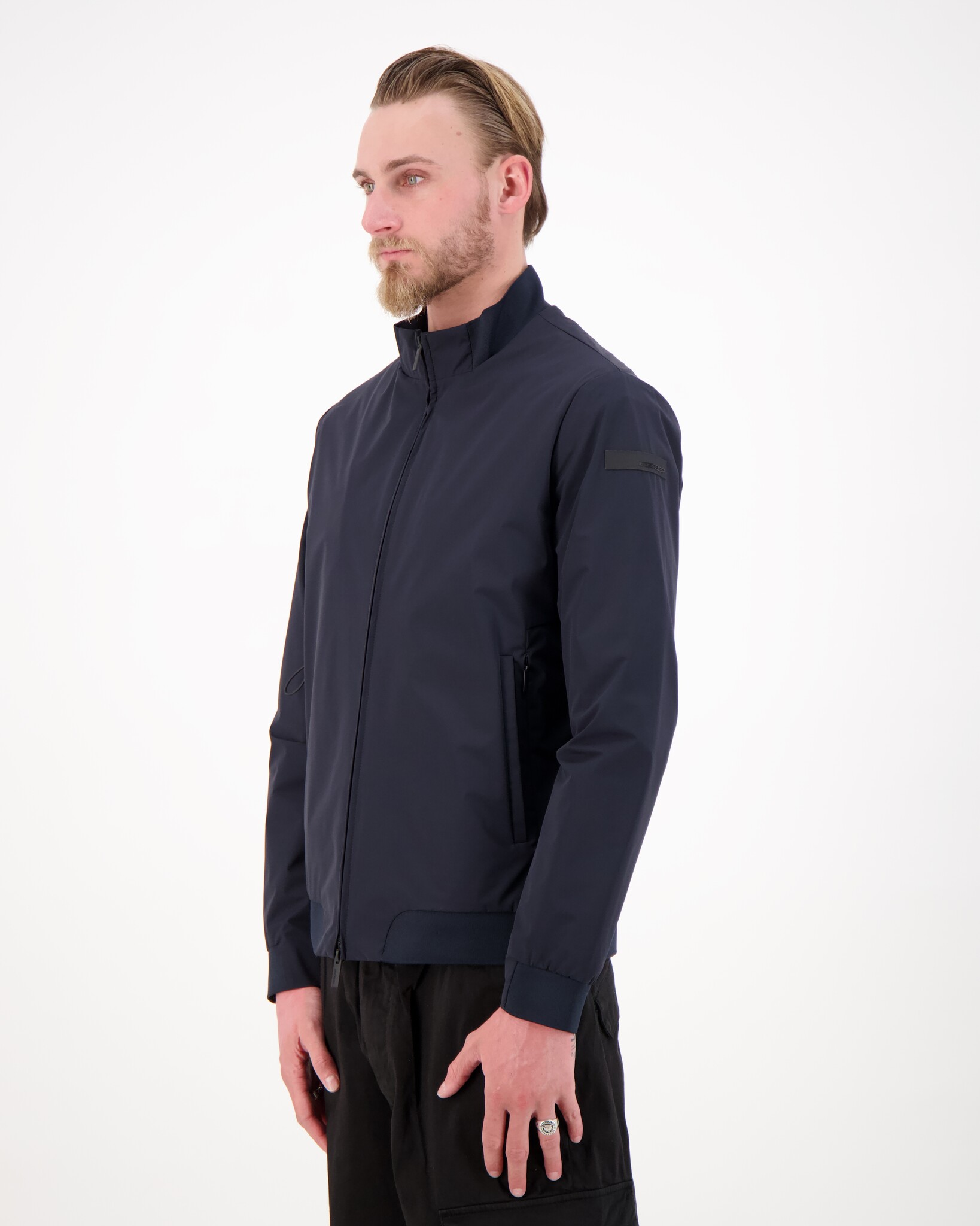 Blauwe Montecristo Light Val Jacket van het merk RRD. Deze bomberjack is een uitdrukking van verfijnde, eigentijdse urban stijl en biedt een moderne kijk op een klassiek herenkledingstuk met strakke lijnen en een onberispelijke constructie. Het jack is gemaakt van een exclusieve technische membraanstof die lichtgewicht, winddicht en ademend is, en valt op door zijn supermatte afwerking die moderne, casual elegantie uitstraalt. De spiraalvormige rits met dubbele schuiver past harmonieus bij het strakke ontwerp van het jack, en de praktische zijzakken met onzichtbare ritsen en een elastische lus aan de rechterkant voegen een vleugje discrete functionaliteit toe. De opstaande kraag, manchetten en zoom in stretchribstof zorgen voor een normale, comfortabele pasvorm met behoud van een verfijnd profiel. De binnenzak met ritssluiting is voorzien van de iconische dubbele feloranje paspel en het hartvormige label ‘Made with love, designed in Tuscany’. Het zwarte micro-geïnjecteerde logo op de linkermouw maakt deze veelzijdige jas, die ideaal is voor dagelijks gebruik, helemaal af.