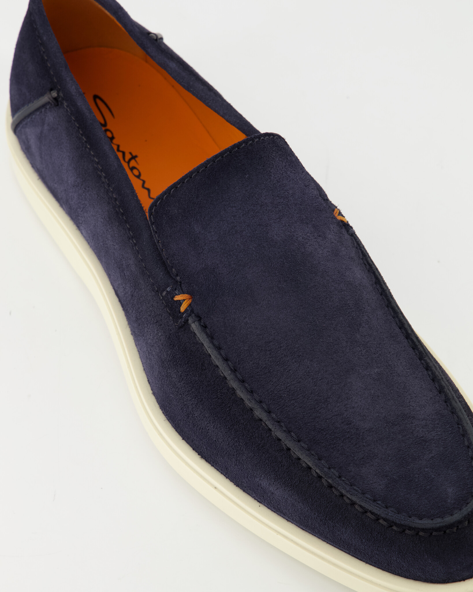 Blauwe Botanist Suede Loafers van het merk Santoni. De instappers zijn van suede en hebben een rubberen zool.