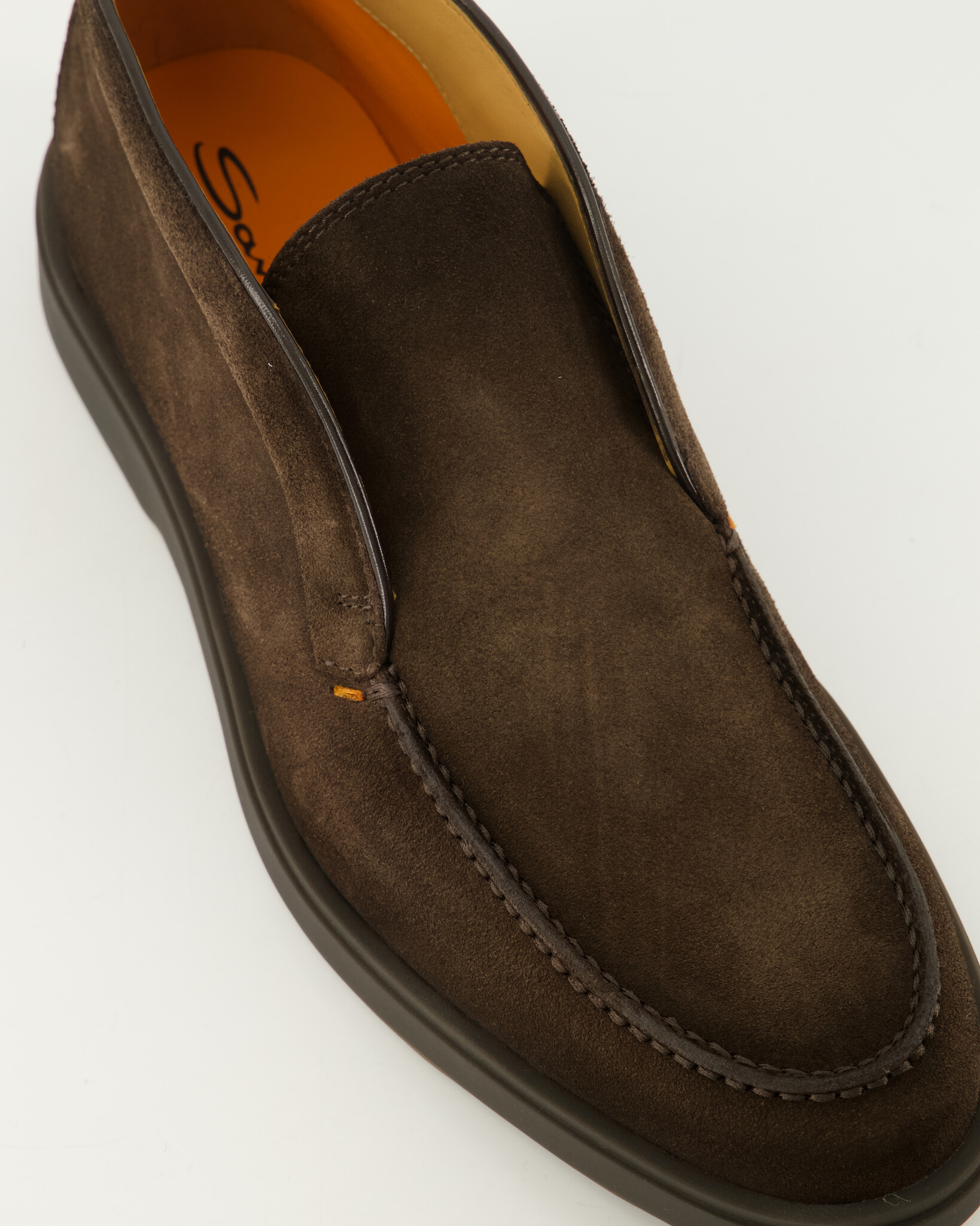 De Santoni Marine Suède Desert Loafer zijn stijlvolle herenschoenen van hoogwaardig marineblauw suède. Ze hebben een comfortabele rubberen zool en worden met de hand gemaakt in Italië. De boots combineren elegantie met draagcomfort en passen goed bij een smart-casual stijl. Wel vereisen ze onderhoud vanwege het gevoelige suède.