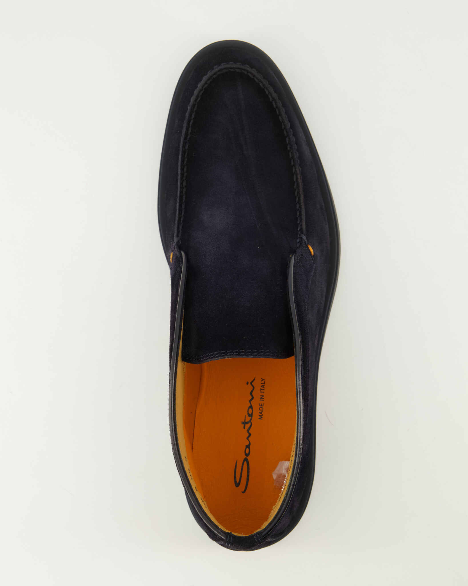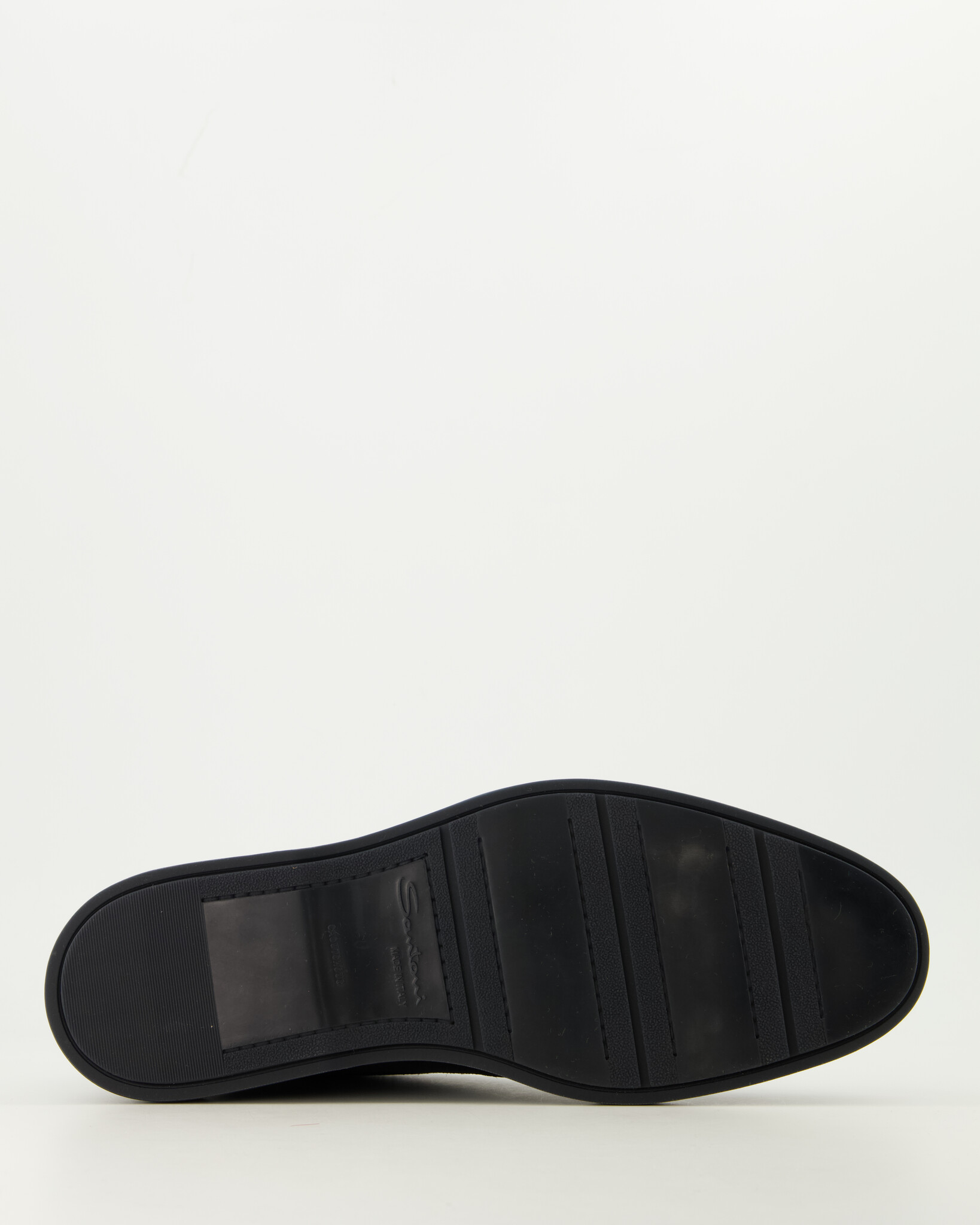 De Santoni Marine Suède Desert Loafer zijn stijlvolle herenschoenen van hoogwaardig marineblauw suède. Ze hebben een comfortabele rubberen zool en worden met de hand gemaakt in Italië. De boots combineren elegantie met draagcomfort en passen goed bij een smart-casual stijl. Wel vereisen ze onderhoud vanwege het gevoelige suède.