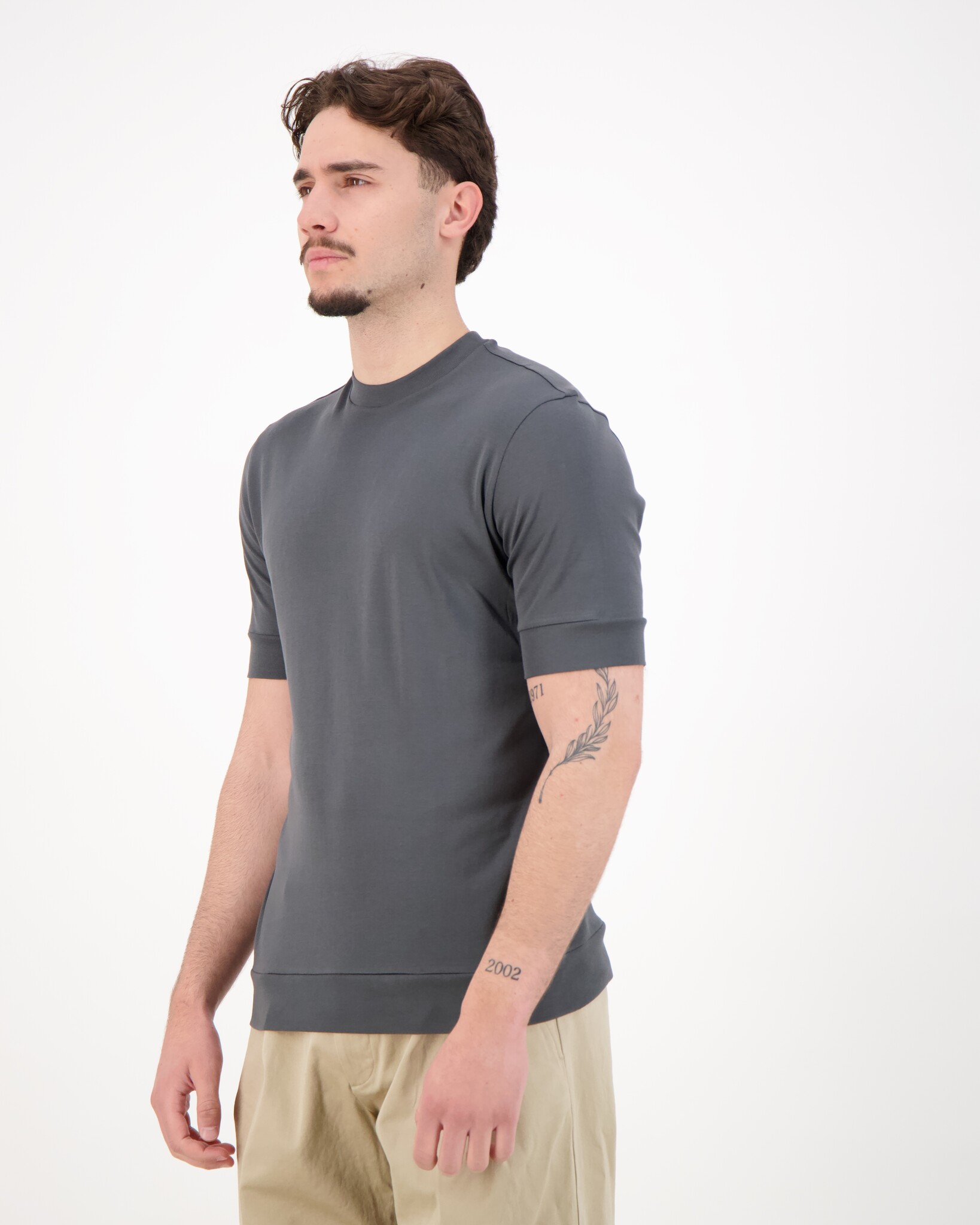 Antraciet Eli B FR 30 T-shirt van het merk Stefan Brandt. De combinatie van kleurstoffen en stoffen van de hoogste kwaliteit* met een 15-traps in-house prefit behandeling garandeert een menselijk-ecologisch geoptimaliseerde gebreide stof en een aantal werkelijk unieke eigenschappen. In het proces met water, stoom en warmte, in een (quasi-) gesloten systeem bij ongeveer 130°C, worden overtollige pigmenten en andere verontreinigingen uit de stof verwijderd (zonder chemische toevoegingen). De stof blijft fris, zelfs na langdurig dragen en transpireren, omdat de overdracht van stoffen van de stof naar de huid of een afbraakreactie met lichaamstranspiratie wordt voorkomen. De producten zijn daarom ideaal voor mensen met een gevoelige huid of mensen met allergieën.