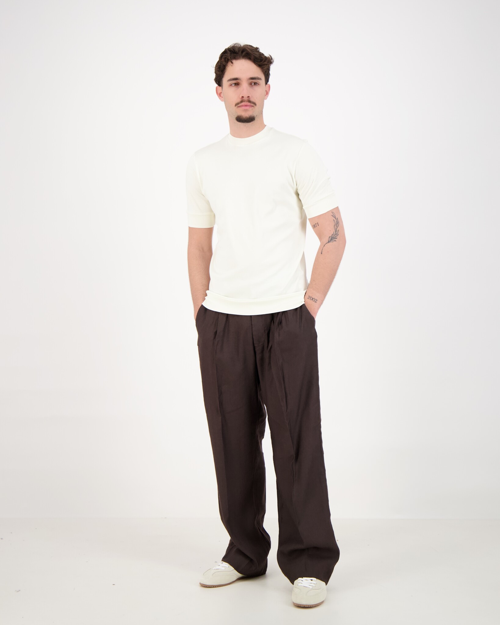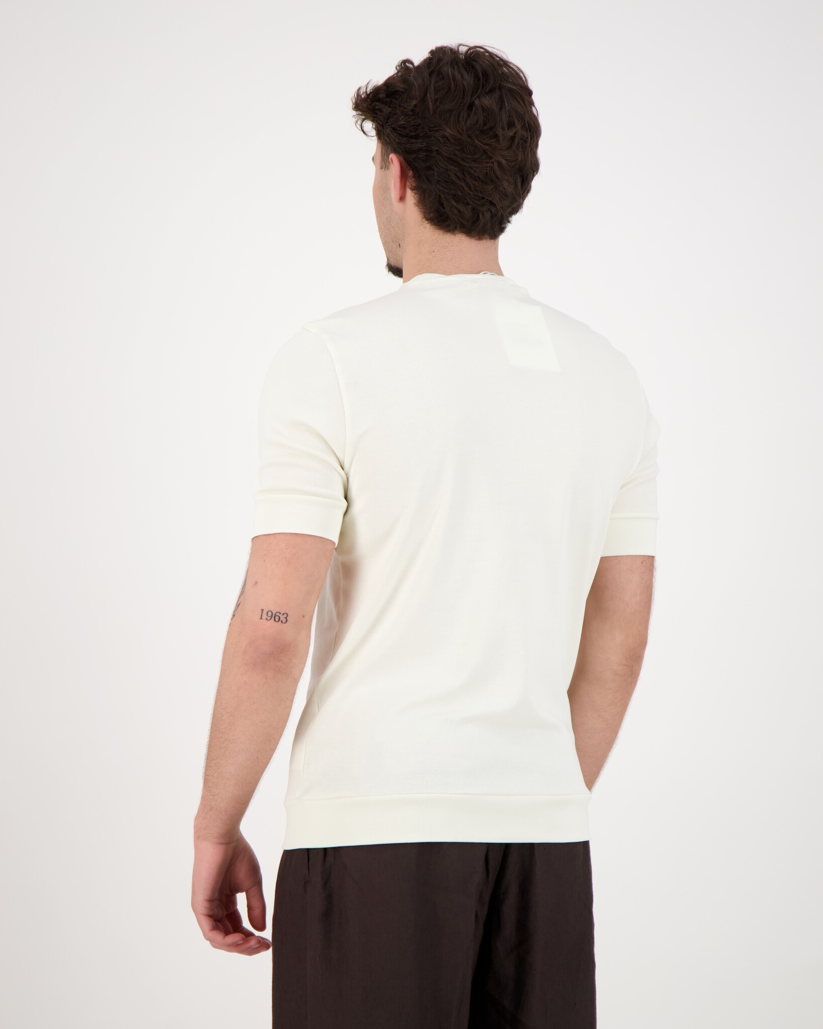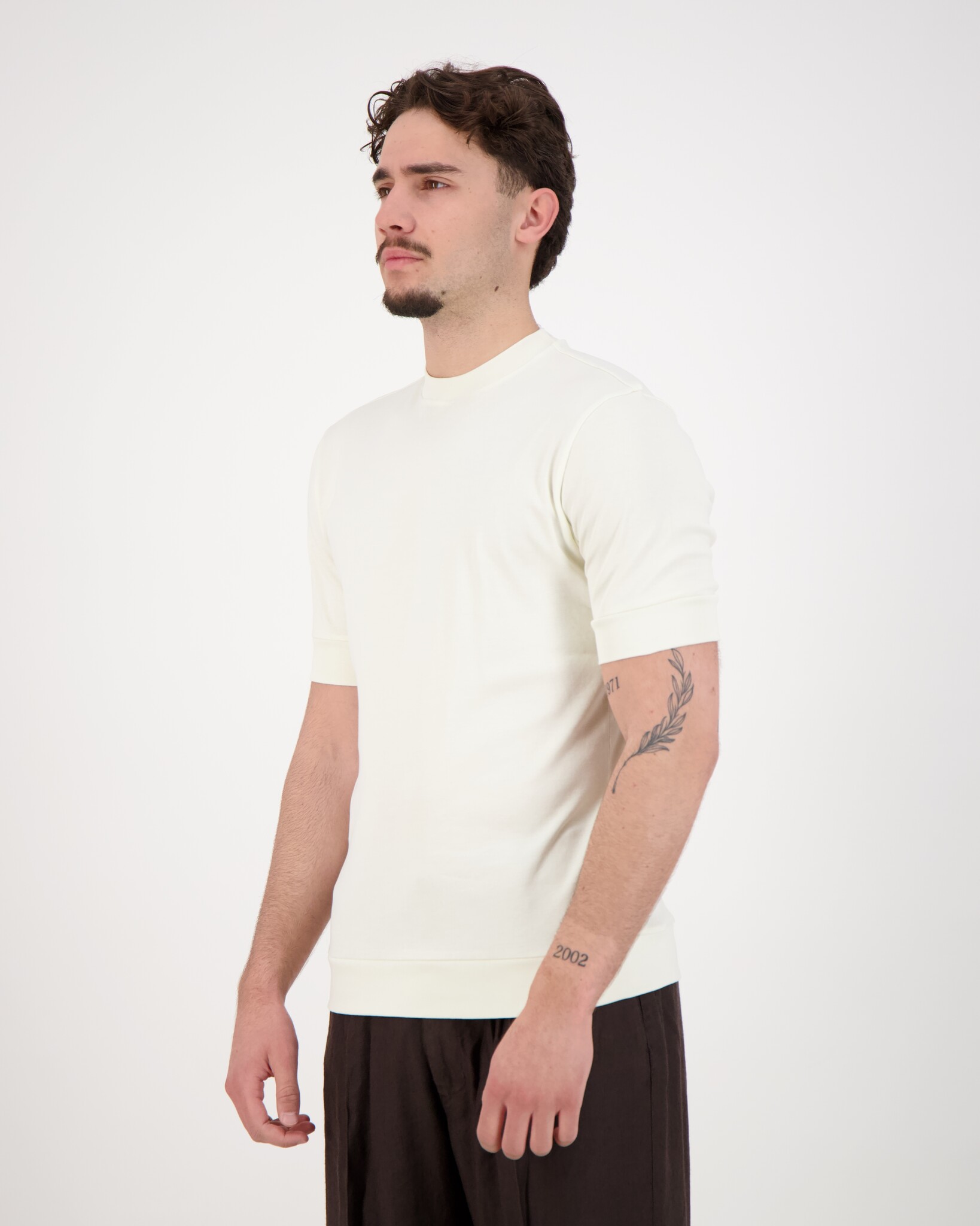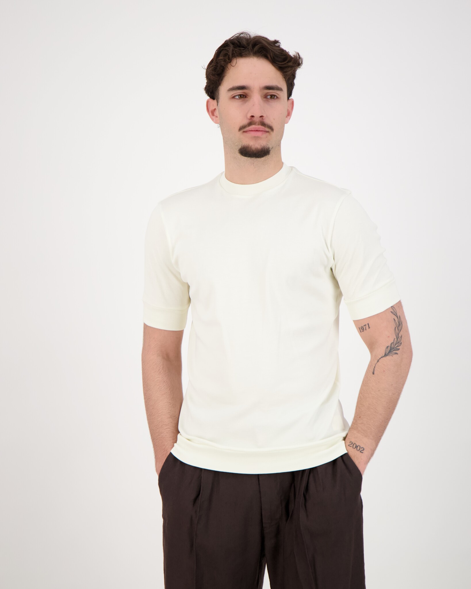 Ecru Eli B FR 30 T-shirt van het merk Stefan Brandt. De combinatie van kleurstoffen en stoffen van de hoogste kwaliteit* met een 15-traps in-house prefit behandeling garandeert een menselijk-ecologisch geoptimaliseerde gebreide stof en een aantal werkelijk unieke eigenschappen. In het proces met water, stoom en warmte, in een (quasi-) gesloten systeem bij ongeveer 130°C, worden overtollige pigmenten en andere verontreinigingen uit de stof verwijderd (zonder chemische toevoegingen). De stof blijft fris, zelfs na langdurig dragen en transpireren, omdat de overdracht van stoffen van de stof naar de huid of een afbraakreactie met lichaamstranspiratie wordt voorkomen. De producten zijn daarom ideaal voor mensen met een gevoelige huid of mensen met allergieën.