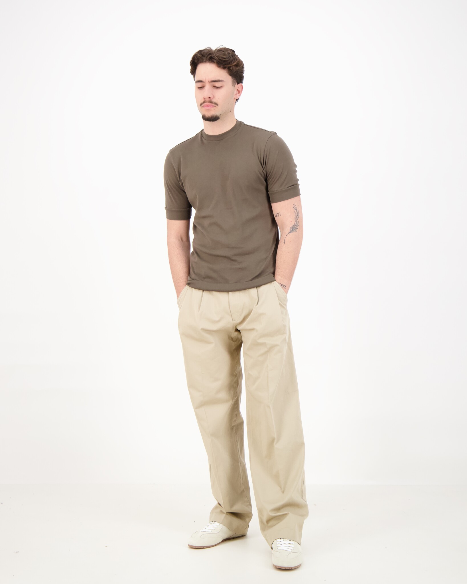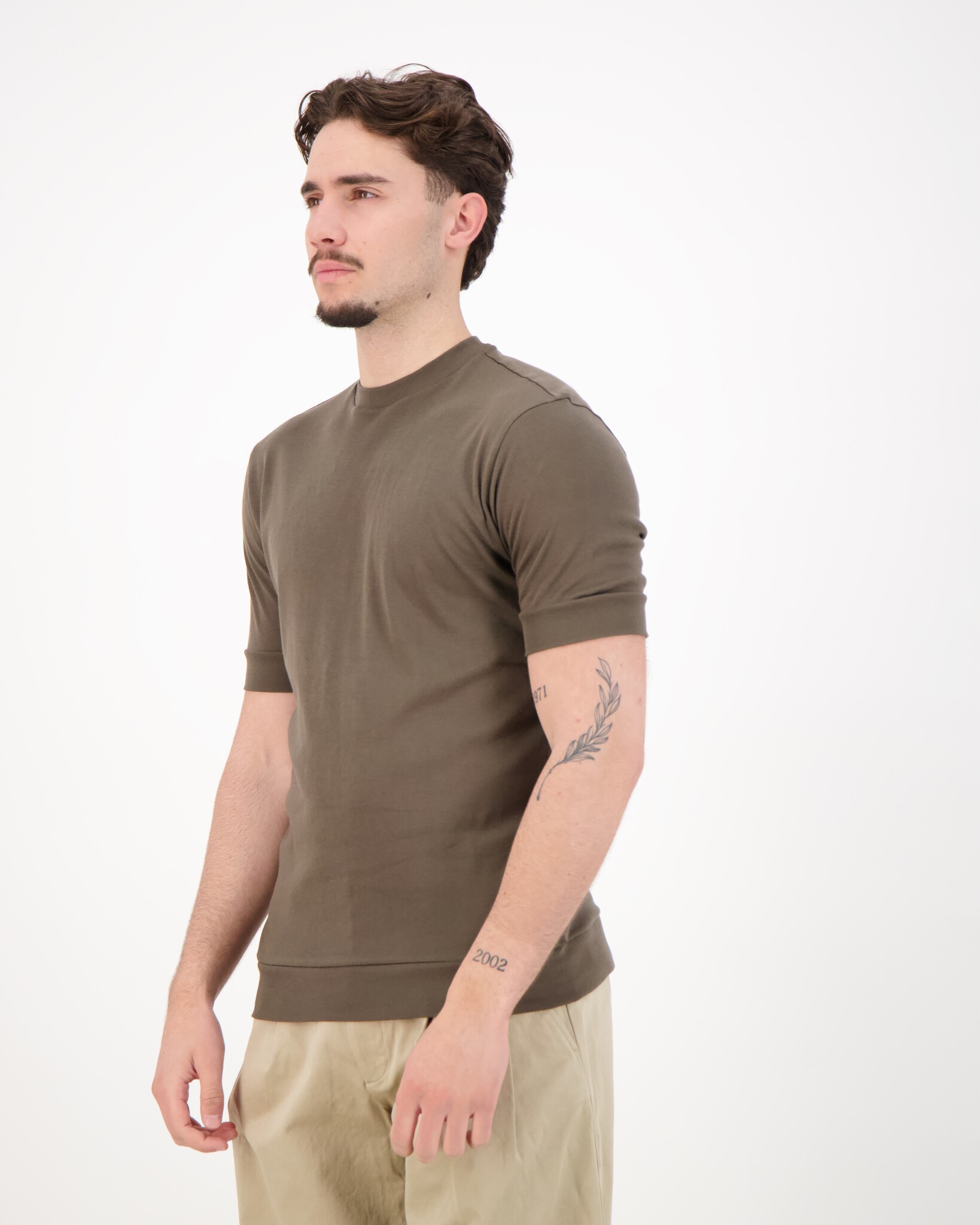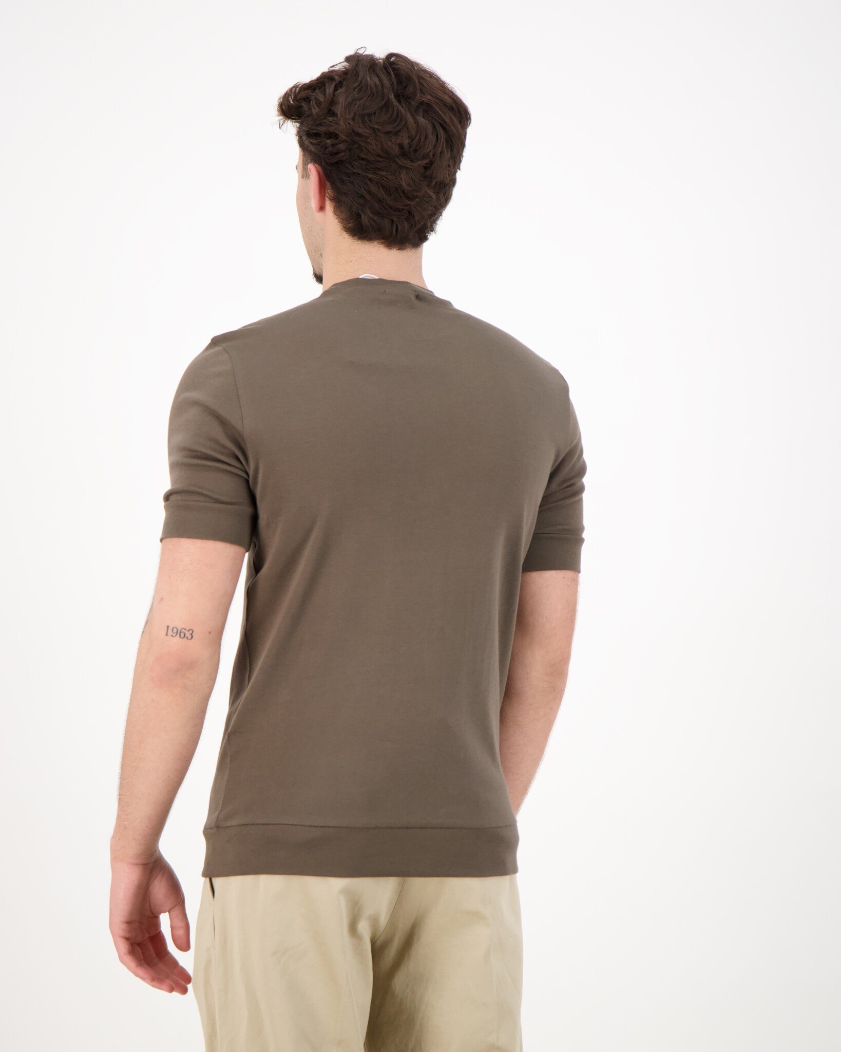 olive Eli B FR 30 T-shirt van het merk Stefan Brandt. De combinatie van kleurstoffen en stoffen van de hoogste kwaliteit* met een 15-traps in-house prefit behandeling garandeert een menselijk-ecologisch geoptimaliseerde gebreide stof en een aantal werkelijk unieke eigenschappen. In het proces met water, stoom en warmte, in een (quasi-) gesloten systeem bij ongeveer 130°C, worden overtollige pigmenten en andere verontreinigingen uit de stof verwijderd (zonder chemische toevoegingen). De stof blijft fris, zelfs na langdurig dragen en transpireren, omdat de overdracht van stoffen van de stof naar de huid of een afbraakreactie met lichaamstranspiratie wordt voorkomen. De producten zijn daarom ideaal voor mensen met een gevoelige huid of mensen met allergieën.