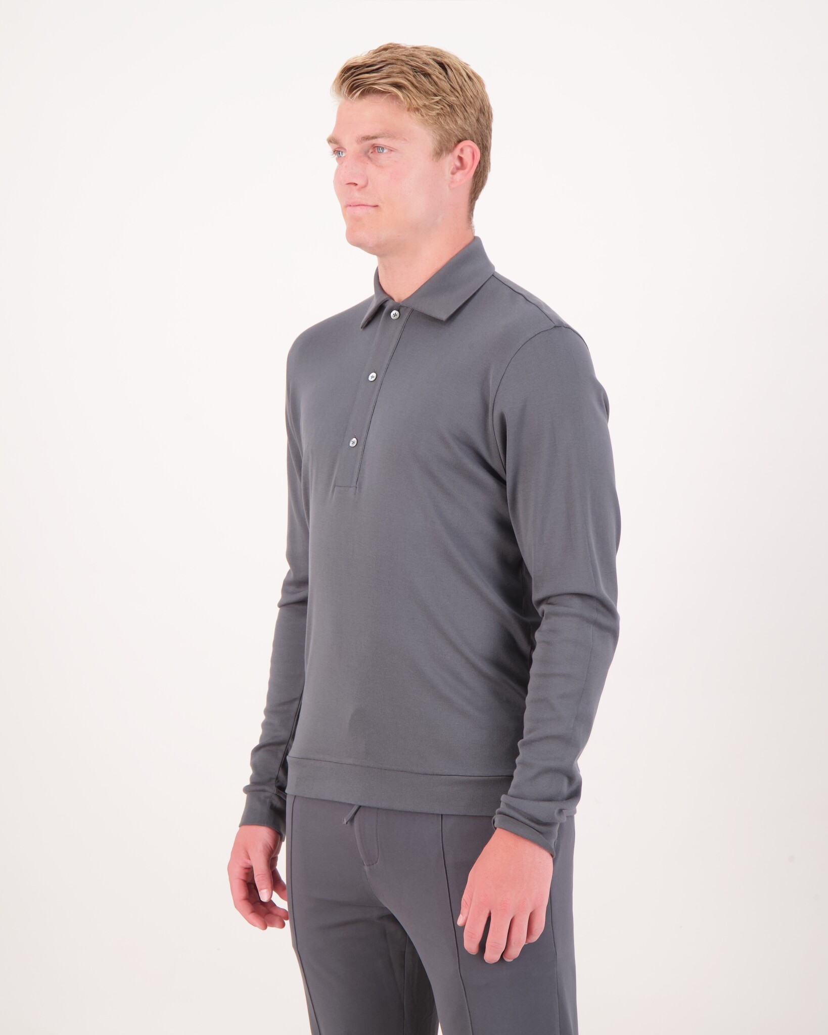 Een verfijnde polo met lange mouwen, vervaardigd van 100% katoen. De subtiele metallic look en parelmoer knoopsluiting geven een hoogwaardige uitstraling, terwijl de natuurlijke stretch zorgt voor een comfortabele fit. Regular fit — perfect voor veelzijdig, stijlvol gebruik.