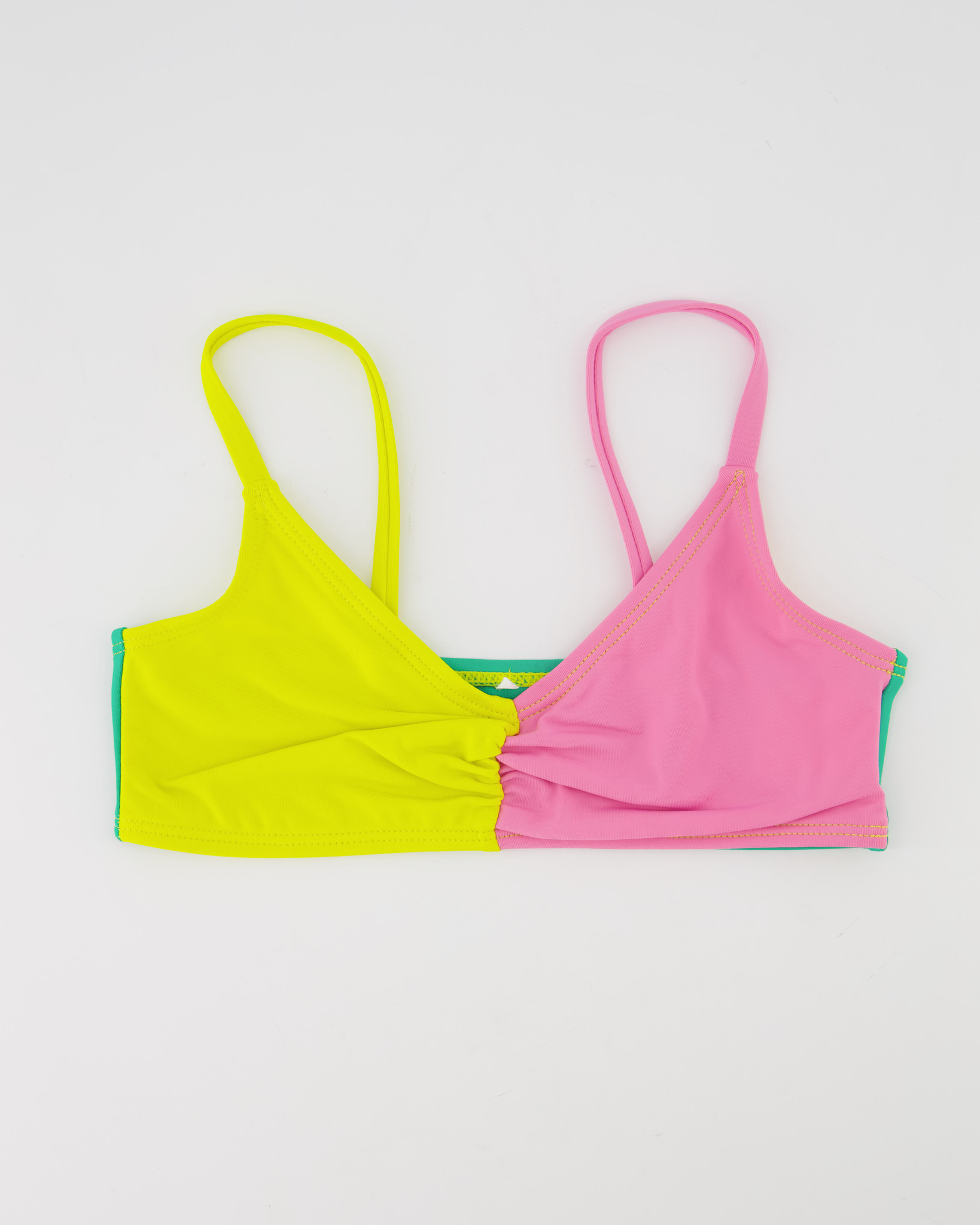 De Bikini van Stella McCartney Kids bestaat uit meerderen kleuren met een elastische band waar stella mccartney op staat.