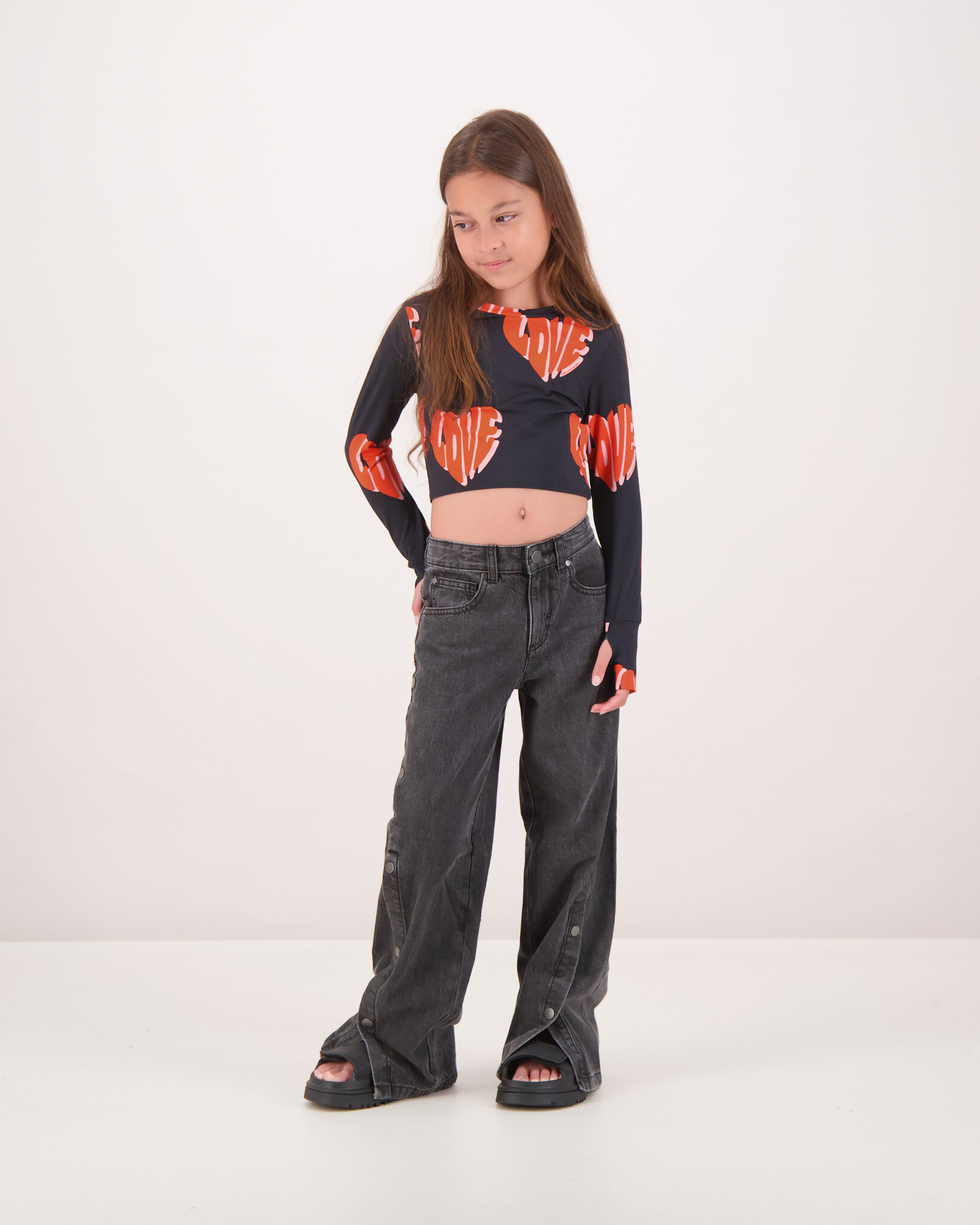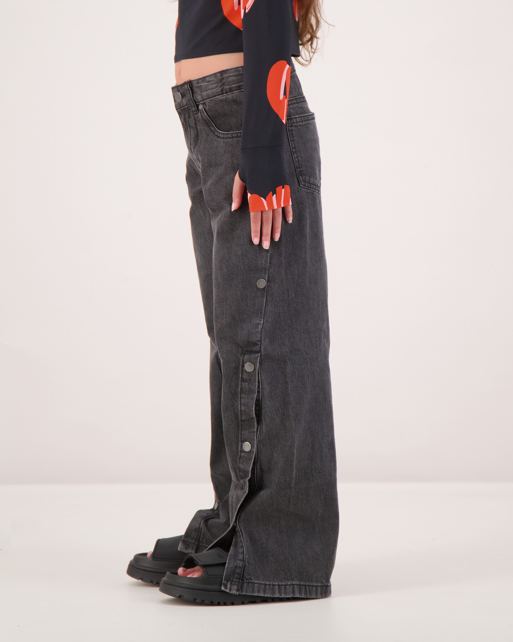Geef haar garderobe een stijlvolle update met deze zwarte jeans van Stella McCartney Kids. Gemaakt van 100% katoen voor ultiem comfort, en voorzien van opvallende knopen langs de pijpen voor een speelse, modieuze twist. De klassieke vijfzakkenstijl maakt ‘m makkelijk te combineren – van casual tot chic. Een uniek item uit de herfst/wintercollectie, perfect voor modebewuste meisjes.