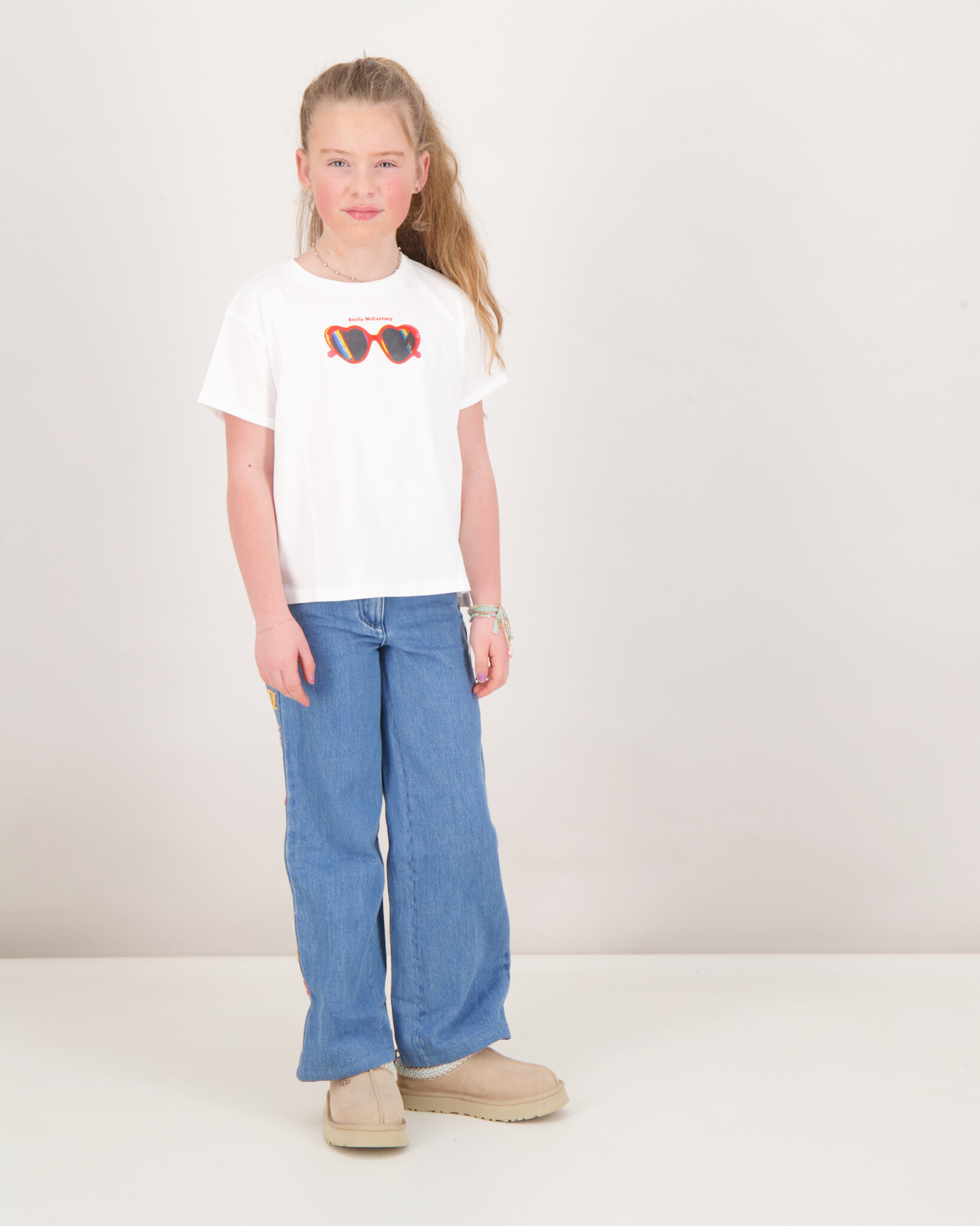 Wit T-shirt van Stella McCartney Kids met een Heart Glasses print erop gedrukt met Stella McCartney.